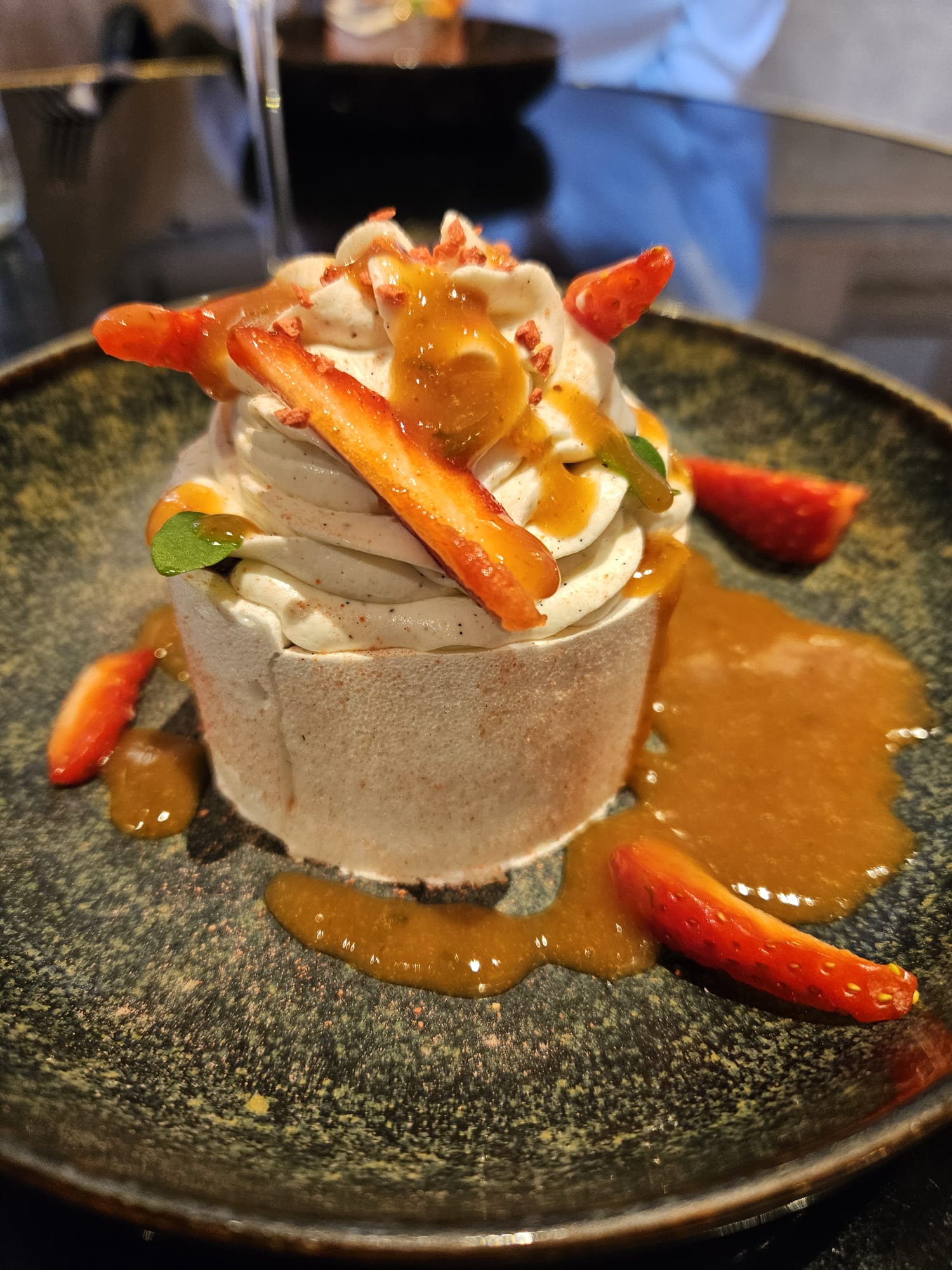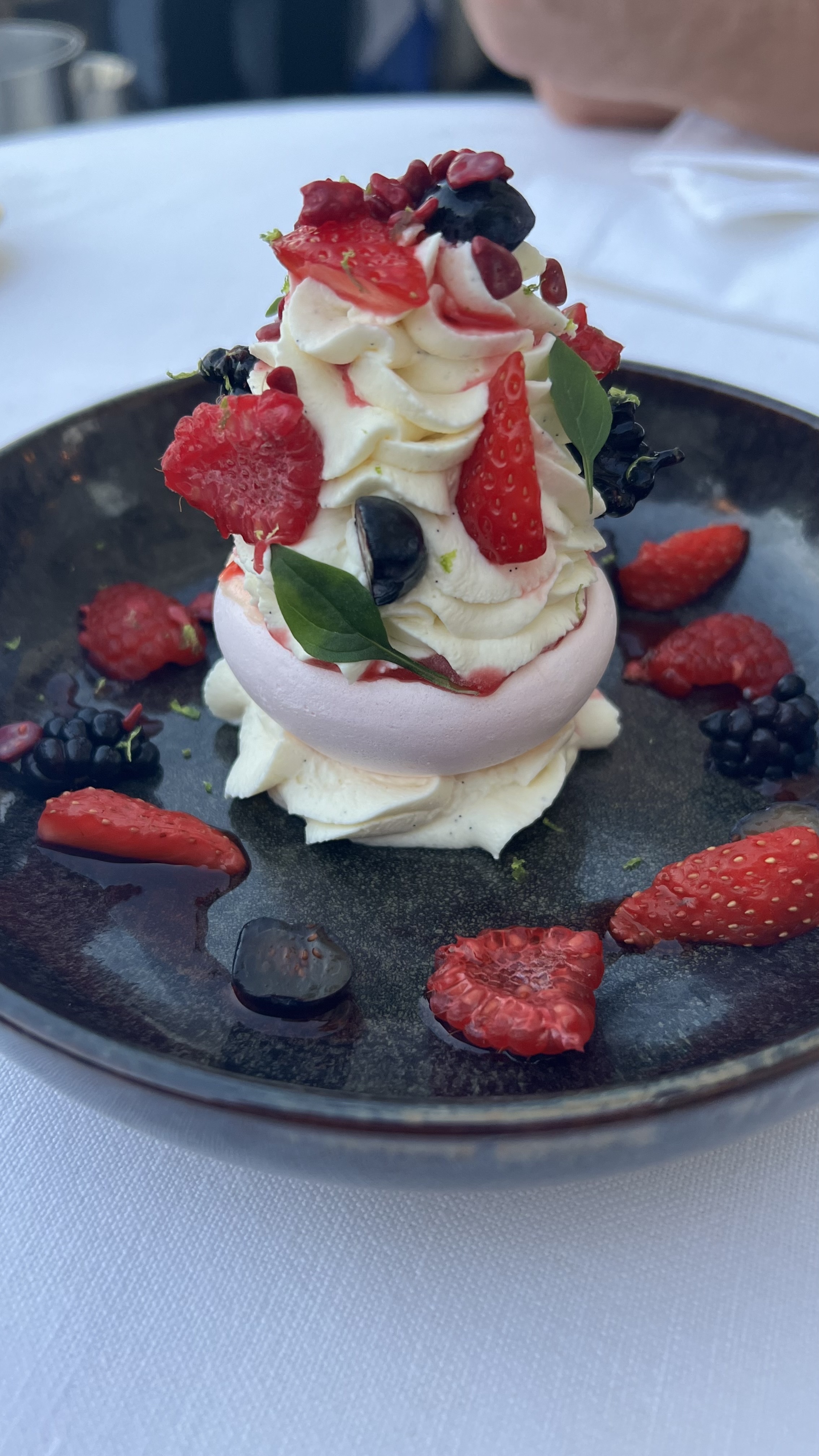 La burrata et le dessert pavlova étaient incroyables. L'entrée de poulet était correcte, un peu fade. Notre serveur Zoé était sympathique et très attentionné. J'enlève une étoile car l'ambiance est bizarre et prétentieuse, ils vous font passer 3 checkpoints pour entrer dans le restaurant.