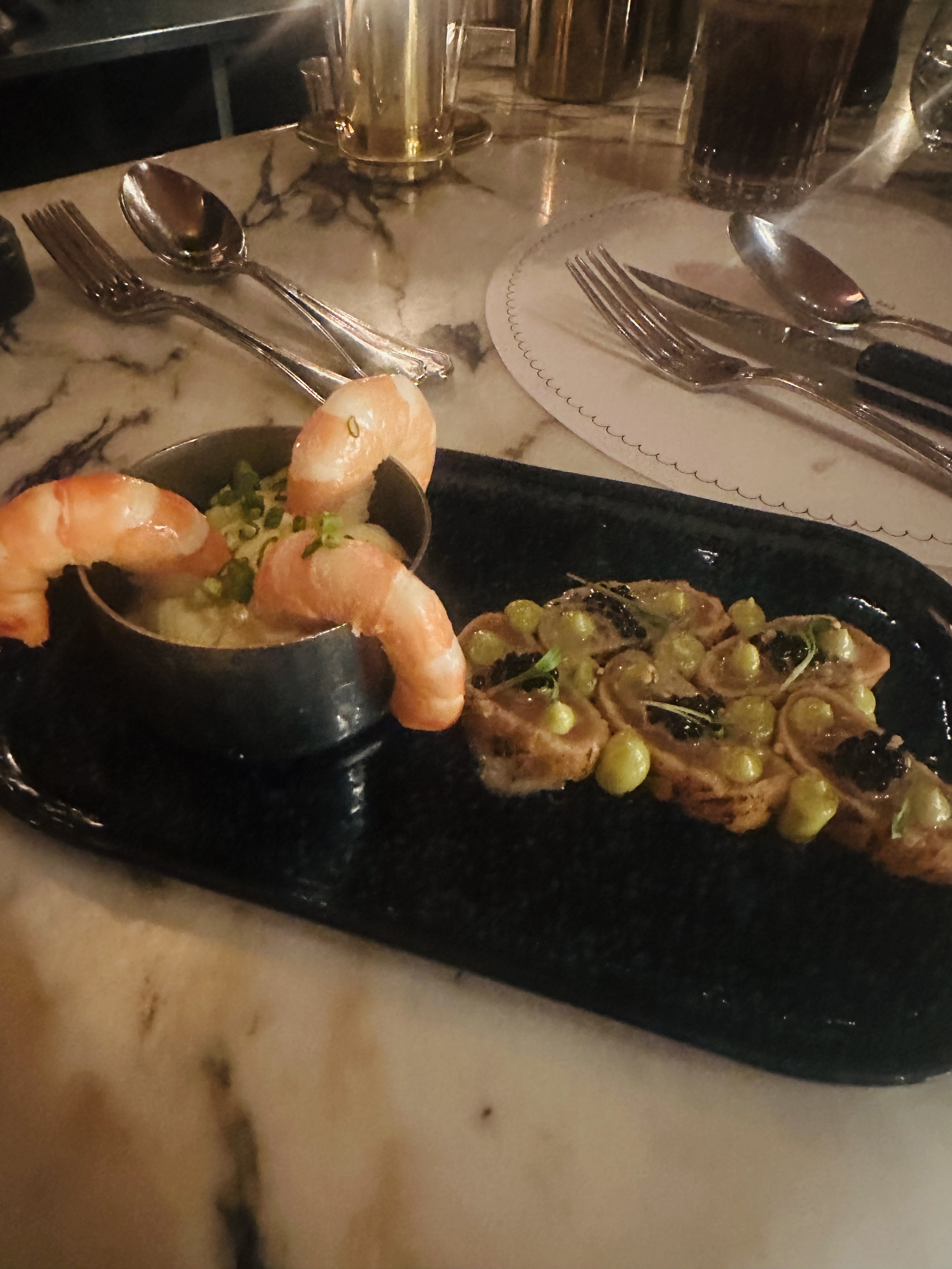 Nous avons eu un brunch entre dames et c'était merveilleux ! J'ai partagé les huîtres et les pétoncles. La sauce aux pétoncles était incroyable. Nous avons trouvé que la nourriture était très savoureuse, car de nombreux autres restaurants que nous avons essayés ne semblaient pas avoir beaucoup de saveur. Les boissons étaient géniales. J'ai eu un cocktail sans alcool, mon ami a eu un cocktail sans alcool aux fraises qu'ils ont fabriqué à la main hors menu et mon autre ami a eu un Bloody Mary. Elle a estimé que le Bloody Mary était très bien fait. Le service était très attentionné, ce qui nous a semblé atypique dans d'autres restaurants. Je le recommande vivement et j'y retournerais. De plus, la dernière cabine de la salle de bain a une fenêtre face à Eiffel et de nombreux miroirs 😌