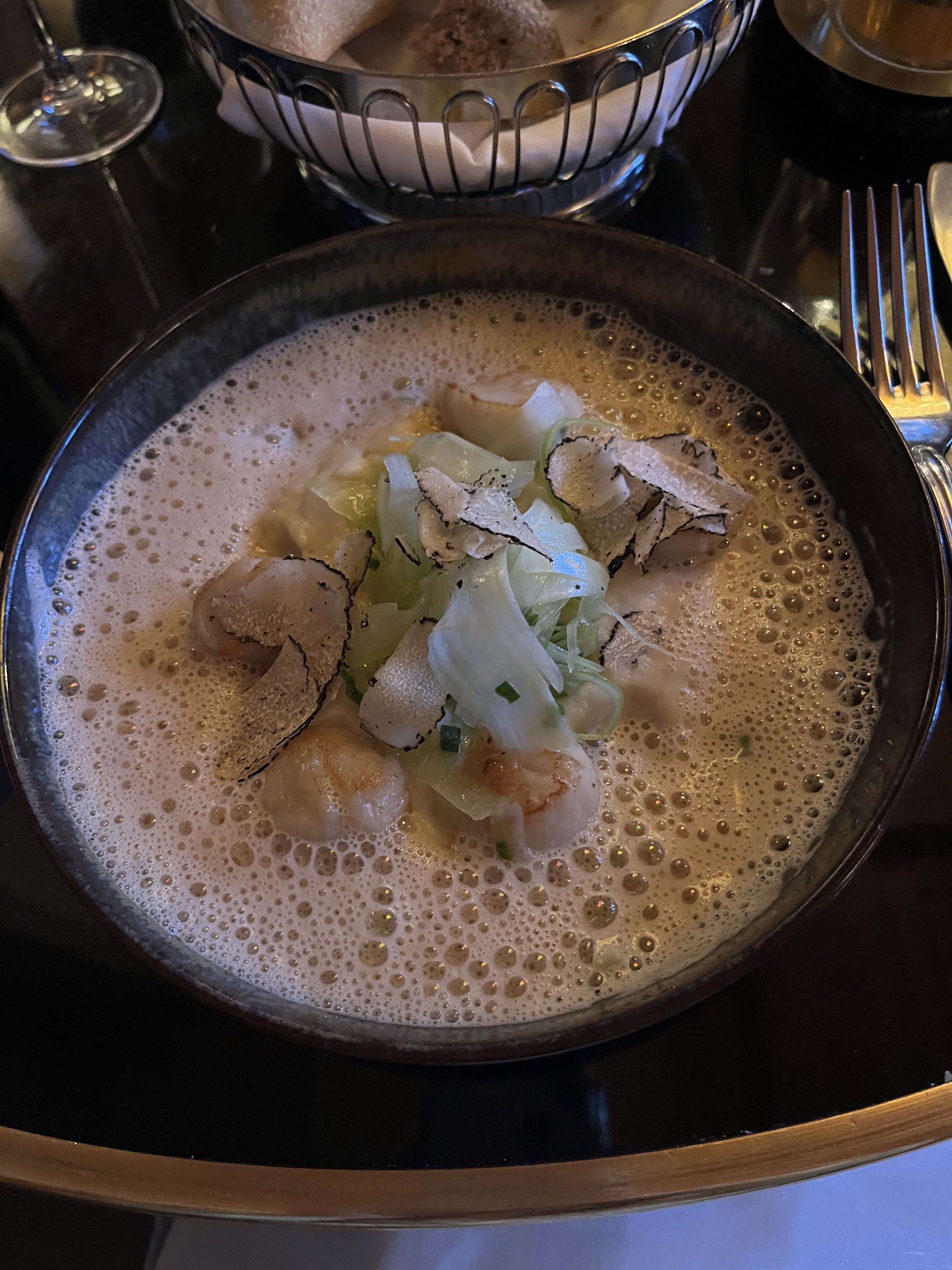 La nourriture n'est vraiment pas bonne, juste raffinée. Gardez à l'esprit qu'il y a apparemment un restaurant en bas et un restaurant à l'étage. Le service est excellent. Mais ce sont vraiment des plats de fruits de mer trop chers. Rien de spécial. Tous les autres restaurants où je suis allé à Paris proposaient une meilleure cuisine à des prix normaux. L'une des photos représente juste un filet de poisson, 90 euros, avec la sole de Douvres. Cela ne vaut toujours pas 90. Tous les autres plats n'avaient même pas un si bon goût. Juste une préparation sophistiquée.