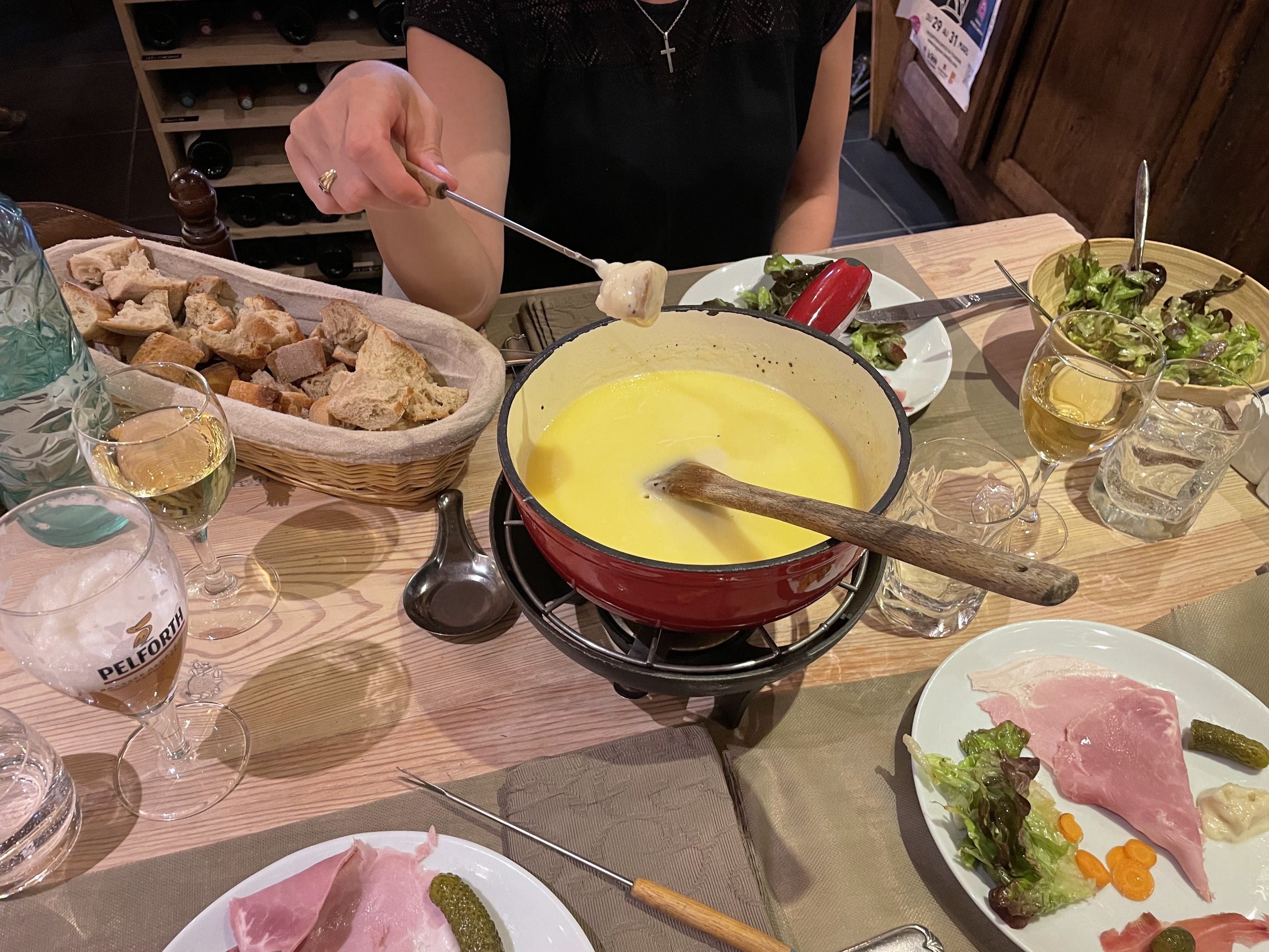 Délicieuse fondue au fromage, service sympathique. Notre pain n'était plus très bon, le deuxième panier avait le même problème, mais cela a été résolu avec honte, des milliers d'excuses et une boisson et une glace gratuites pour les enfants. Nos amis y ont dîné 3 fois pendant leurs vacances et c'était fantastique à chaque fois, donc je crois que c'était un incident. La raclette semble absolument fantastique et les plats eux-mêmes étaient également magnifiques. Recommandé! Réservez à l'avance, c'est un restaurant populaire et pas trop grand.