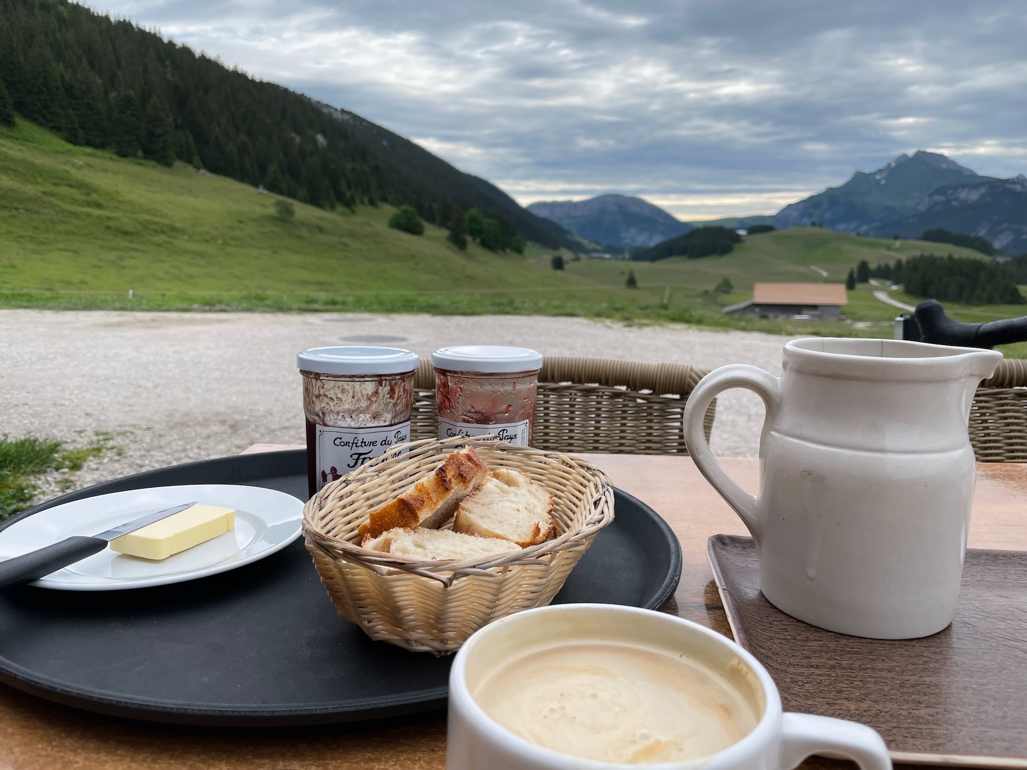Le café dont on rêve… Ascension à vélo du plateau des Glières le ventre vide (très) tôt début juillet. Je découvre chez Merlin. Un café, une tartine... et voilà sur ma table devant un paysage magnifique le petit-dej dont on a toujours rêvé. Lait et beurre de la ferme voisine. Confitures d'ici. Café d'exception. Que demandez de plus ? Un moment de complicité bien sympathique avec le Patron... Parfait. On reprend son vélo avec le plein d'énergie et des souvenirs pour la vie.