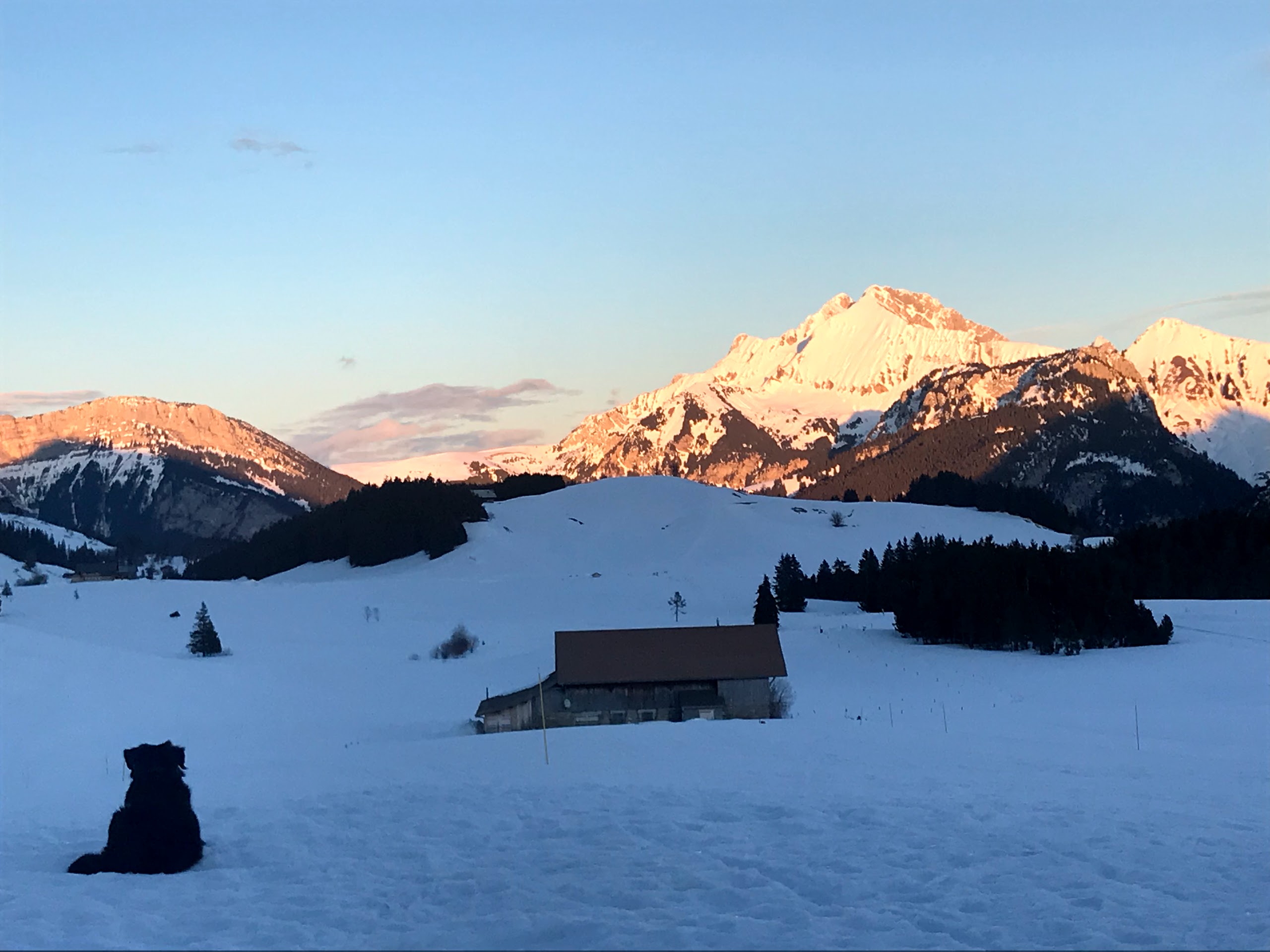 Vue magnifique sur le plateau des glieres le gîte peut loger 14 à 20 personnes. Directement sur les pistes de fond, je n'y ai pas mangé