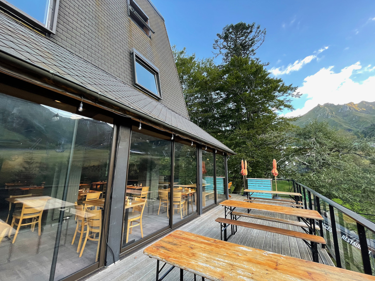 Plus qu'un gîte ou qu'un hôtel, c'est un coin de paradis. Je vais parler du restaurant, car encore une fois le hasard a fait parfaitement bien les choses. Nous cherchions un restaurant au pied du sancy pour manger à 19h, sans aucune réservation et sans faire parti des résidents du gîte. Bingo il reste de la place pour 5. Quelle découverte, une ambiance, une équipe et un décors chaleureux. Vous avez un petit coin bar, l'accueil de l'hôtel, puis un petit couloir qui mène à la boutique et un coin salon au près du feu (j'imagine toujours allumé l'hiver). Enfin vous arrivez sur la salle, où vous ne décrochez plus les yeux de la vallée en arrière plan de la terrasse. Après avoir savouré des plats (à partager ou individuel) d'une excellente qualité vous voilà invité par le gérant à rejoindre la terrasse pour profiter de chamallows autour d'un feu de camp. Je vous laisse imaginer l'ambiance et le sourire des enfants. Nous y sommes retourné cette fois en tête à tête avec madame. Il y a tellement à dire. Vos enfants ne mangent pas de plats traditionnels ? La solution vous est proposée. Vous hésitez entre cantal ou bleue ? On vous propose d'y goûter. Si le personnel est ainsi souriant, à l'écoute et drôle toute l'année je ne peut que vous recommander cet établissement.
