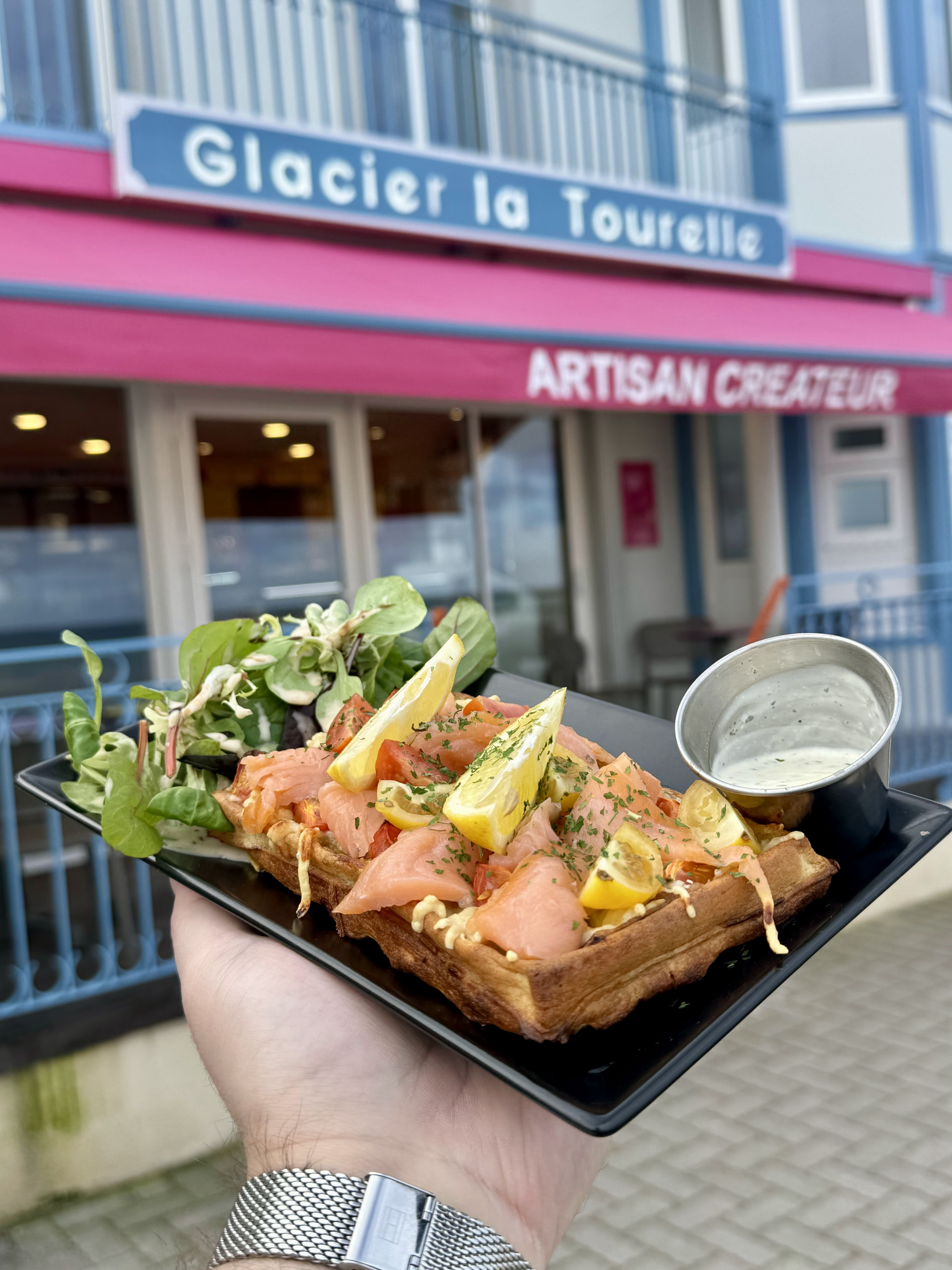 C’est simple je me suis régalé, jolie batisse, produits de qualité et 100% fait maison 👌🏻 Je kiff leur glace au Yaourt, et j’ai découvert leur gaufre saumon fumé crème d’avocat et la quiche Lorraine, c’était une tuerieeee