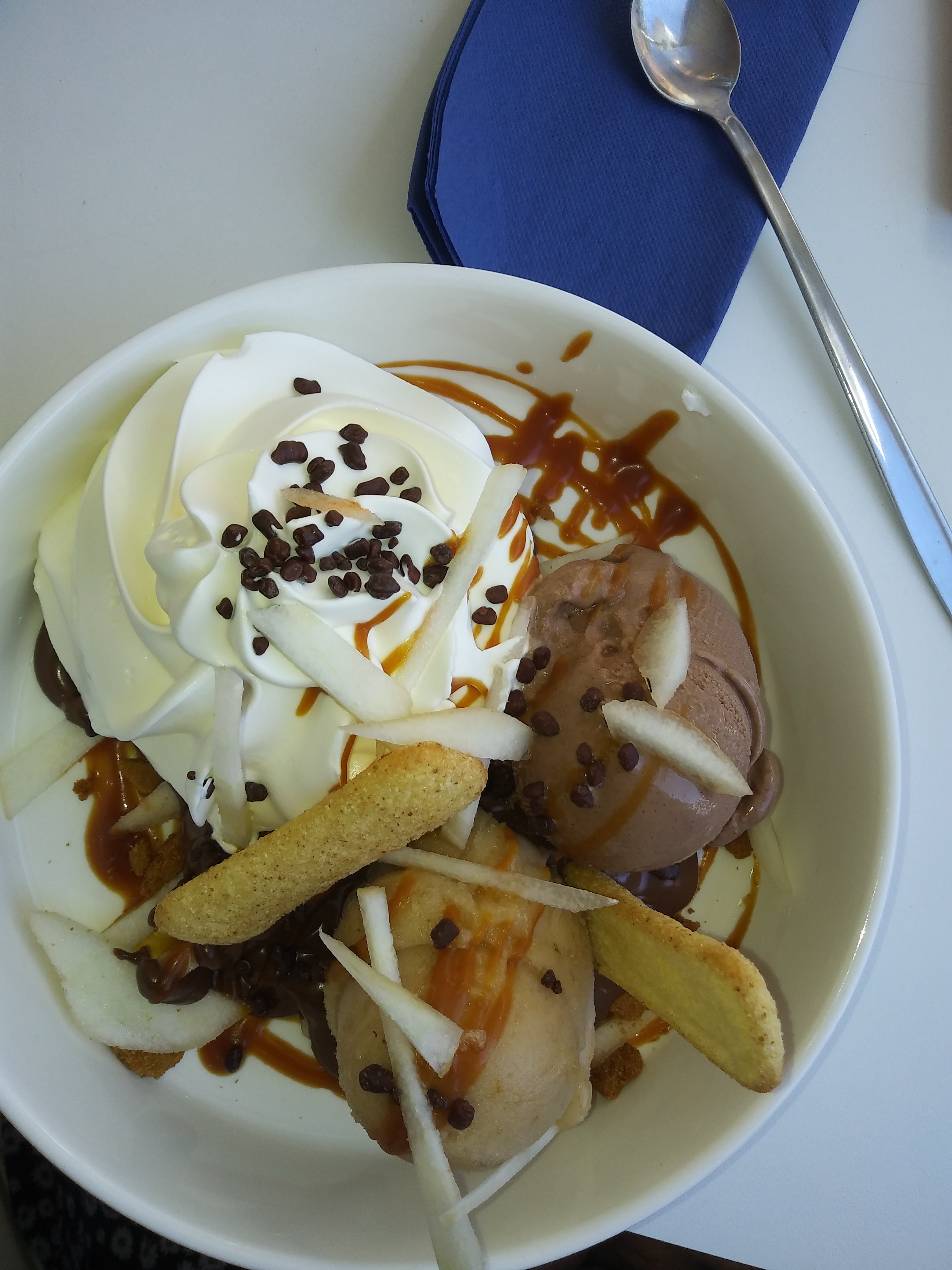 Les glaces sont bonnes, le choix important et varié. Mais une attente trop longue pour une simple glace et une gêne des fumeurs de la table d'à côté. Très (trop) chère pour la qualité globale.