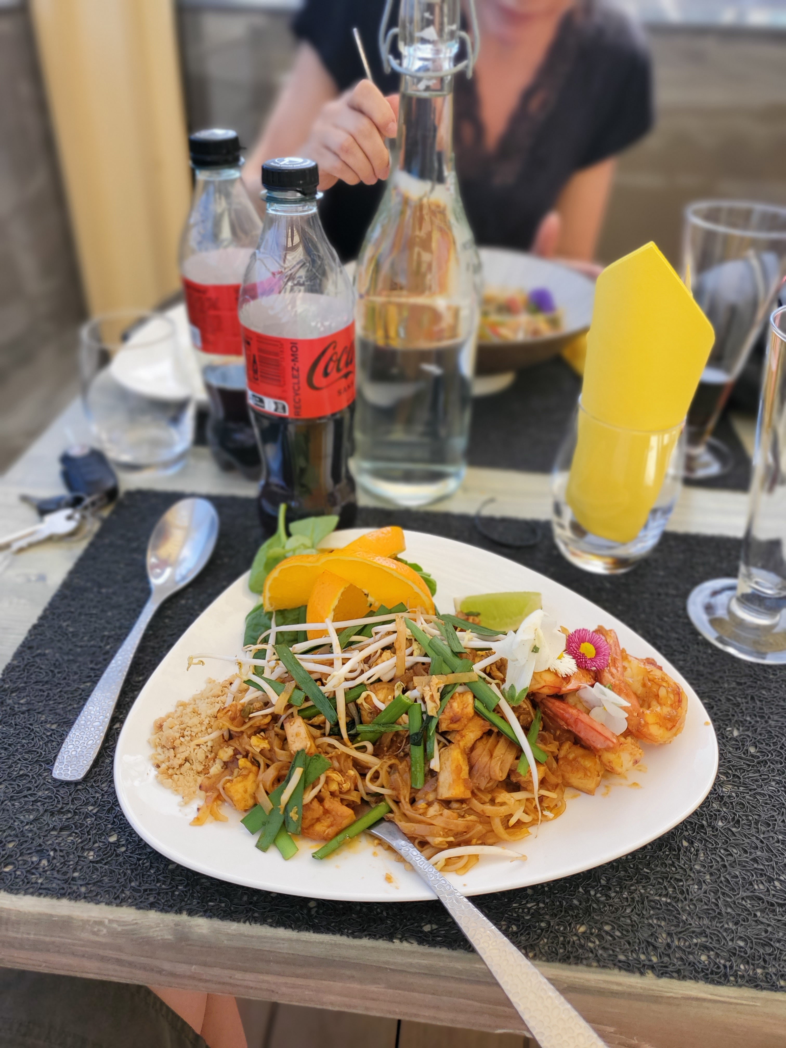 belle découverte ! pad thai gambas et poulet basilic très très bon 😍 thaïlandaise aux fourneaux, et ça se sent ! voyage gustatif garantie. plat assez copieux pour un prix à 20 euros max bravo 👍