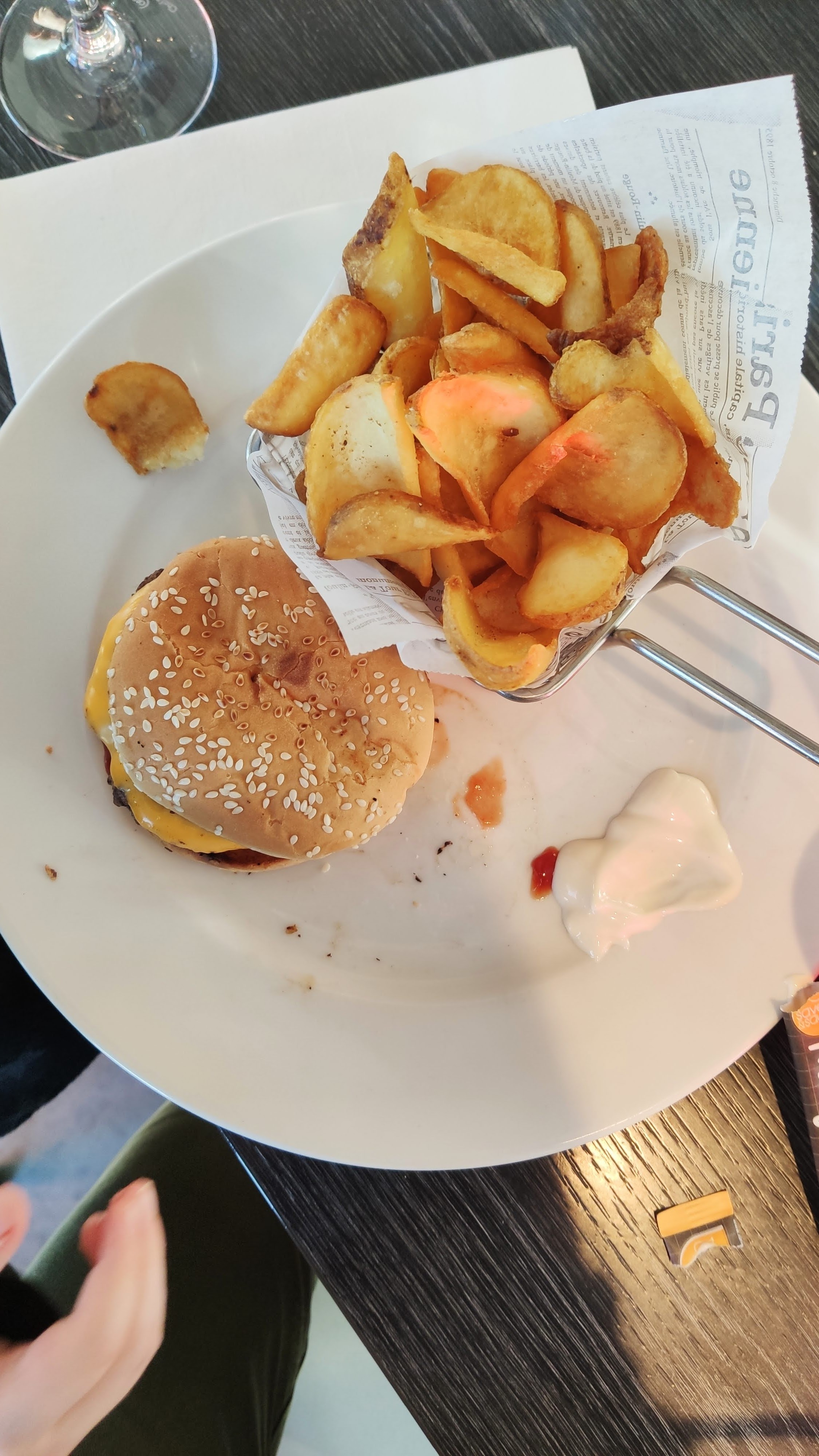 Un cadre sympa, un accueil agréable avec une serveuse avenante, tout pour passer un excellent moment. Le burger forezien proposé à base de fourme de Montbrison et rapées pour remplacer le pain m'est apparu comme un excellent choix mais là, déception : les rapées n'étaient pas vraiment croustillantes ni chaudes, et pour légumes...des frites 🤔tout aussi tiedasses et en plus toutes molles🥴 pour seule verdure , une feuille de salade coupée en 4. Quel dommage ! ... Verre de vin à 7€ quand même. Bref nouvelle expérience décevante.