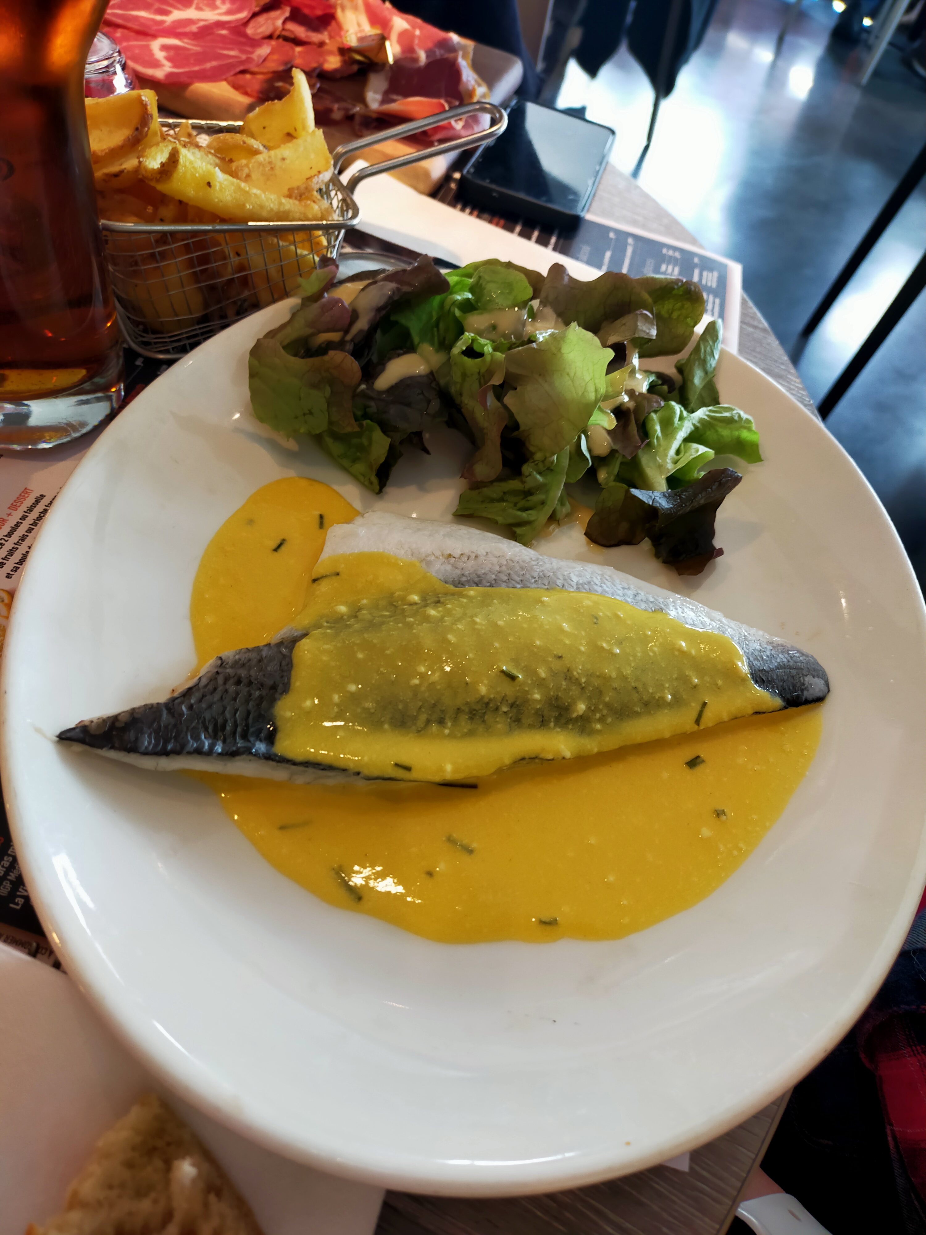 Un peu déçue par les moules marinières arrivées tièdes, que le serveur a été faire réchauffer mais pas très bonnes et chaudes dessus tièdes dessous. La sauce marinière hyper salée. La salade de mon mari était hyper vinaigrée.