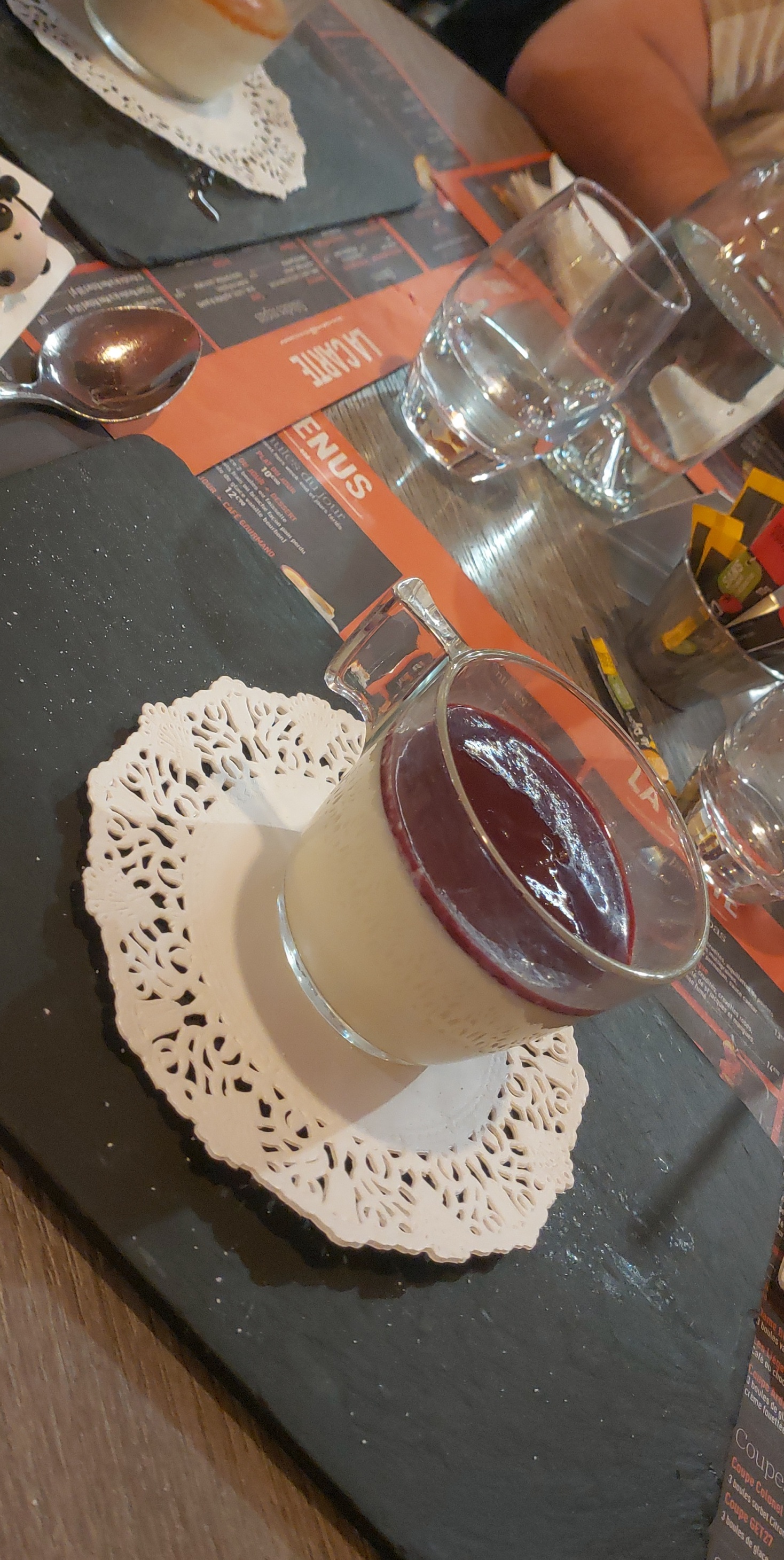 Au menu moules marinières encore congelées! L’apéro pas encore bu qu’on veut déjà prendre notre commande. On enchaine donc avec…Une première moule glaciale une 2 avec un glaçon et la en num 3 un glaçon avec une moule à l’intérieur! On me les ramène guère plus chaude mais sans glace c’est déjà ça. Une fois rentrée malade j’aurai du me douter que je prenais un risque quand même. Le dessert ne valait pas mieux dommage. Jamais mangé aussi vite et aussi mal je n’y remettrai pas un pied.