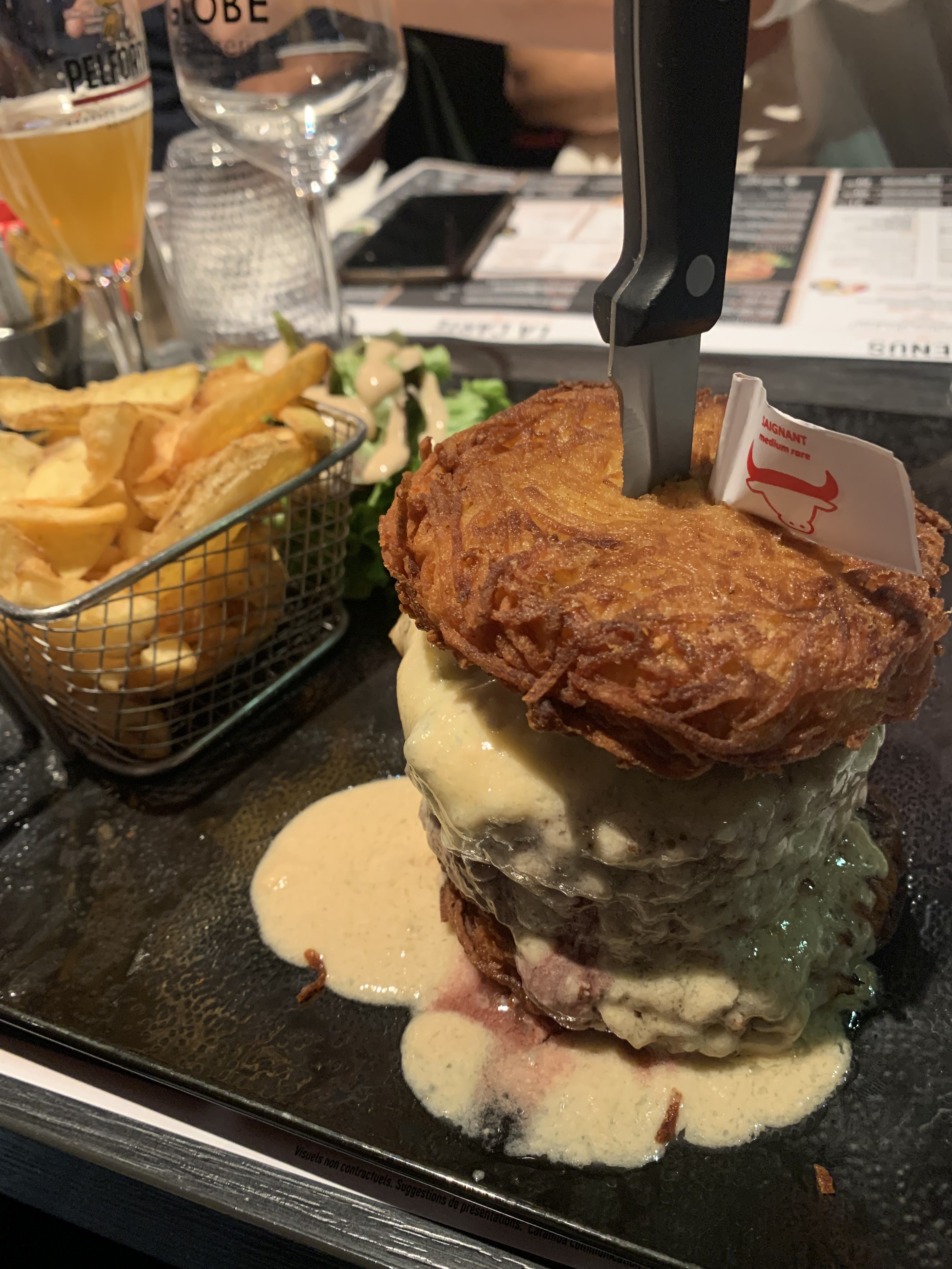 Avis mitigé car l’équipe est très sympathique et le Lieu animé et joli. Hamburger avec des râpées très fade, pas d’assaisonnement. Et les frites ne sont pas extraordinaires pour 14,50€. Dommage.