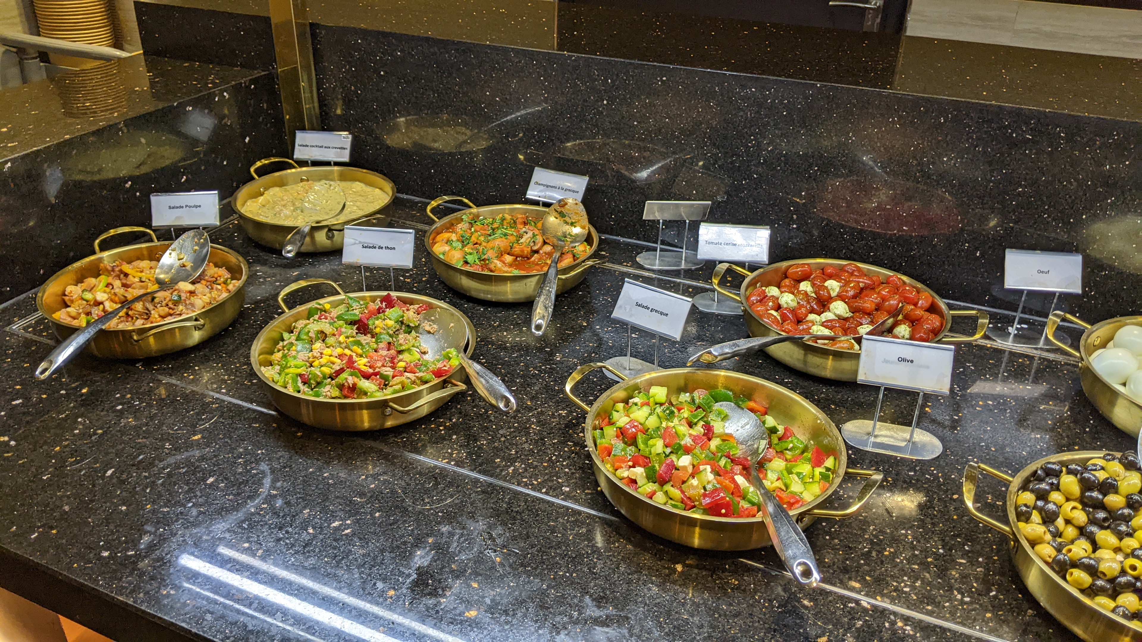 Il faut arriver avant 14h sinon plus rien dans les plats....... Personnel bbboff pas très agréable . Heureusement que des salons séparent les clients sinon nous serions dans une cantine