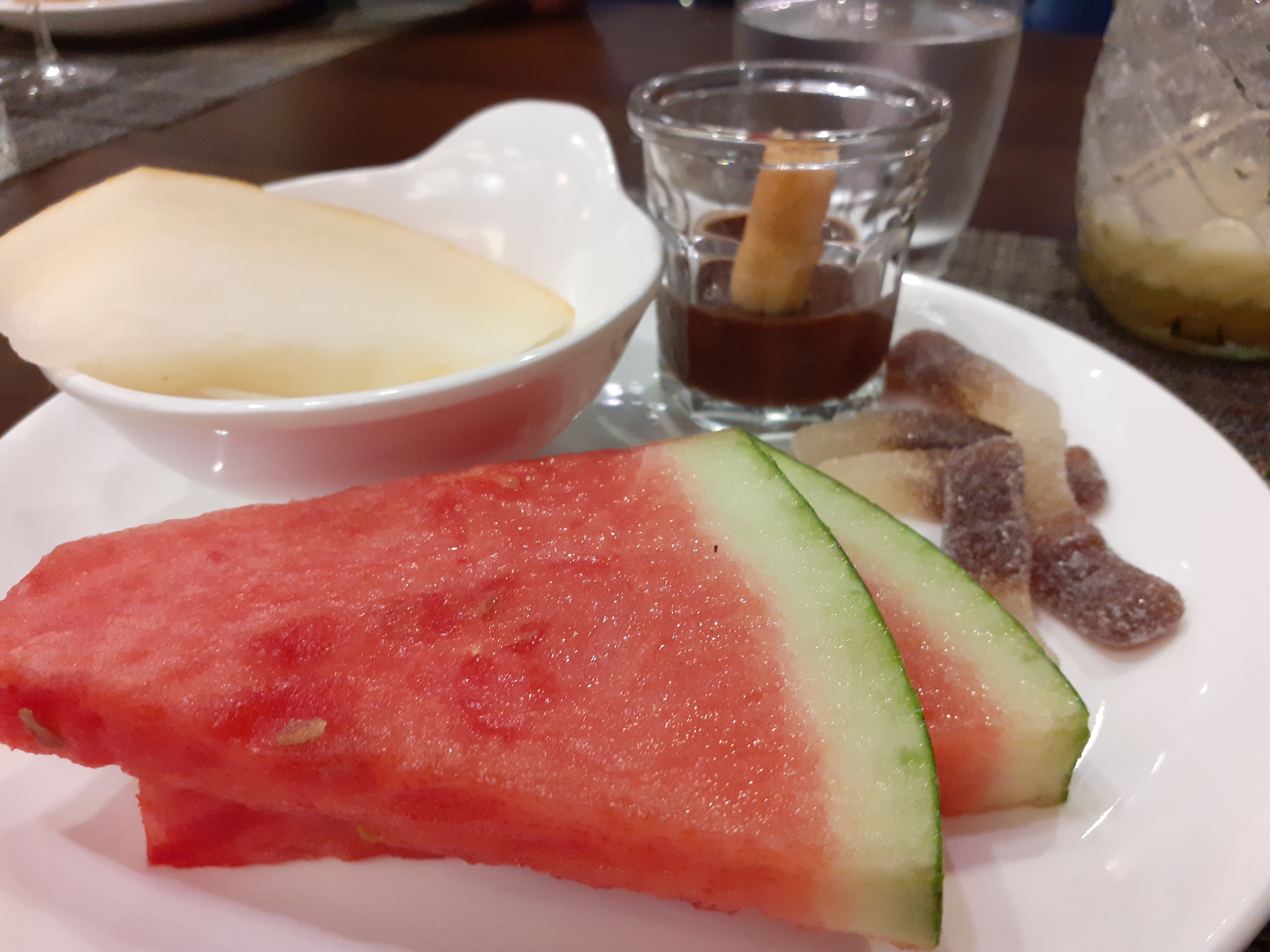 Fruits pas frais la pastèque est molle comme si elle était la depuis 3 jours. Le verre pour boire le coca est casser sur le coter. Je prend un cocktail mais ce n’est pas préciser que c’est avec de l’eau pétillante donc vraiment pas bon. Les tartes sont très dur au niveau de la pâte. L’ile flottante a un gout de vaisselle. On a attendu 20 minutes pour qu’on prenne nos boissons et la serveuse n’étais vraiment pas agréable et ce n’était pas la seule d’ailleurs. Déjà que je venais pas souvent car je trouve sa chère mais alors la je risque pas de revenir vue comment c’est désespérant.
