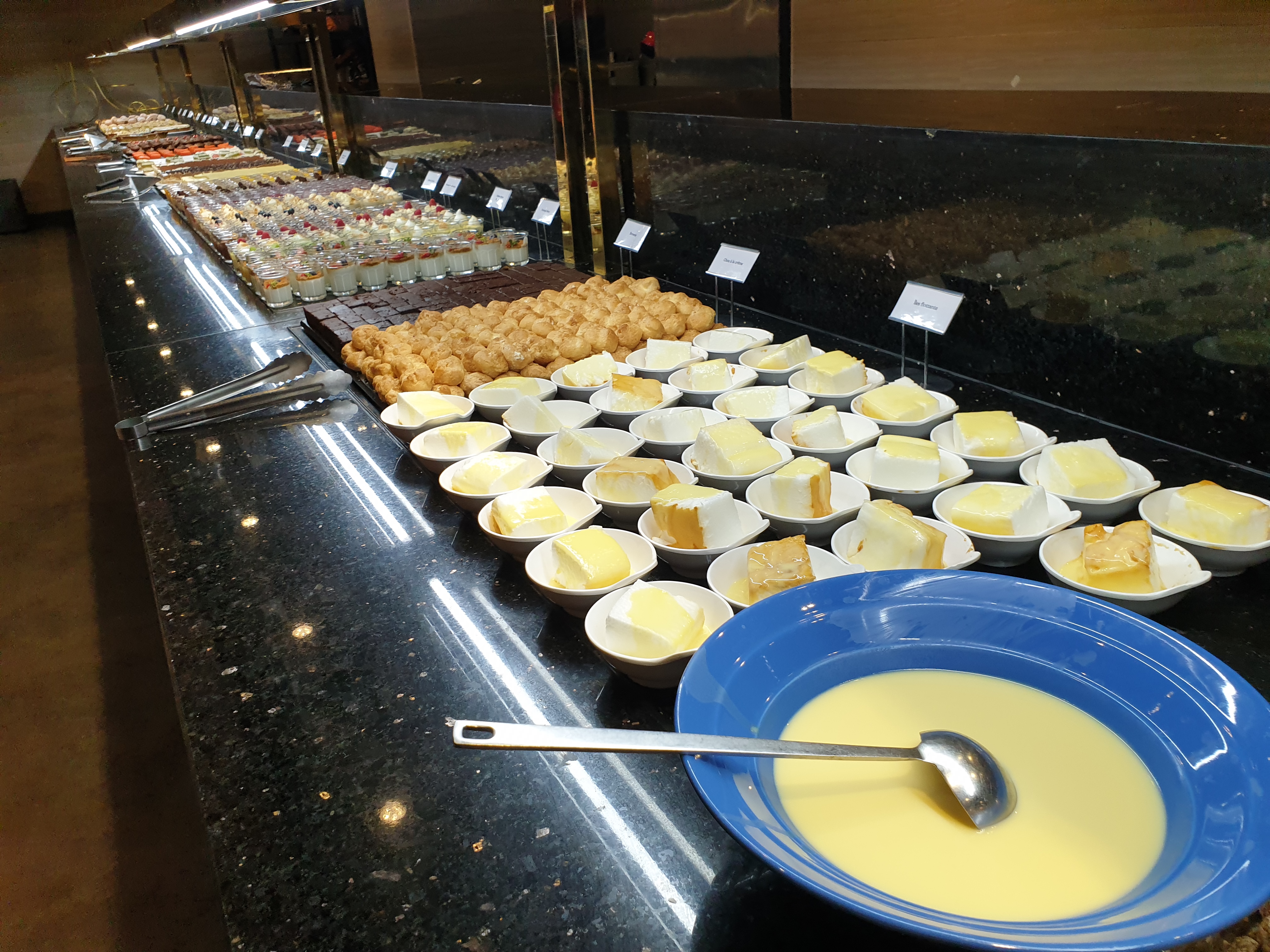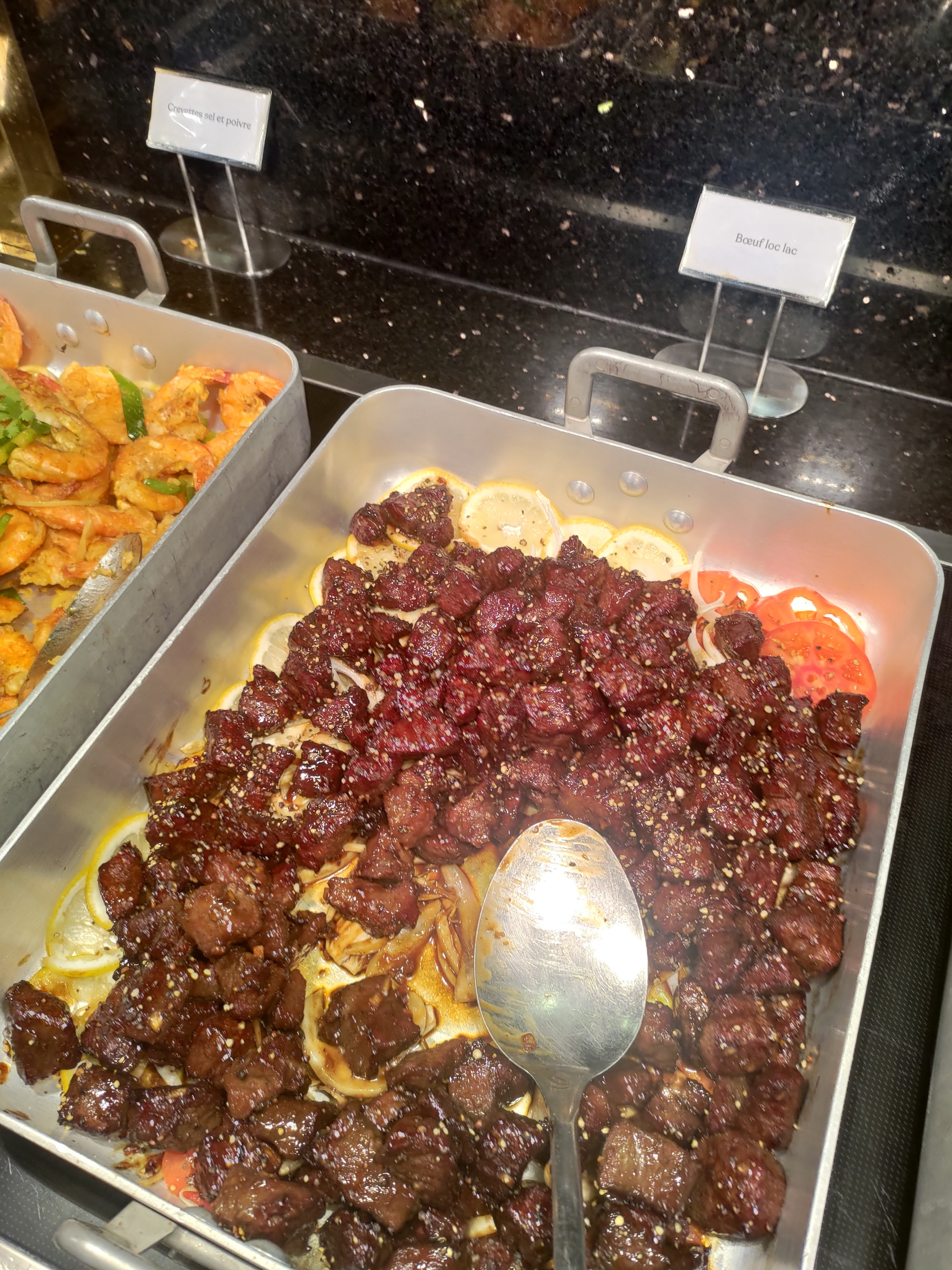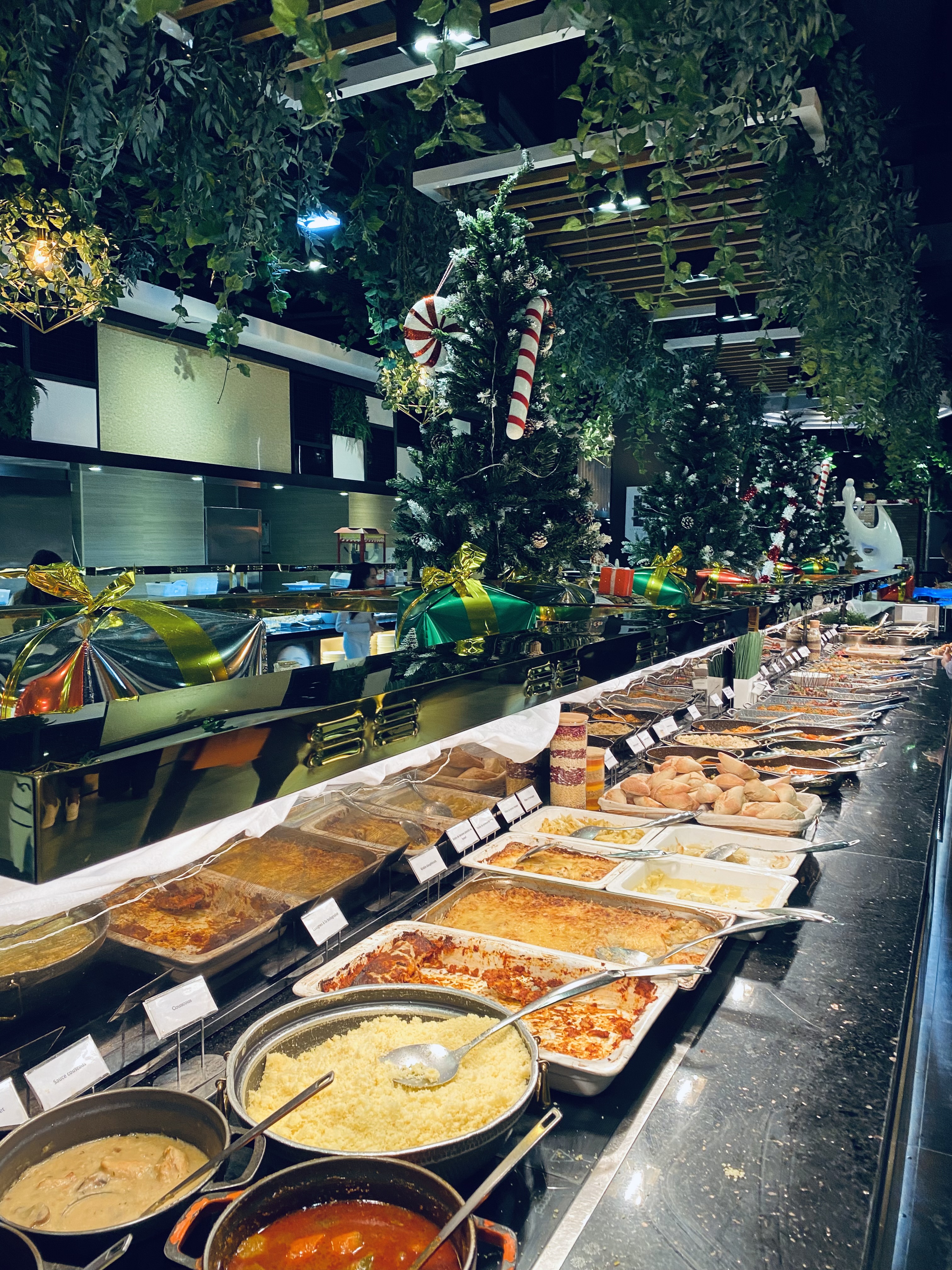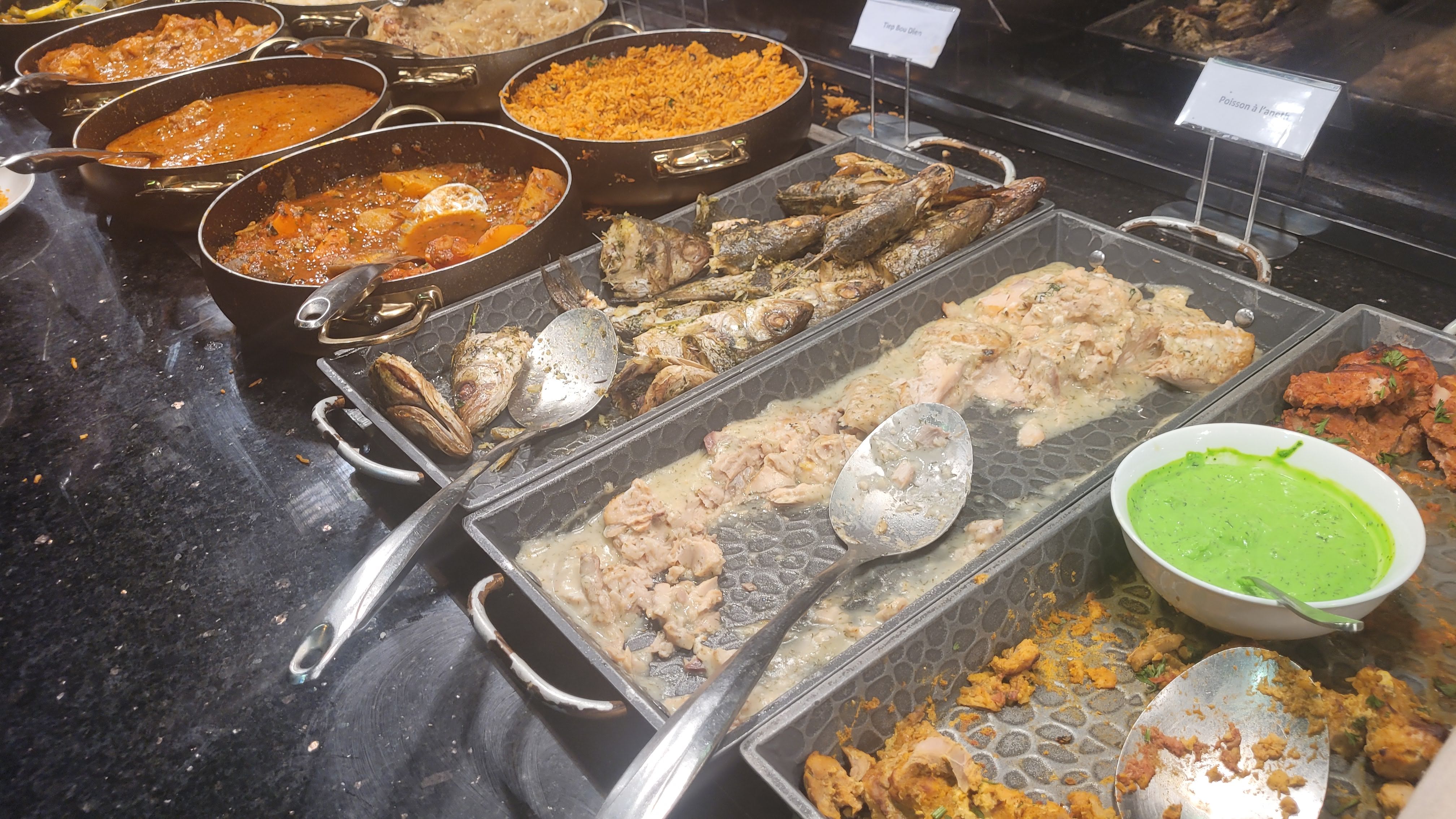 Pour mon anniversaire surprise, mes tantes m’ont emmené dans ce restaurant à volonté. Plusieurs buffets sont présentés avec des plats en provenance d’Afrique, Asie et Europe. Cependant, je doute de la fraîcheur de l’ensemble des produits. L’attente à l’entrée est assez longue et pas de réservation n’est possible à moins de déposer une caution. La musique était sympa et le pianiste n’a pas hésité à faire une mélodie pour mon anniversaire. Assez mitigée dans l’ensemble.