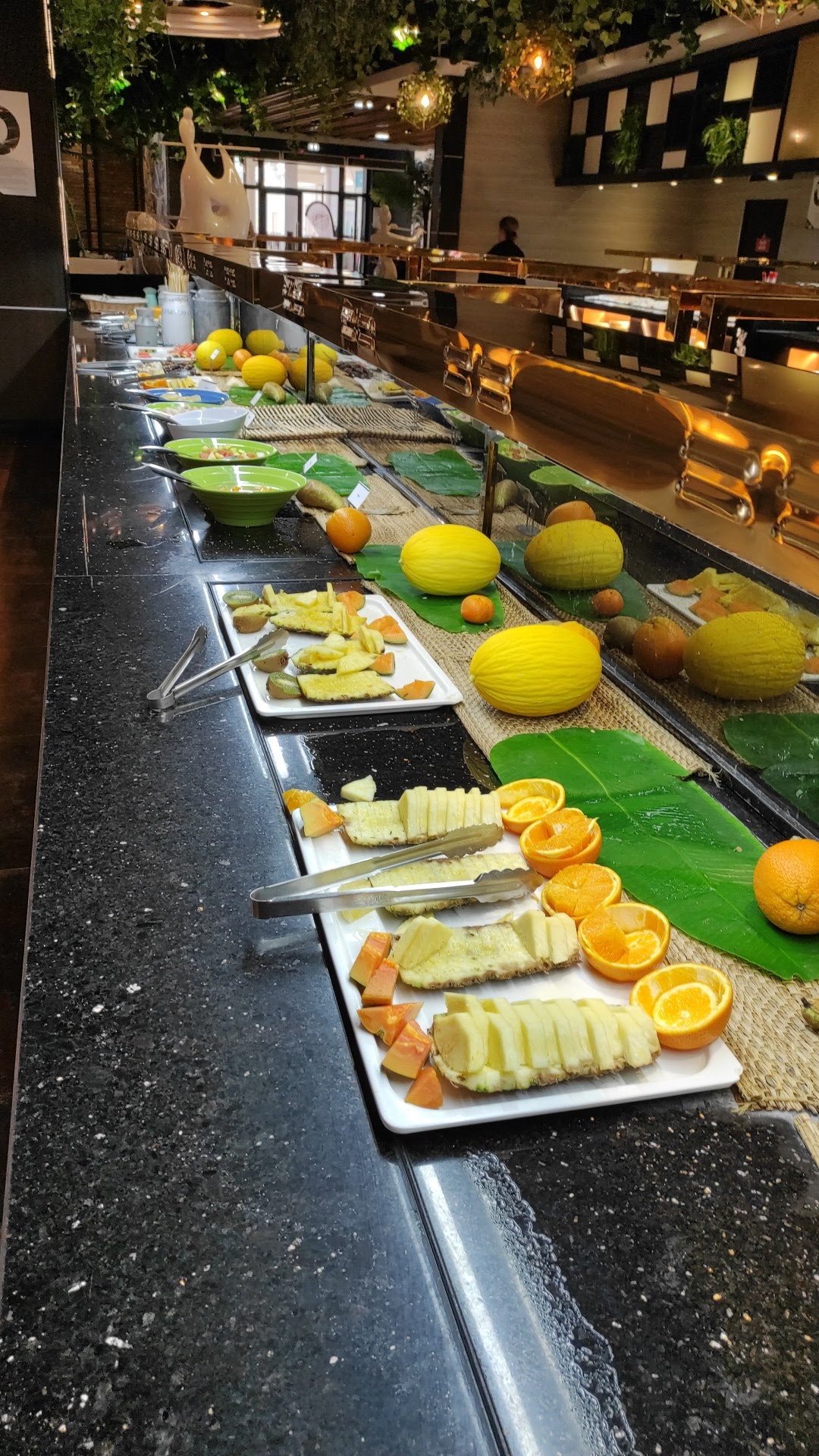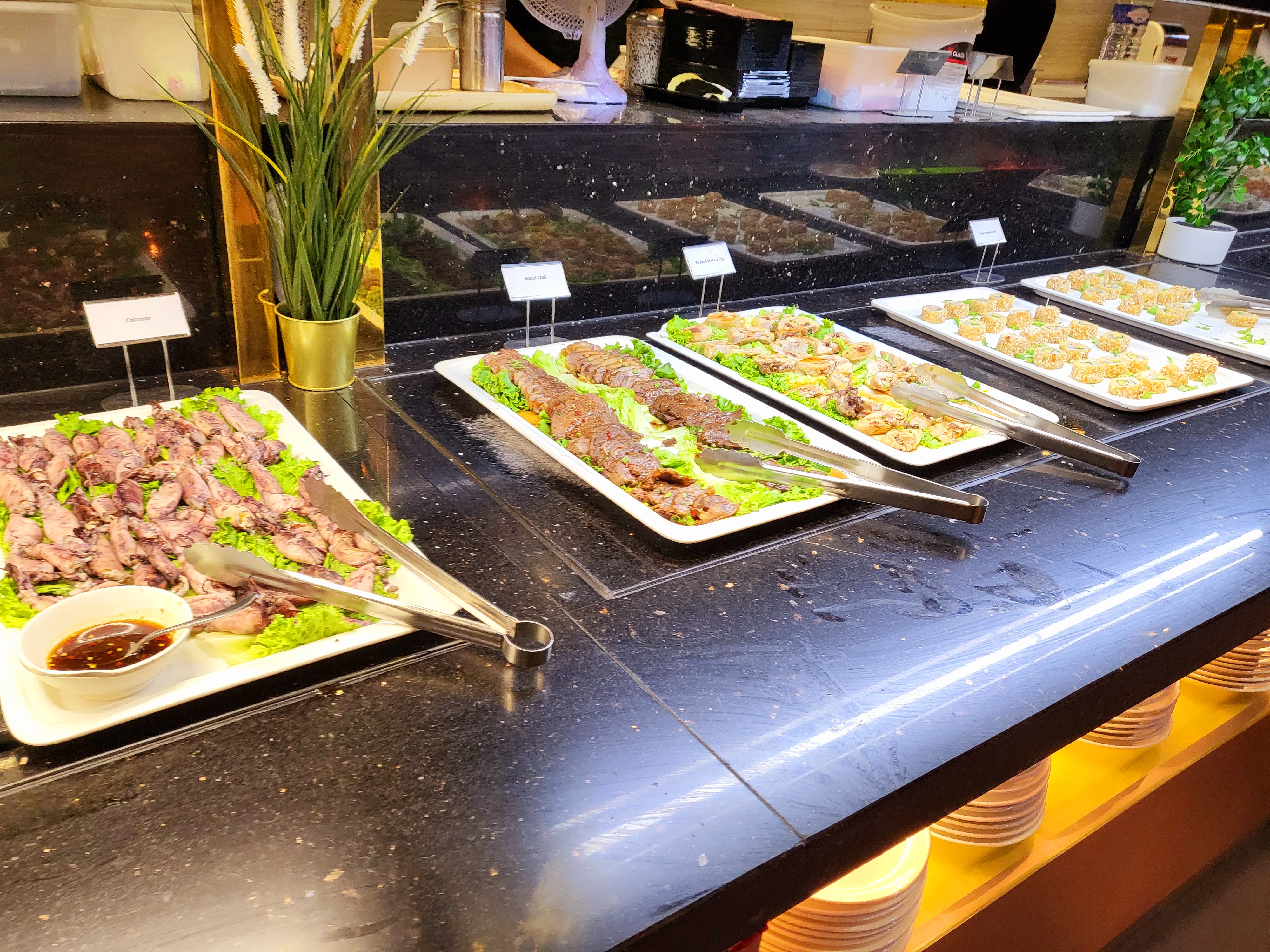 Un buffet à volonté plutôt chic, beaucoup de variétés de plats, plutôt orienté asiatique, mais on trouve quand même des spécialités internationales(lasagnes, pizza, souris d'agneau, nann), même si les saveurs ne sont pas extraordinaires, la qualité générale reste au dessus de la moyenne, le prix est abordable, je recommande