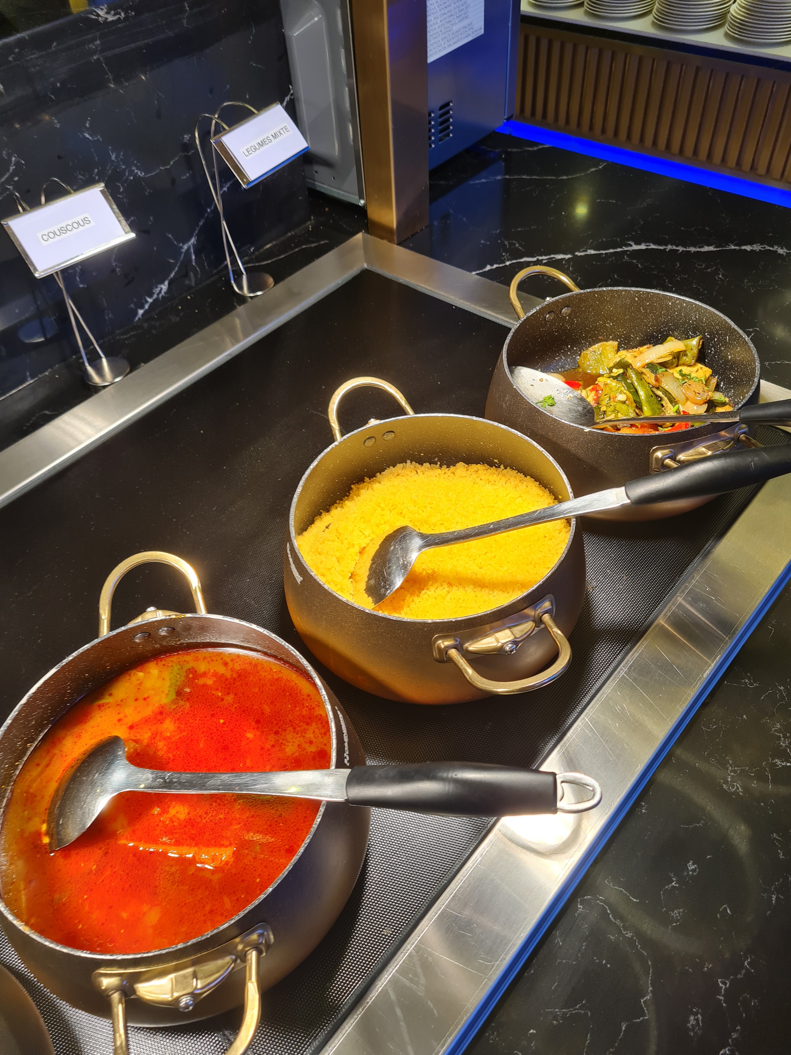 Extra !!!!propre!!!!!bon !!!!! Plats varier indien.francais .asiatique. oriental .wok etc. Dessert varier fromage aussi Personnels très accueillants rapide rien ne traîne ils passent pour savoir si tout va bien très respectueux !!!la grandeur du restaurant est impressionnant mais alors vraiment bravo bravo car il est d une propreté vu le monde qui viennent manger sa reste nickel vraiment bravo a toute l equipe de salle de gestion et Bravo à toute l equipe cuisine et service. c est bon et varier merci à tout ceux qui travaillent labas et merci pour ceux qui ont fais ce concept plusieurs saveurs dans un resto beau et bon Je recommande adresse deja partagé car mérite
