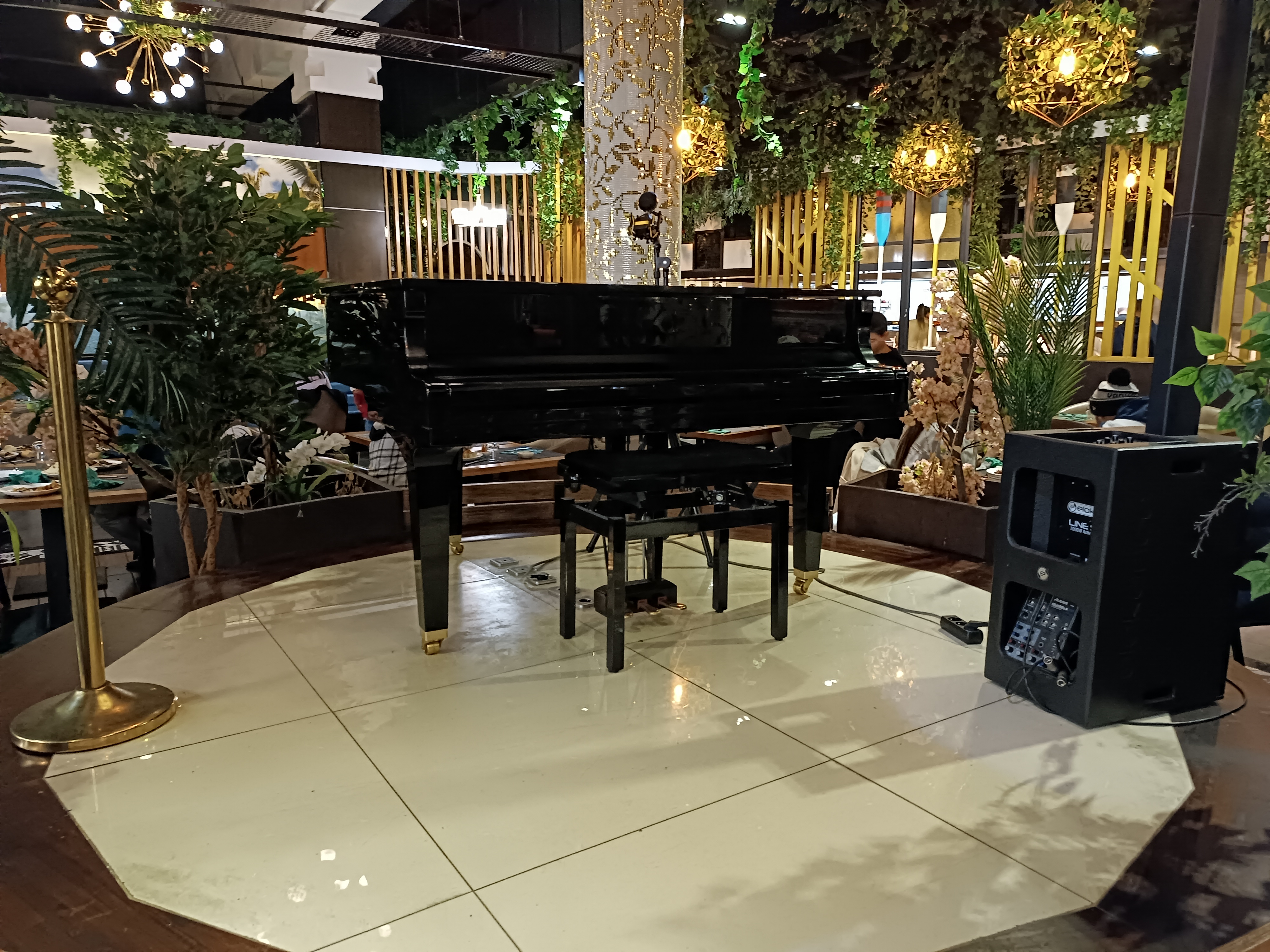 Une belle ambiance🎵 pianos les lieux bien aménagés. Je n ai pas trop apprécié le buffet indien était fade mais le reste était bien, le top c est le pain naan au fromage. Les serveurs ne sont pas trop souriants en dirait des robots un petit sourire fait aussi plaisir