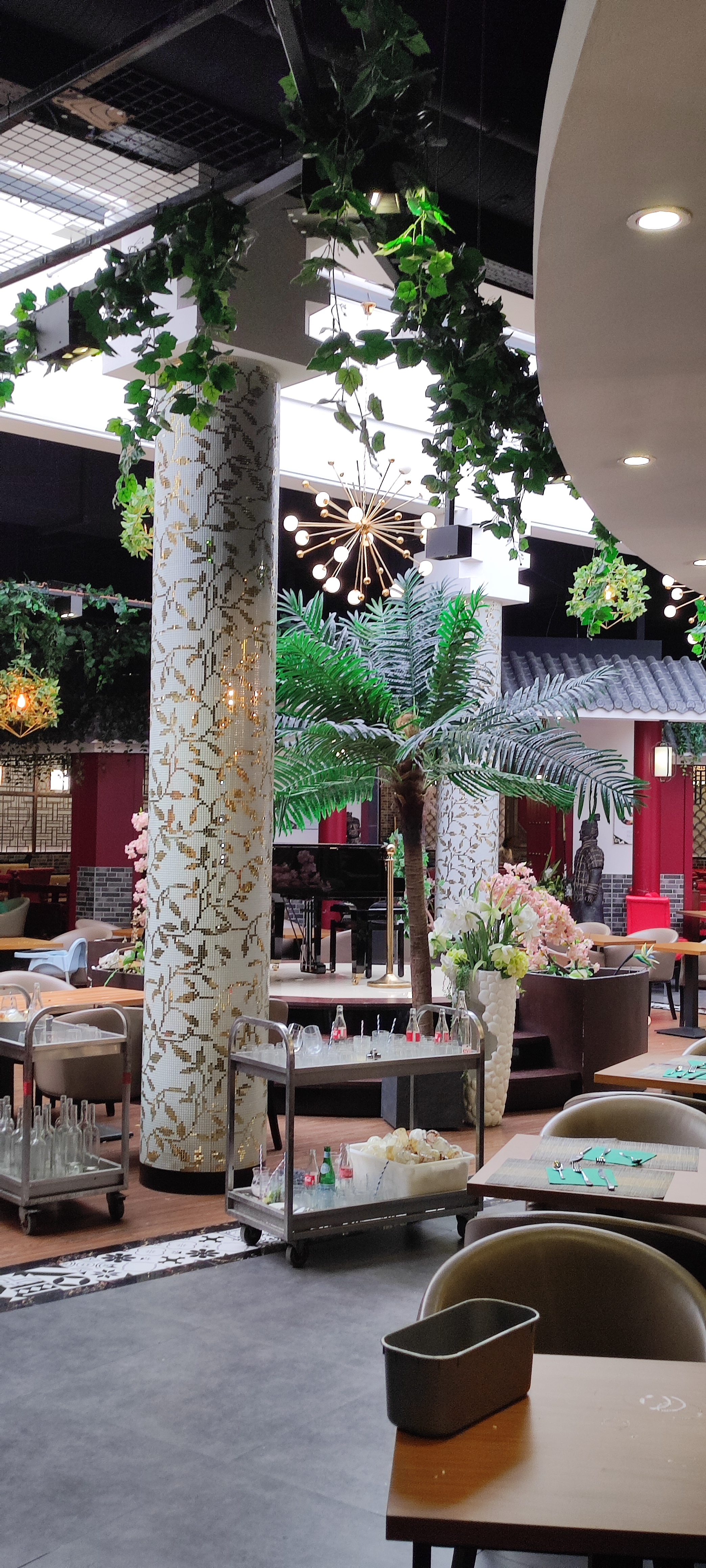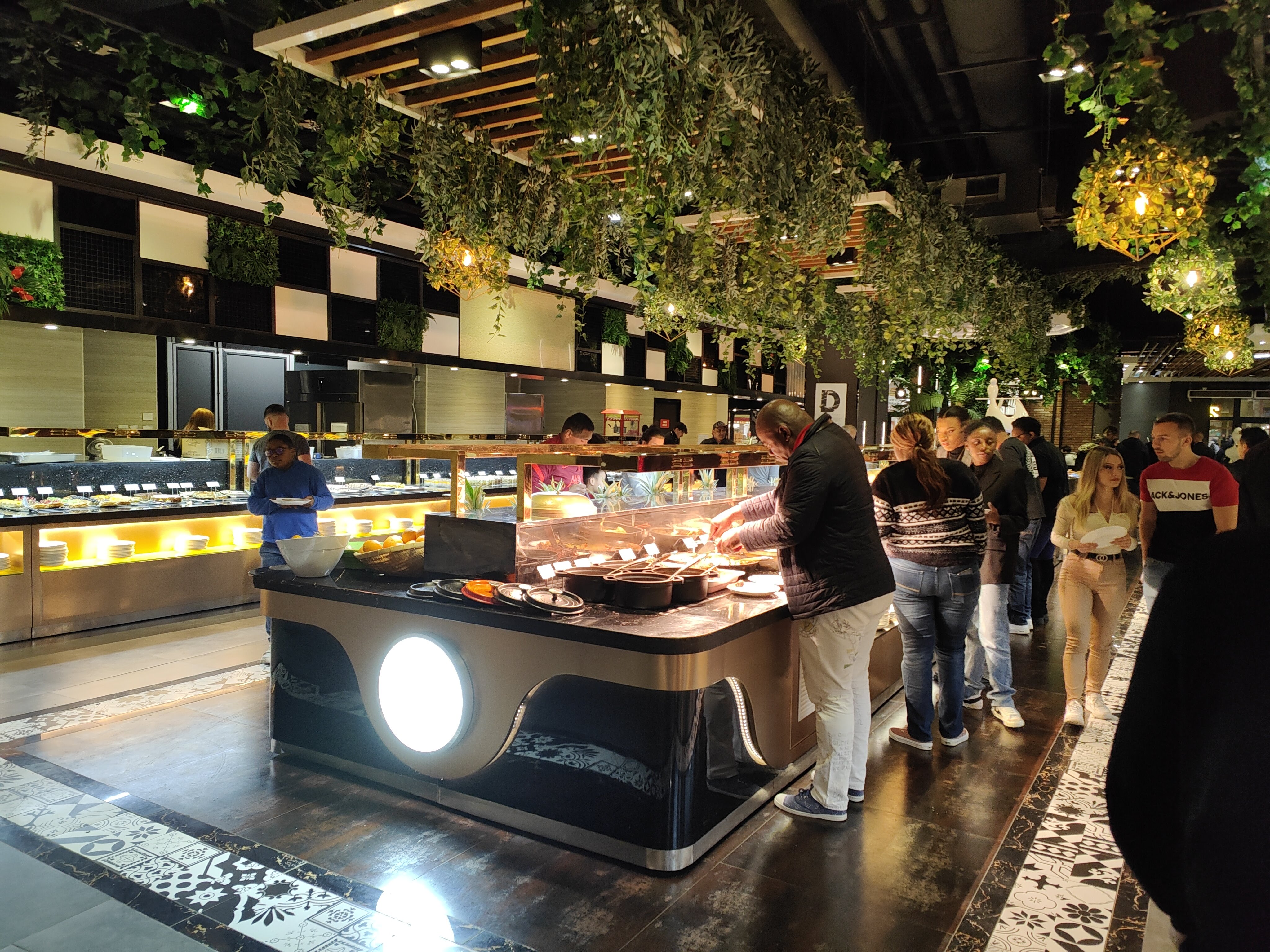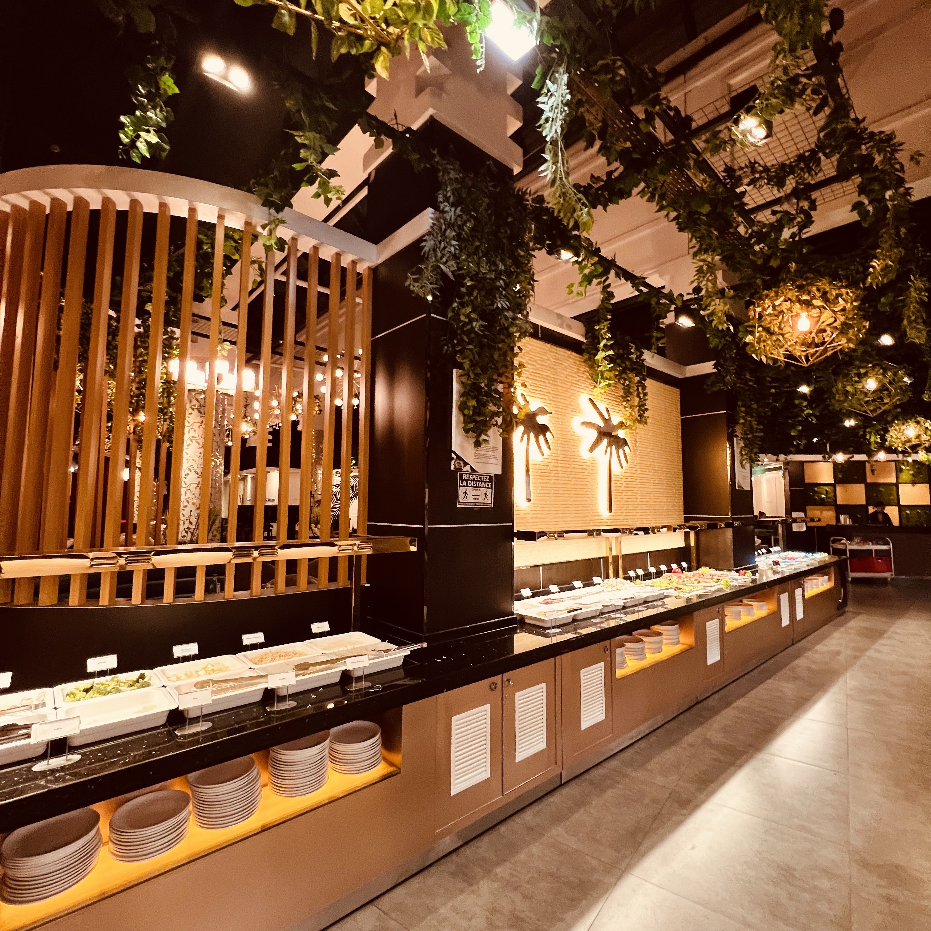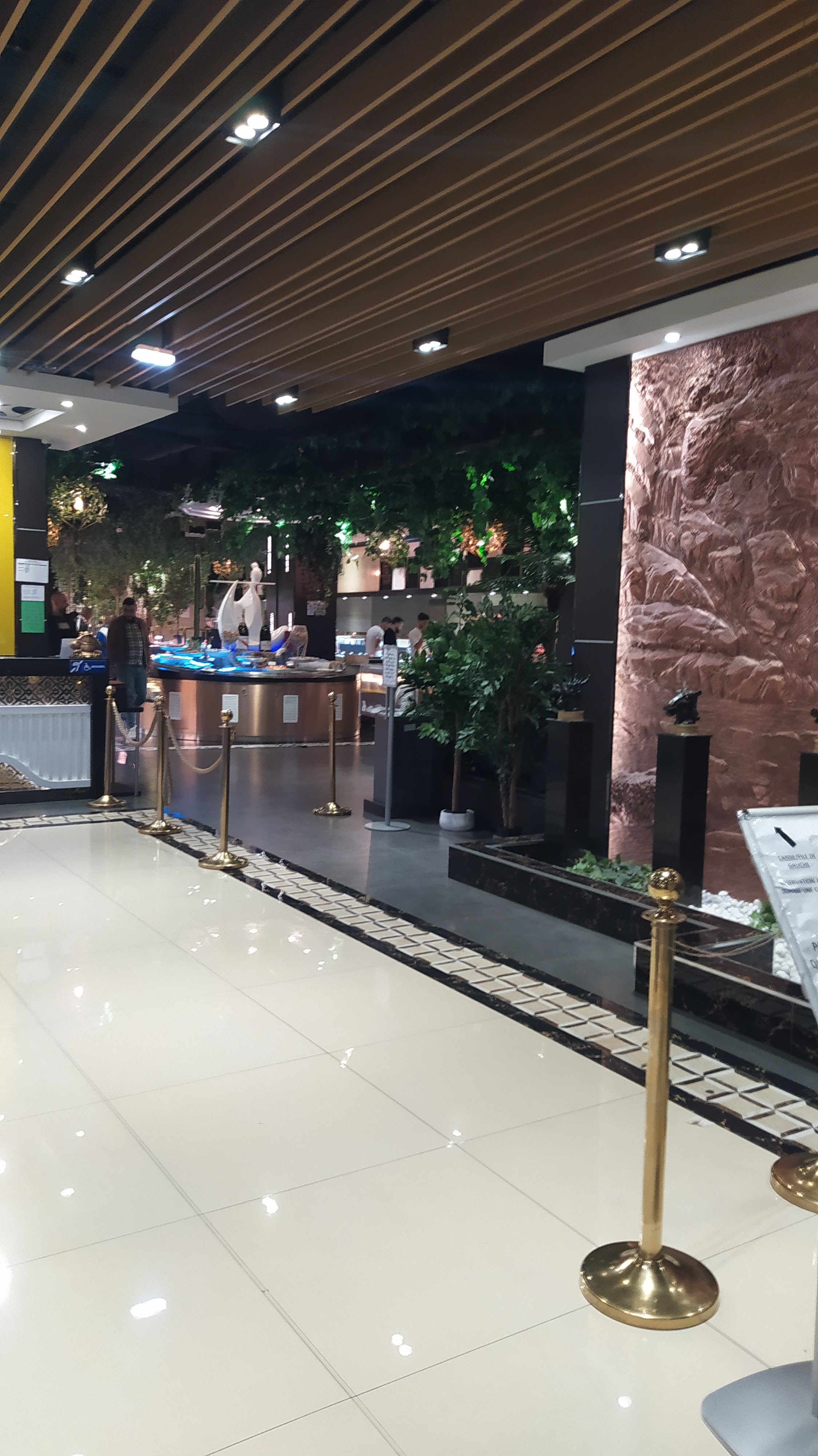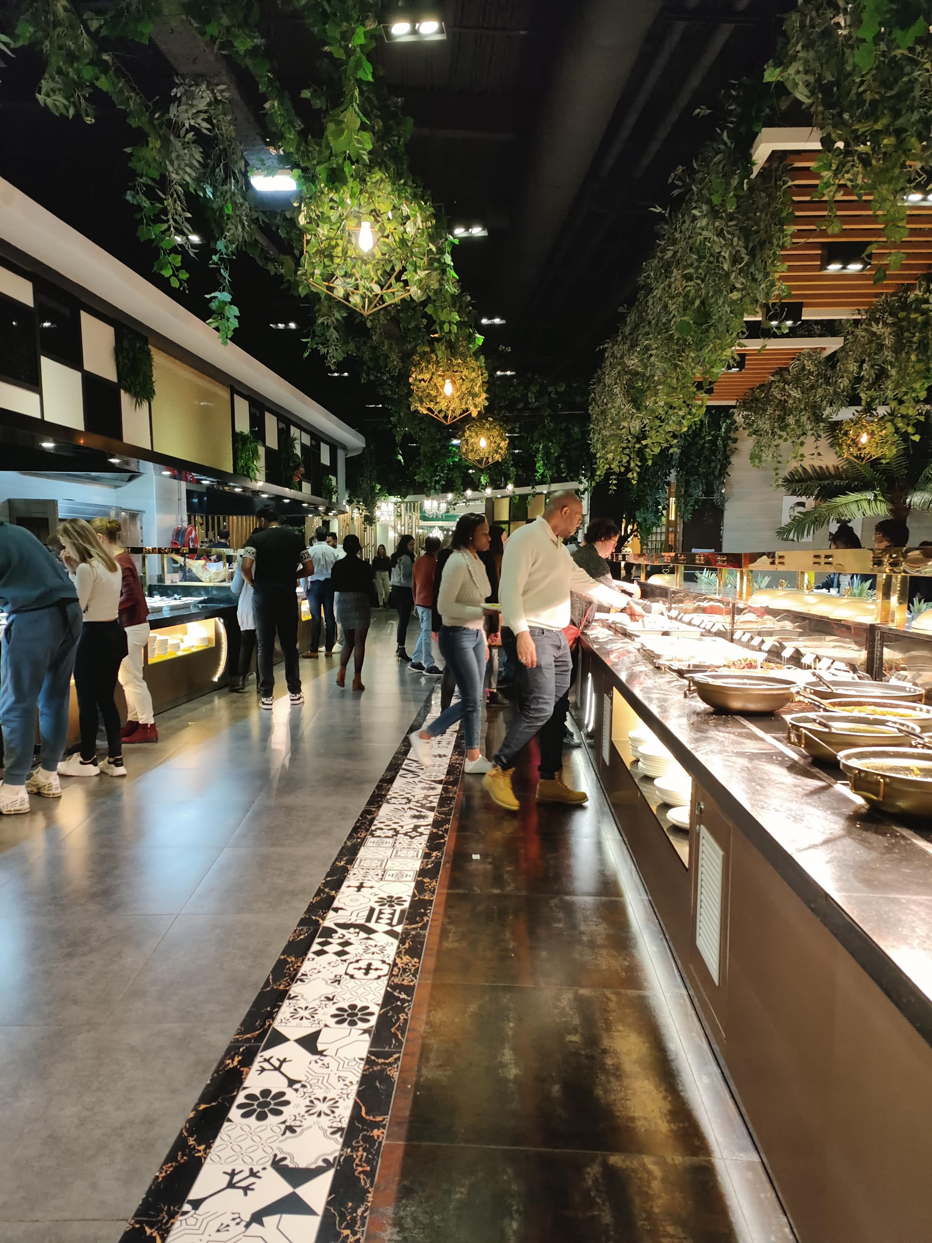 Cadre super beau la décoration est incroyable et les univers super stylés ! Le service est plutôt bien aussi ! Et il y en a pour tous les goûts niveau buffet chaud froid très bon ! Particulièrement les desserts qui pour une fois sont fait maison pour la plupart et ça ça fait la différence pour un restaurant buffet à volonté !