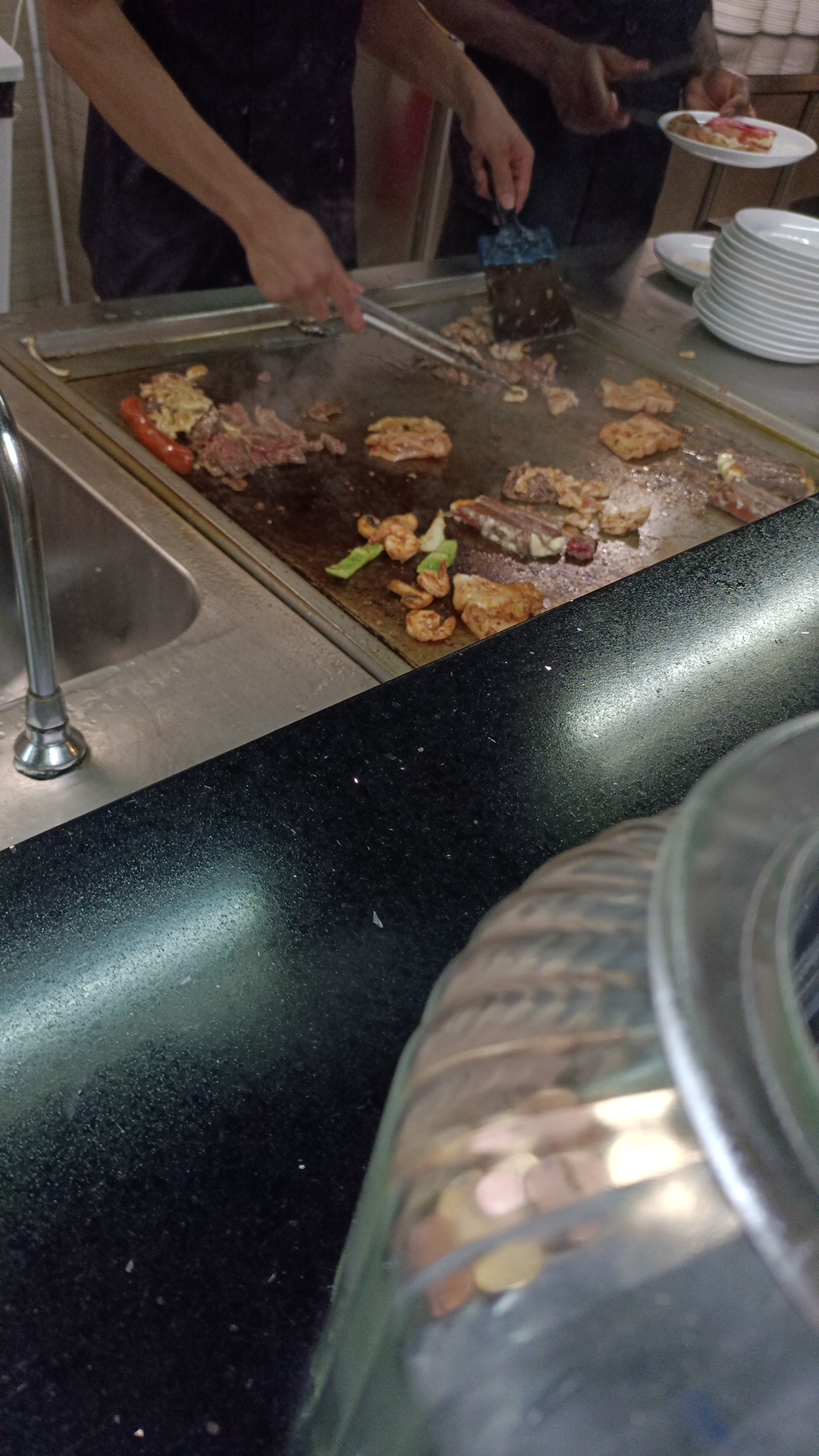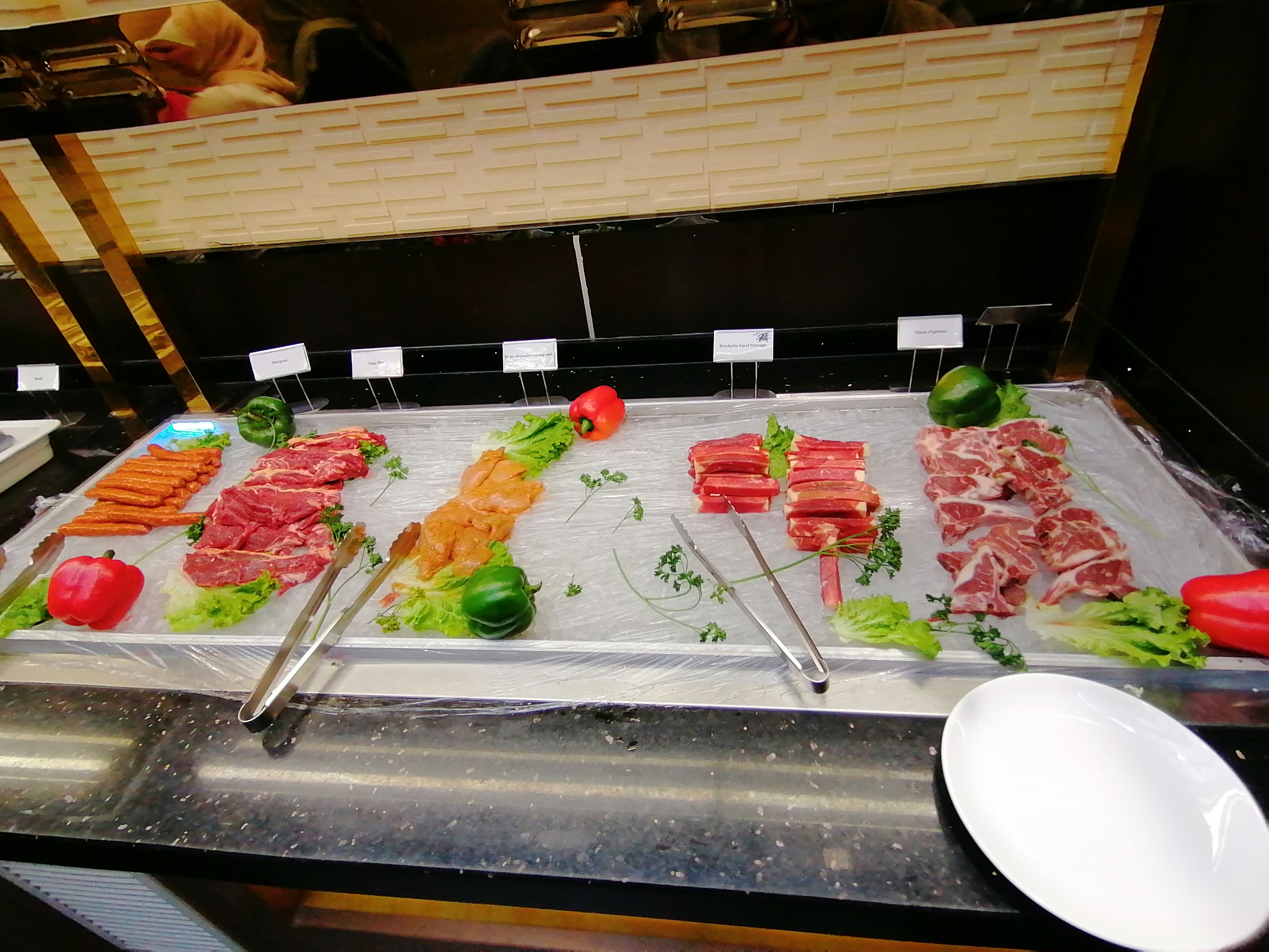 Dîner dans une ambiance feutrée et spacieuse. Buffet à volonté different des autres restos du type avec beaucoup de choix divers et variés du monde. Les plats bien preoares à la demande avec des cuisiniers qui inspirent confiance