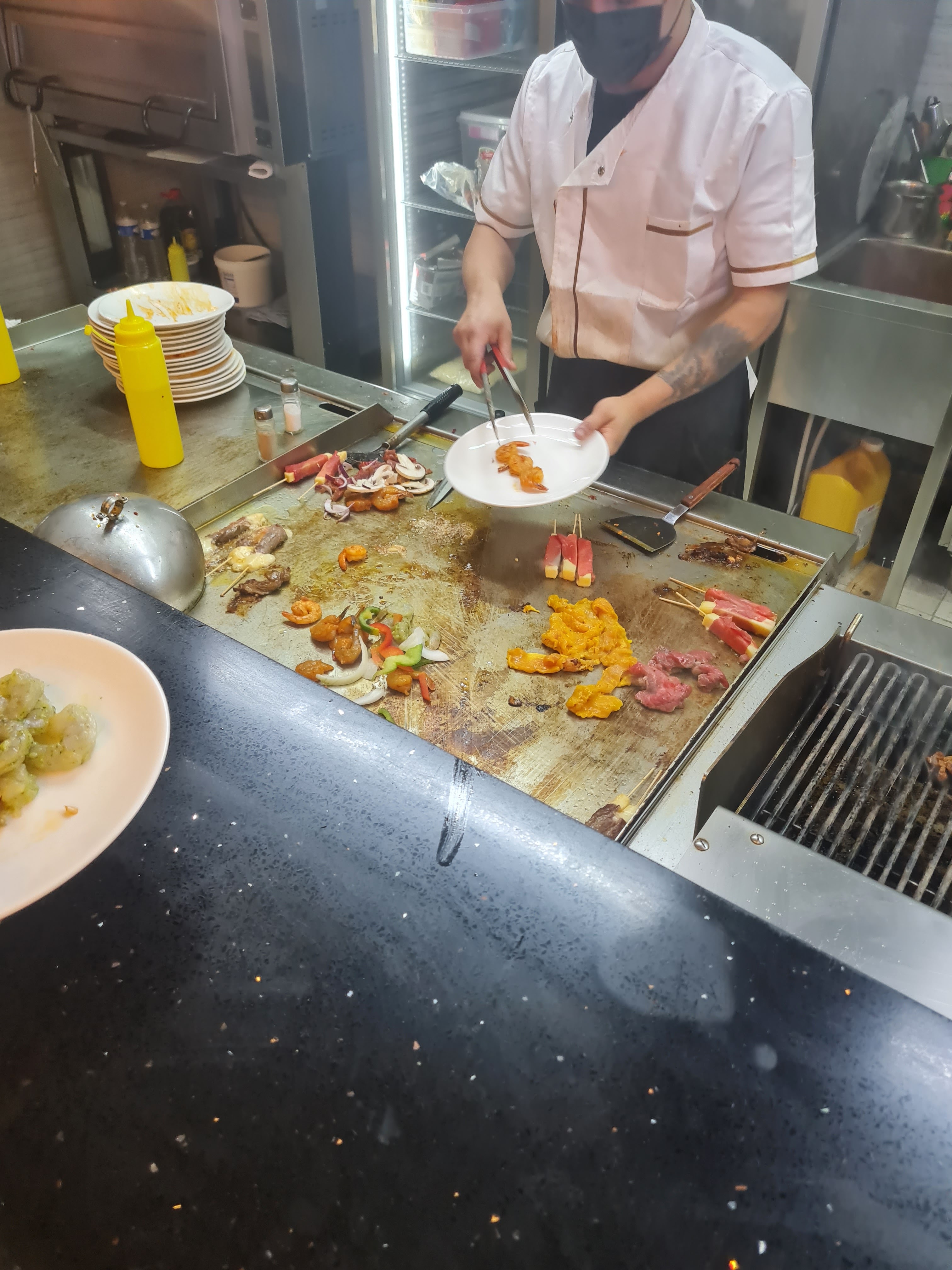 La décoration ne suffit pas à ouvrir un bon restaurant… Ici la nourriture n’est pas fraîche, sans goût et questionnable (crevettes avec une odeur d’urine), les cuisiniers tirent la tronche ce qui n’est pas agréable et font griller viandes, légumes et poissons sur la même plaque. La vaisselle n’est également pas bien nettoyée. Je ne recommande vraiment pas.