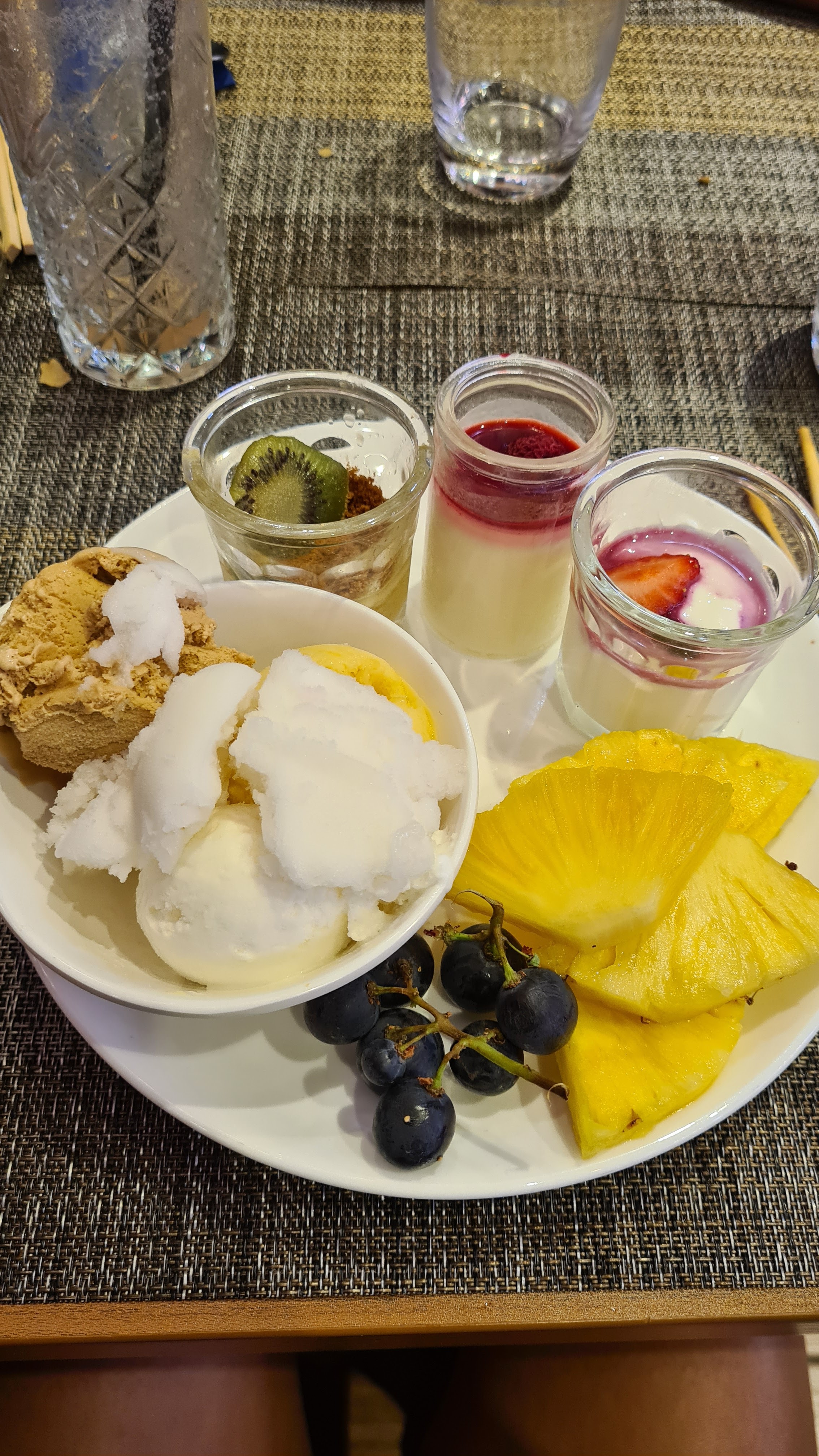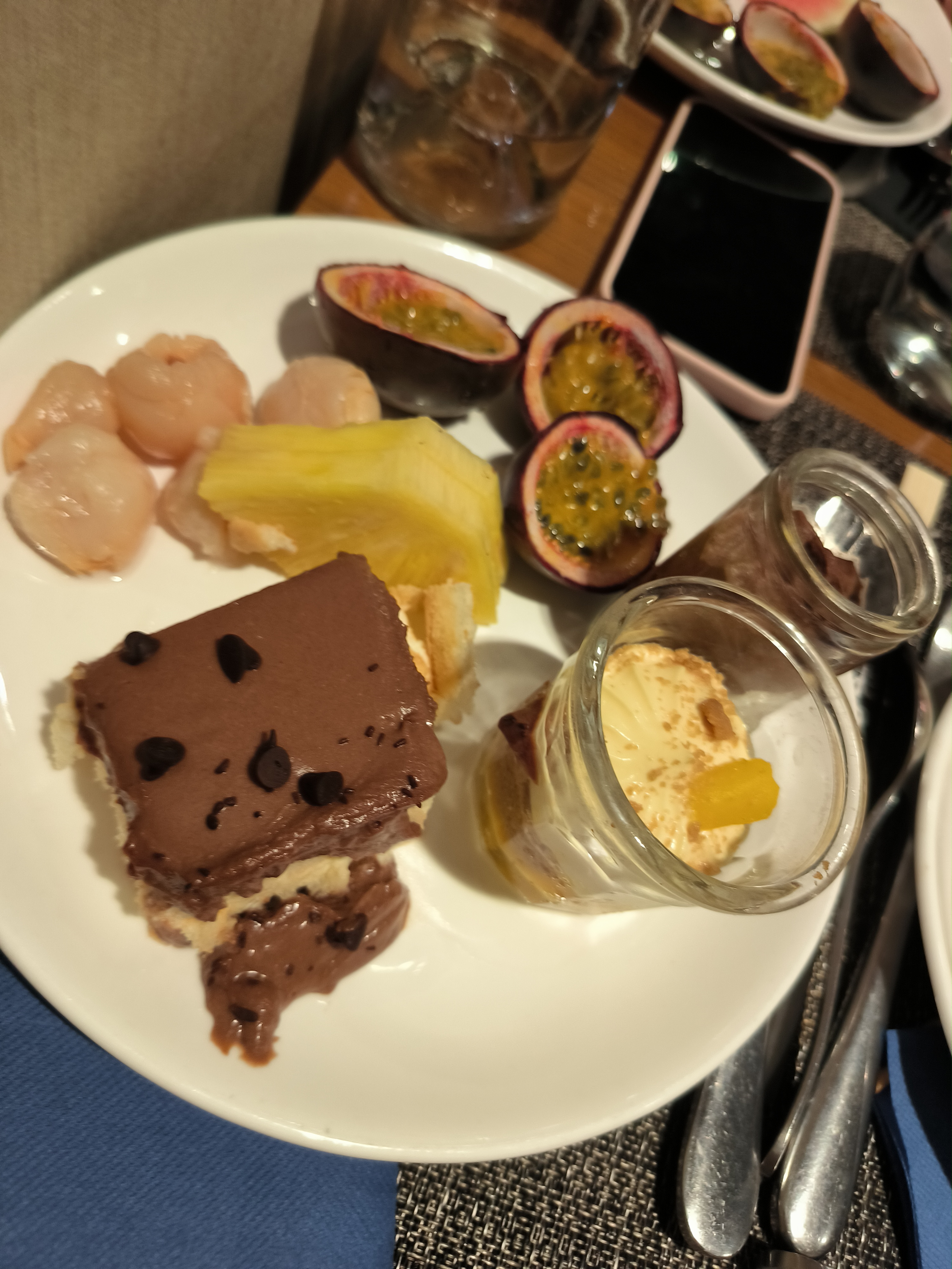 Il y’a beaucoup de choix de plats et ils sont de bonnes qualités. Les desserts et fruits sont délicieux. Par contre les cocktails sont pas incroyables pour le prix Je recommande