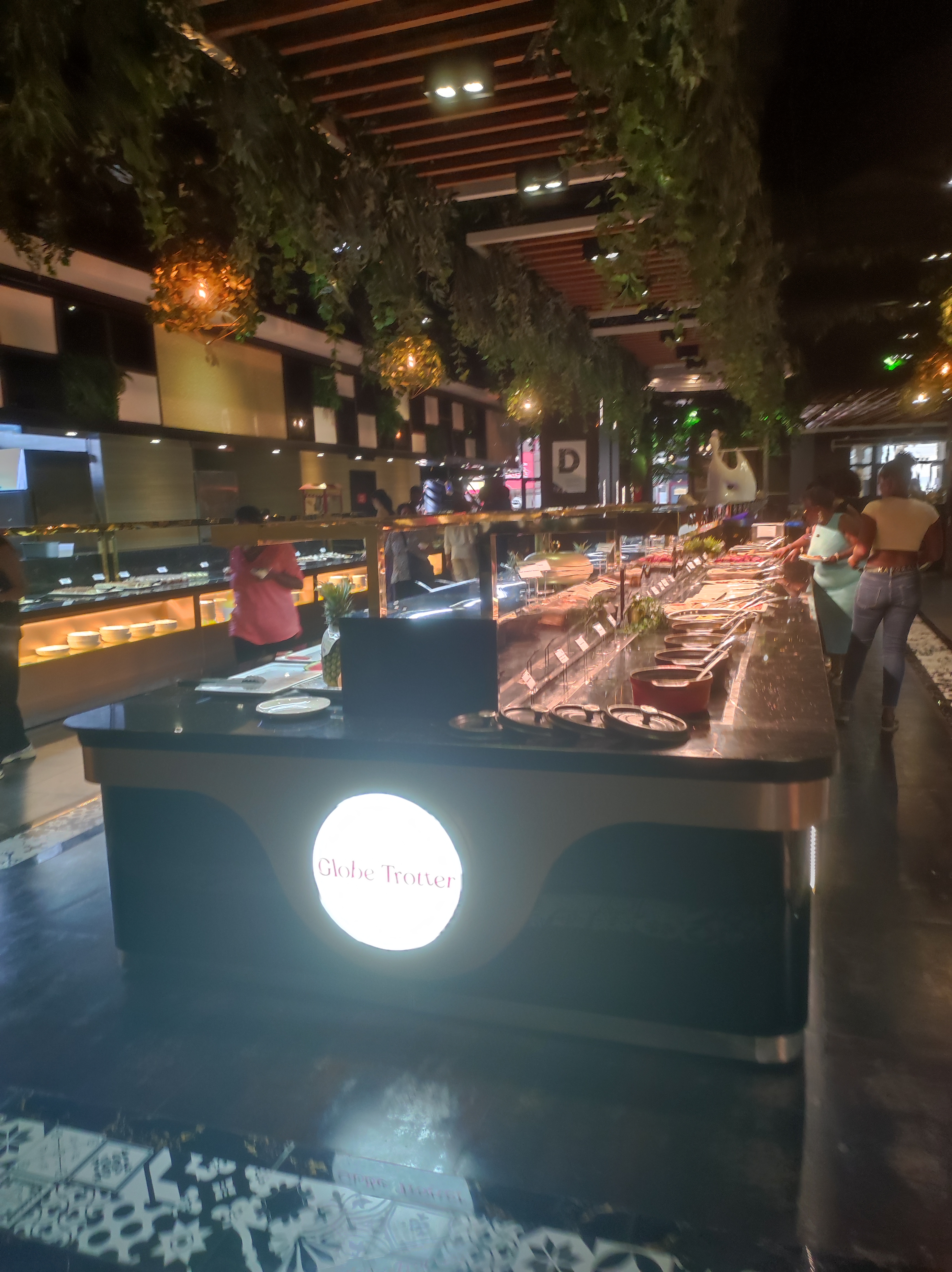 Nous avons récemment dîné au Globe Trotter, et cela a été une expérience culinaire vraiment agréable.Jusqu'à présent, c'était l'une des meilleures expériences que nous ayons eues dans un restaurant à volonté. La première fois que nous y sommes allés, c'était pendant les fêtes de fin d'année, et nous avons été séduits par la variété des plats proposés, disposés sur plusieurs buffets magnifiquement présentés. Nous avons décidé d'y retourner une deuxième fois, craignant qu'il n'y ait moins d'options que lors de notre visite pendant les fêtes. Bien que quelques options aient effectivement manqué, ce n'était rien de bien méchant. Ce qui m'a particulièrement enchanté, c'est la diversité des options offertes. Bien que je ne m'attendais pas à trouver des sushis ou des makis exceptionnels, j'ai été agréablement surpris par la variété de ceux proposés. Le restaurant regorgeait également de choix de poissons et de plats chauds, offrant une sélection véritablement impressionnante Dans l'ensemble, notre expérience au Globe Trotter a été mémorable, et je recommande à quiconque de le visiter au moins une fois pour découvrir cette abondance de choix culinaires par eux-mêmes.
