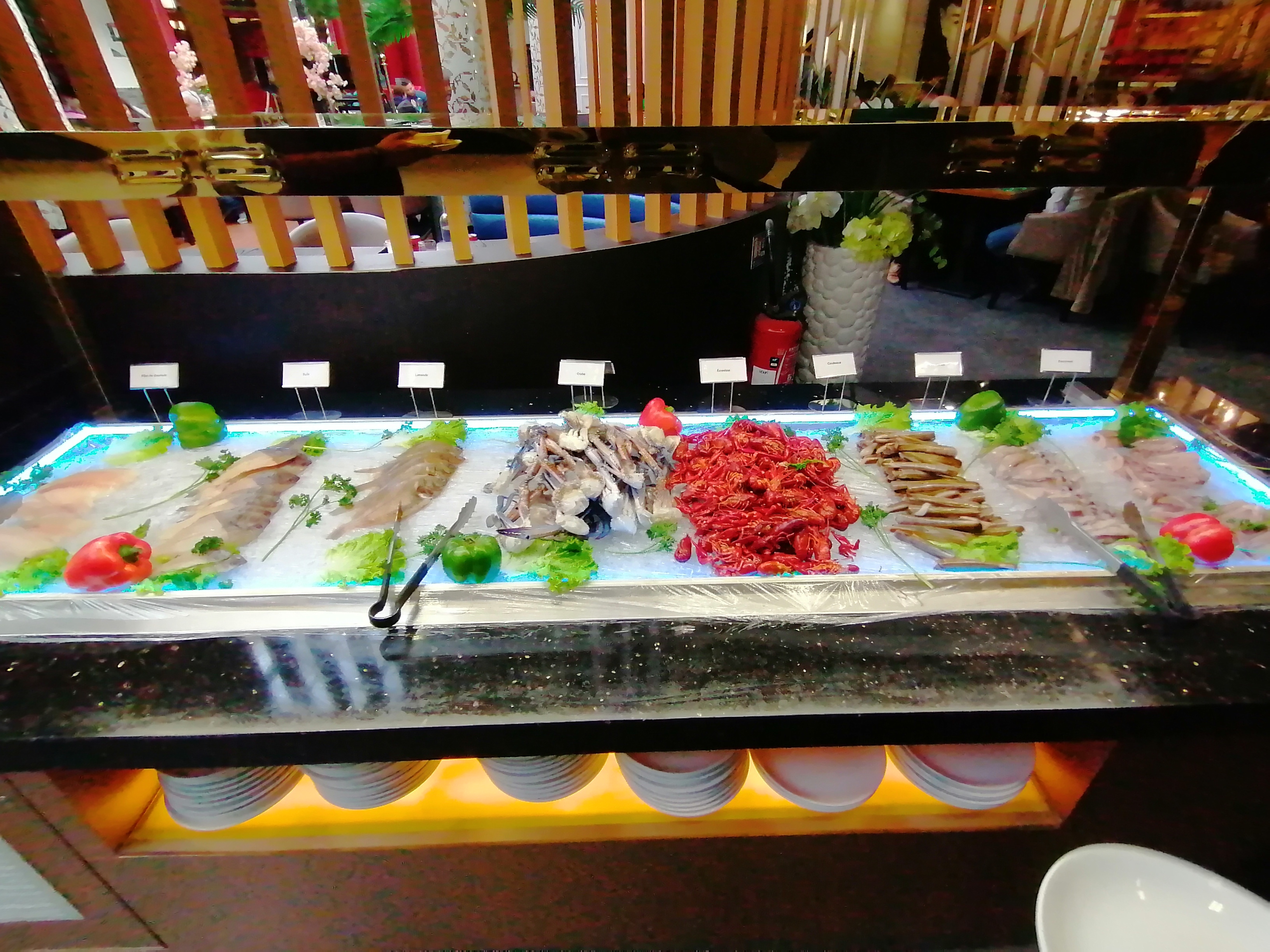 Le meilleur buffet d'Île de France. Plusieurs spécialités à un seul endroit: chinois, japonais, indien,...des fruits de mer, bcp de fruits et dessert... La déco est superbe