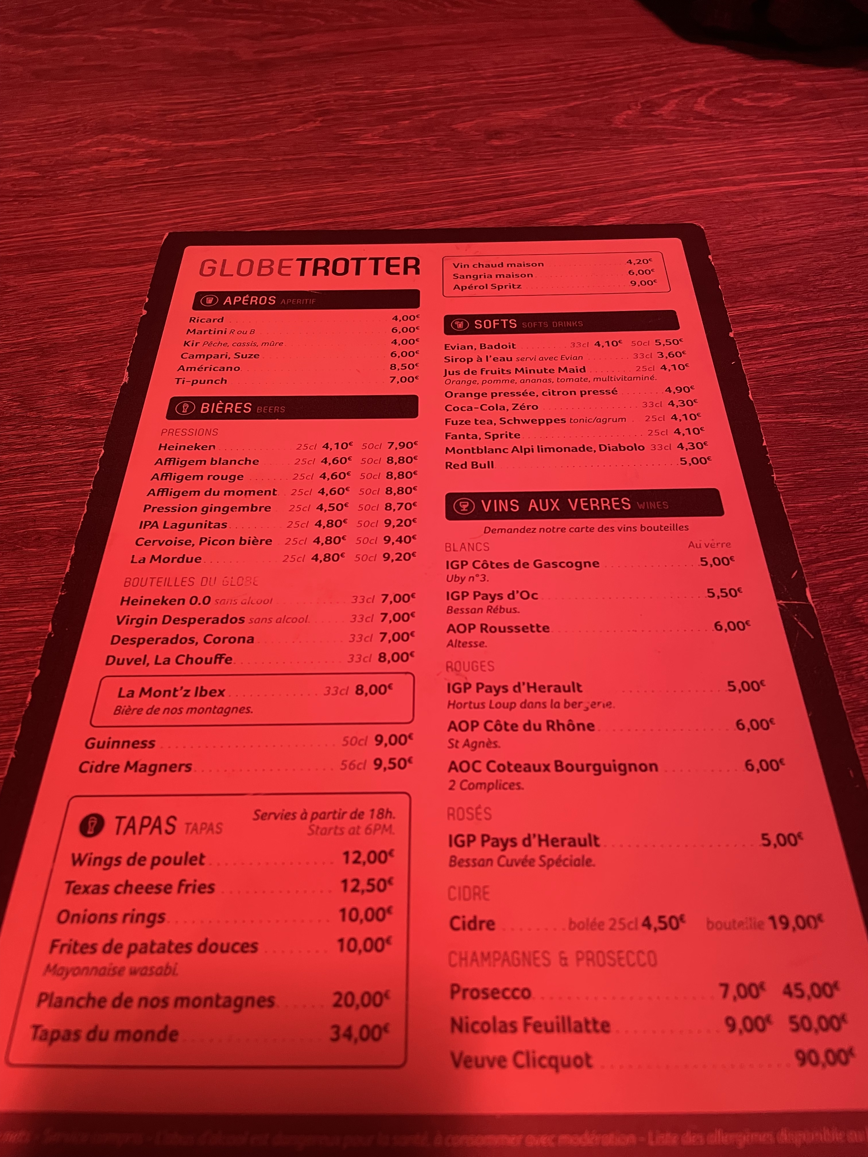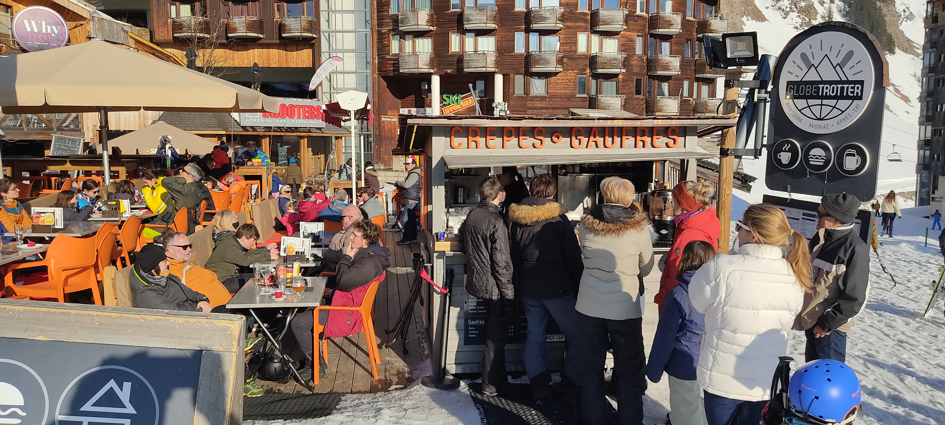 Je vais au globe trotteur chaque année à chaque fois que je suis sur Avo, plusieurs fois par séjour. Que ce soit pour boire un coup à l’after-ski ou pour déjeuner à l’intérieur ou à l’extérieur le Globe-trotter tient toujours ses promesses. Les plats sont simples et bons, le cadre est sympa, le service se fait toute la journée (gros plus)… et mention spéciale au serveur Alex qui est là depuis des années et qui est toujours ultra agréable et drôle. Il fait parti des murs et c’est grâce à des personnages comme lui qu’on a envie d’y revenir. Longue vie au globe !