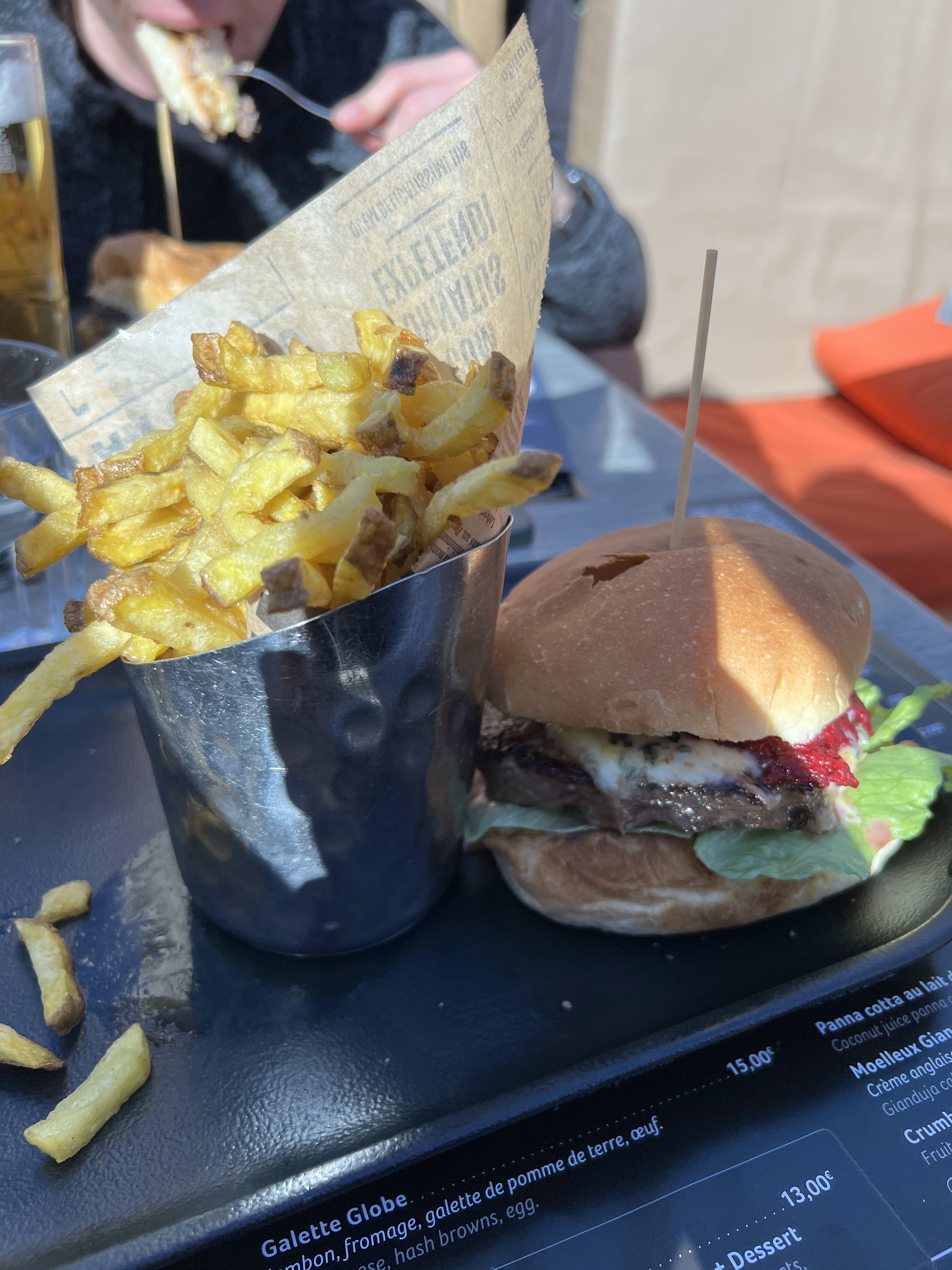 Déjeuner en terrasse, au soleil... Burger frais et frites maison, impeccable ! Bon rapport qualité prix !