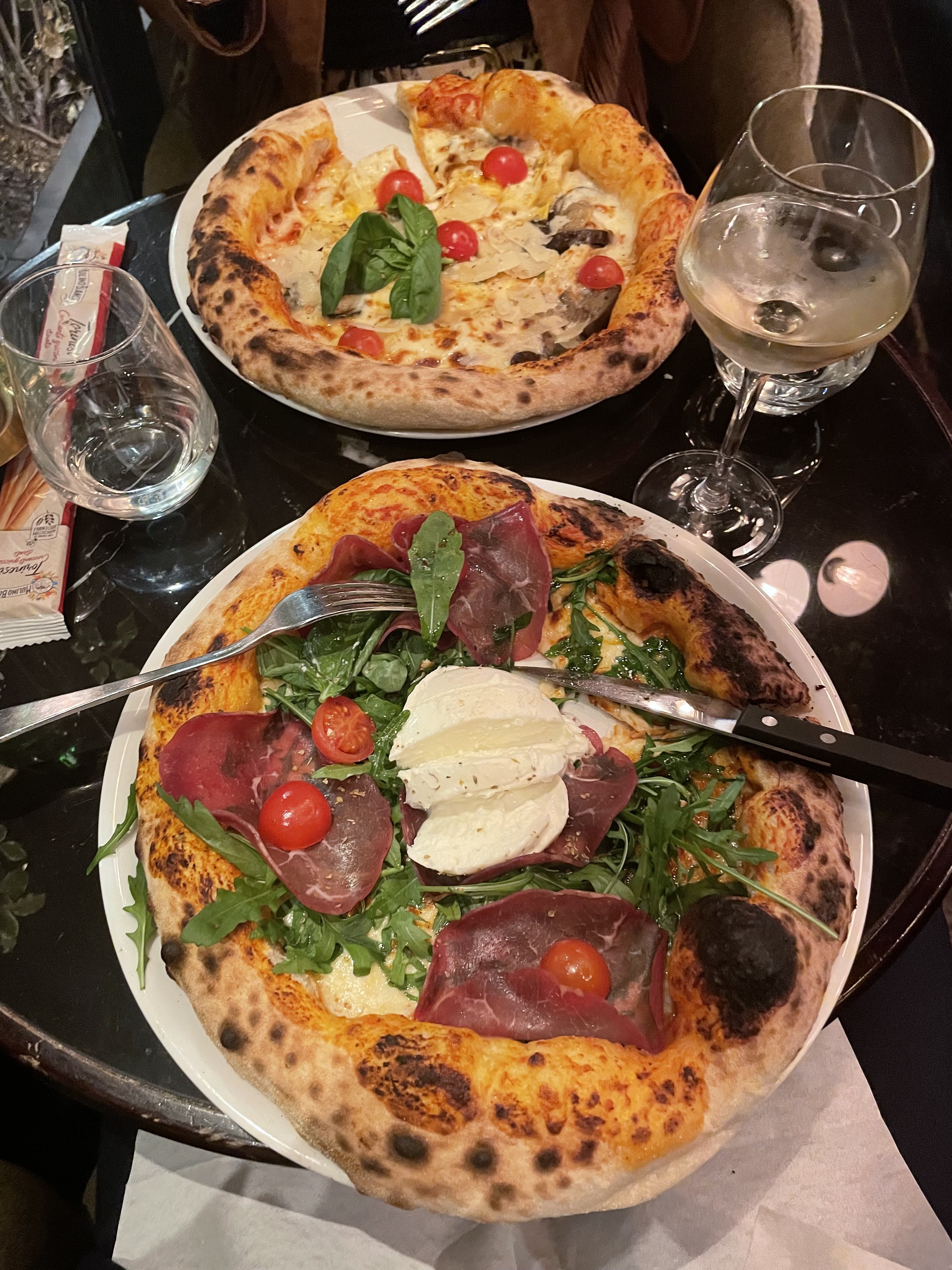 Pizza bresaola avec une pâte un peu trop dur à mon goût Service très sympa dans un cadre lumineux !