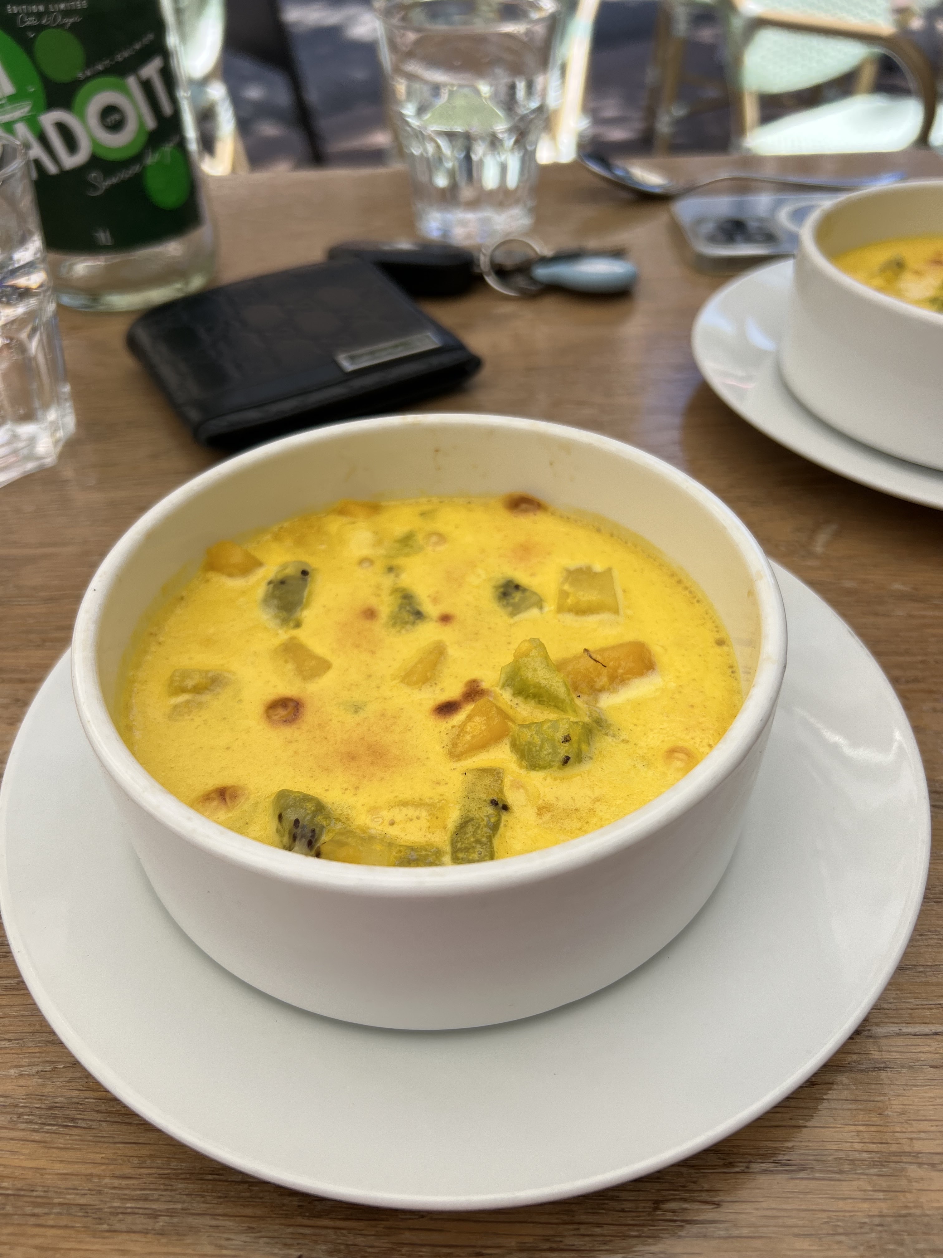 Le menu était exquis ! Salade Niçoise et un dessert de fruits gratinés. Délicieux! La terrasse est cosy et la table est comme neuve. Nous avons également trouvé le service très sympathique. J'ai même eu un tabouret pour mon sac. Les toilettes étaient également parfaitement propres. Nous serions ravis de revenir la prochaine fois. Merci.