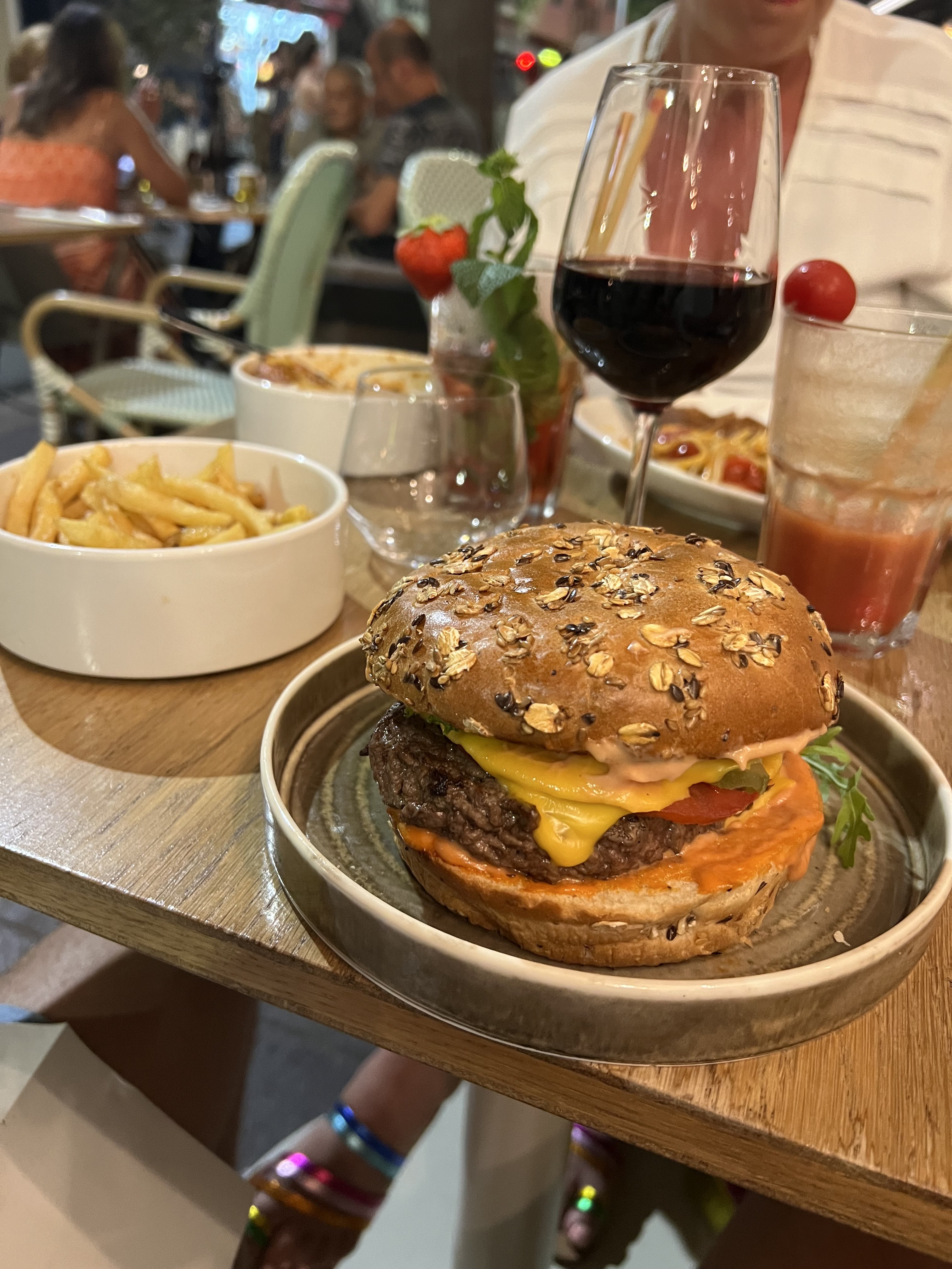 Restaurant situé sur la promenade intérieure de Juan les pins. Des portions énormes (surtout les pâtes) avec des prix honnêtes (en dessous de la moyenne française. Spaghetti à la tomate et à la burrata, légèrement non salés mais comestibles. Délicieux burger avec des frites ! Le service était un peu lent (nous avons attendu 45 minutes).