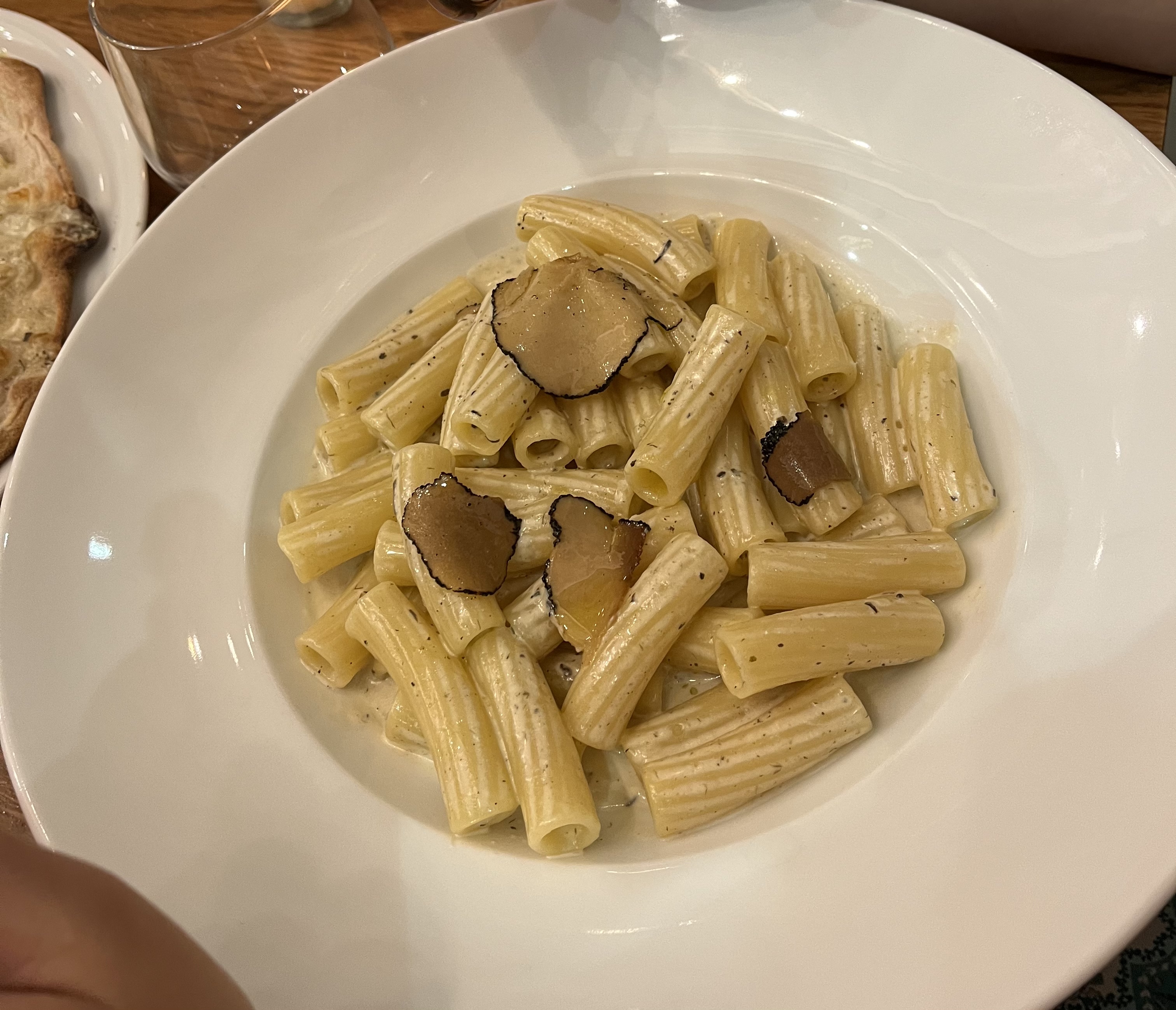 Endroit agréable et accueillant, malheureusement la nourriture était un peu décevante. Nous avons commandé une pizza (assez bonne), 2 pâtes : angera correcte, cacio e pepe scandaleux, c'était des pâtes à la crème, il manquait du sel, il n'y avait rien de cacio ni de poivre. Cependant, le personnel était très efficace et serviable