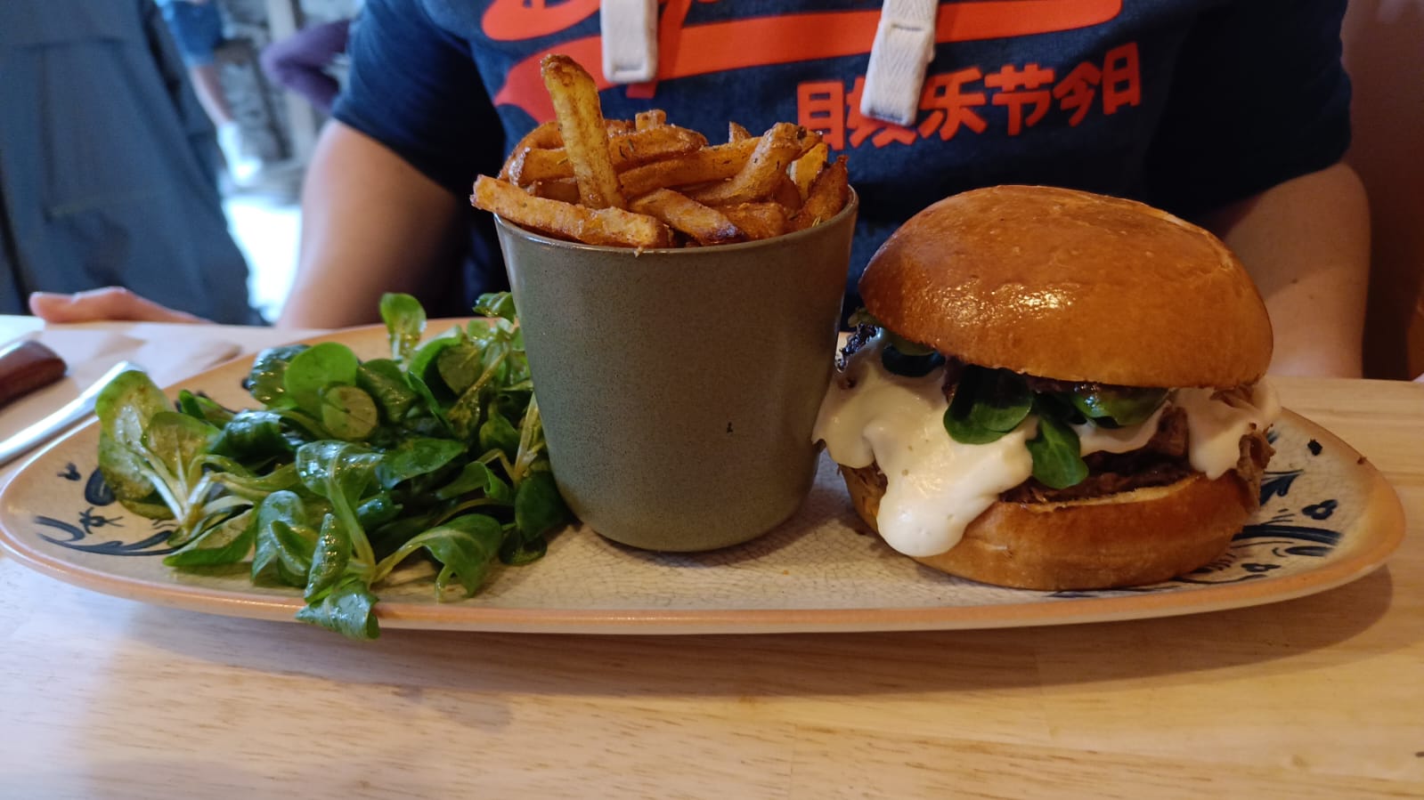 Accueil chaleureux, déco épuré,vsalle lumineuse Burger gourmand et savoureux, dessert sympa... Bravo et bonne continuation !
