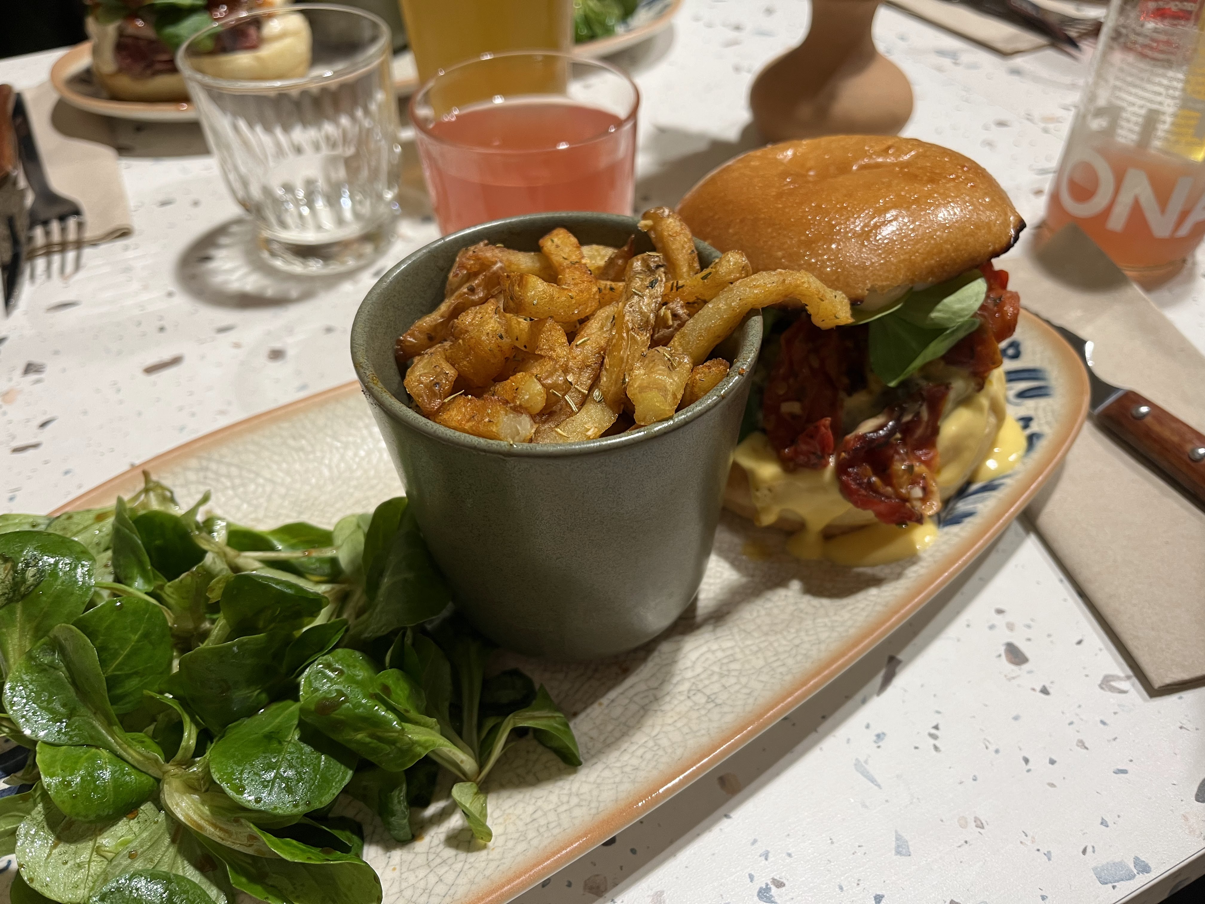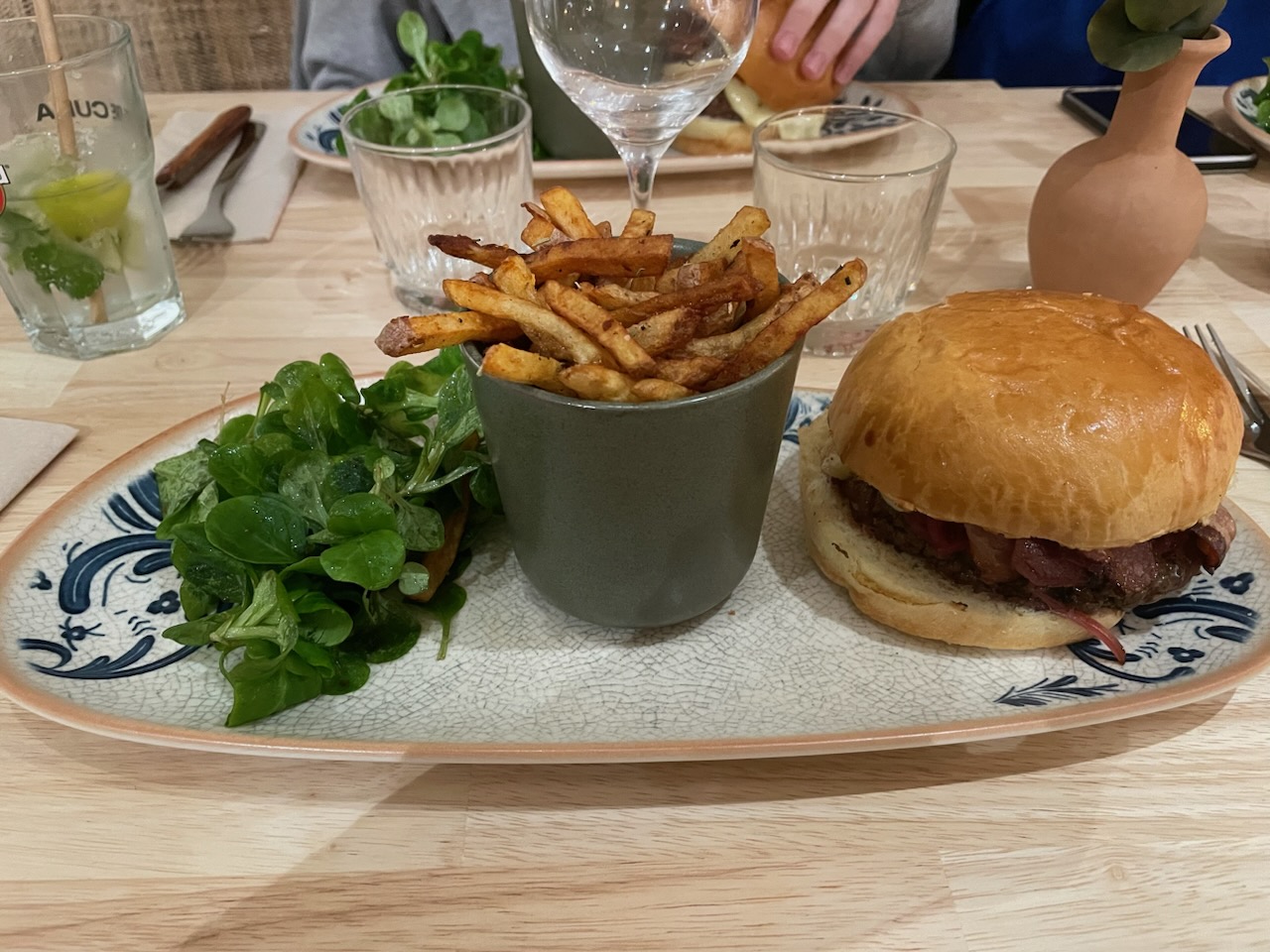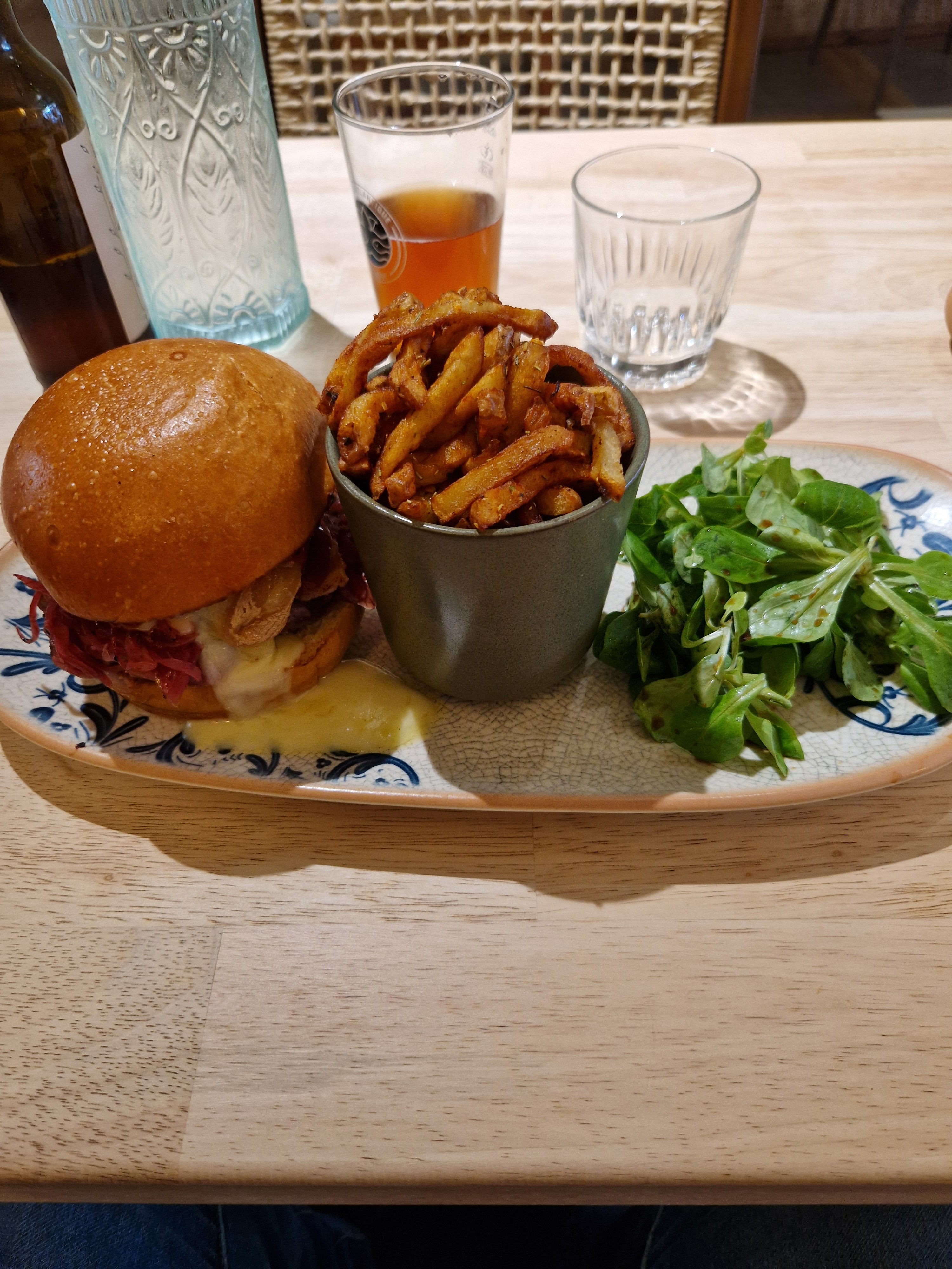 Belle décoration du restaurant et très bon repas, enfin un burger avec un pain maison léger