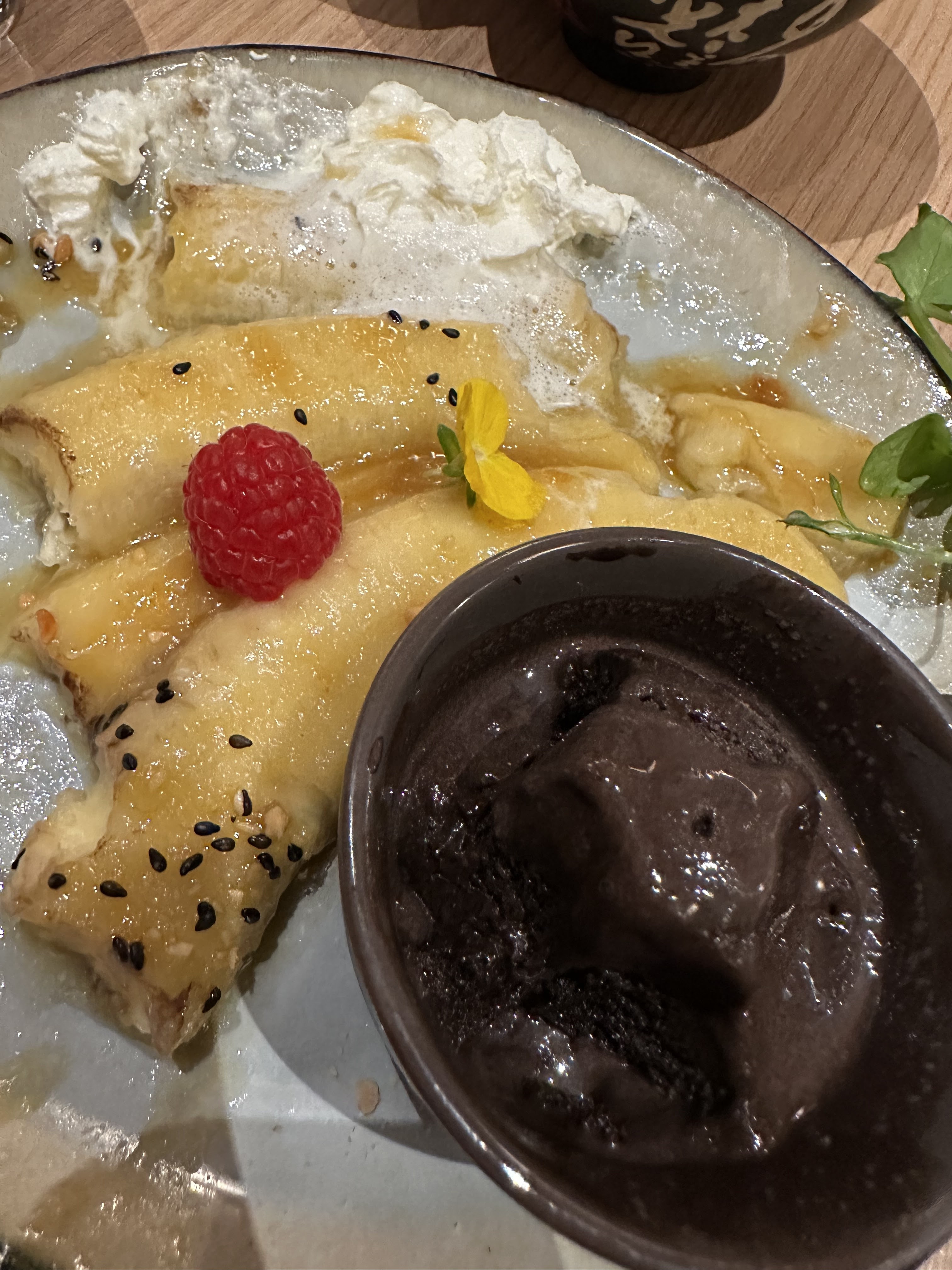 Très jolie déco et personnel efficace. Seul bémol, une importante quantité de coriandre fraîche dans un plat a un peu gâché le plaisir de mes filles. Il faudrait juste que cela soit bien indiqué sur le menu car certaines personnes sont totalement rebutées par la coriandre. Sinon, tout était parfait !