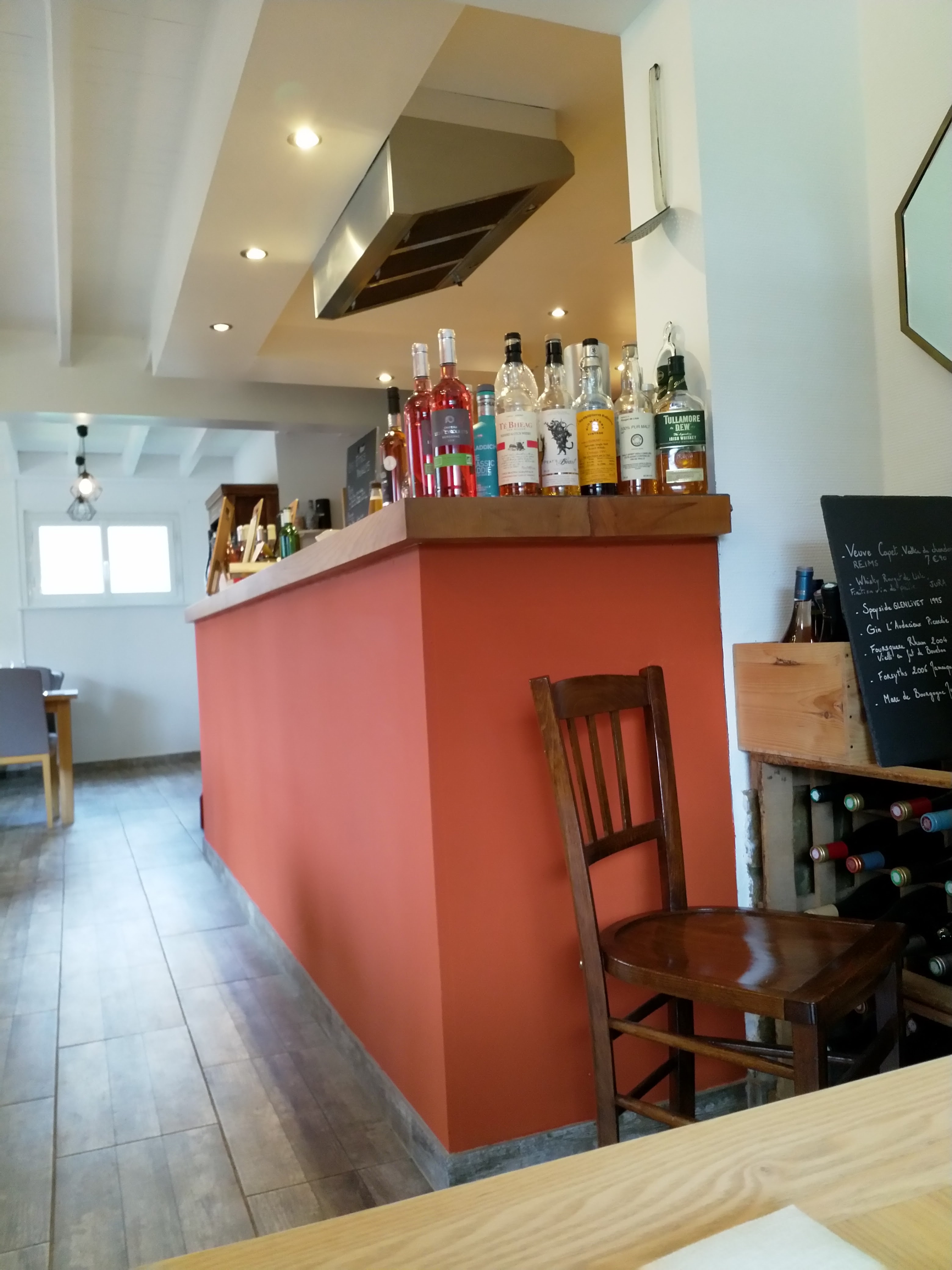 Une maison transformée en restaurant d'une vingtaine de couverts, cuisine ouverte sur la salle. Au choix 3 entrées, 3 plats (viande, poisson, végétal), 3 à 4 desserts, tout est fait sur place (même l'eau!) avec des produits frais, devant vous. De la vraie cuisine, des produits goûteux suffisamment copieux, un chef et une responsable de salle qui ont du travail mais très agréables. Entrées et desserts à 10€, plats à 22€, le tout dans un menu à 36€ . Une jolie carte de vins.