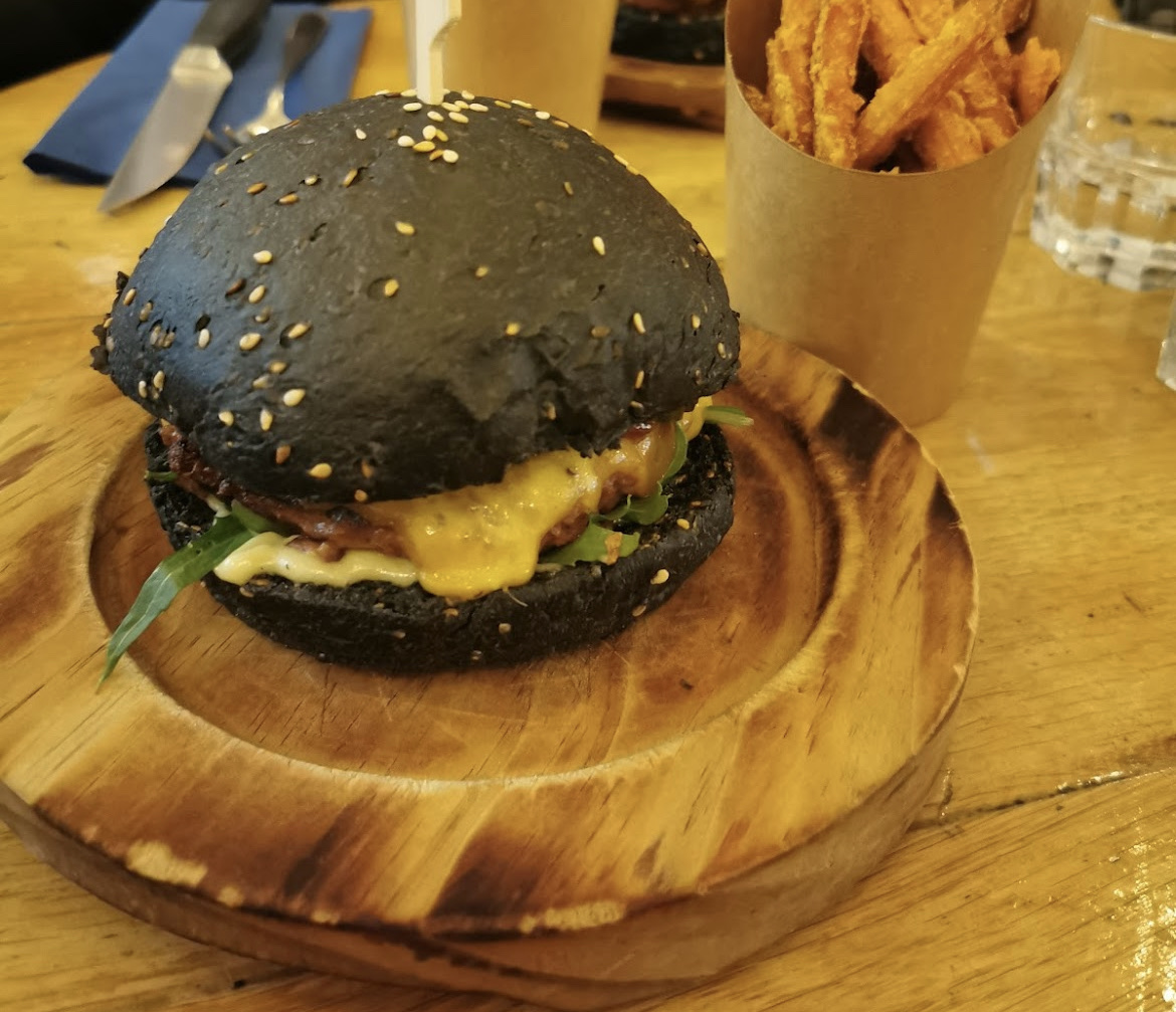 Le burger au pain noir un régal. Le pain est vraiment succulent, c'est le gros point fort. Un peu plus de frites pour accompagner le burger seraient les bienvenues cependant. Ambiance chaleureuse, serveurs très sympas.