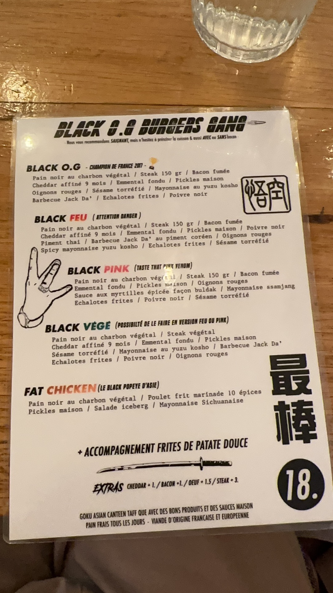 Excellent accueil aussi bien de la part du personnel que du patron, cadre chaleureux et convivial respectant bien le thème asiatique du restaurant. Bon rapport qualité/prix ; le burger Black O.G. mérite amplement son titre et sa réputation. Une fois encore, le patron fut vraiment au top. À recommander !