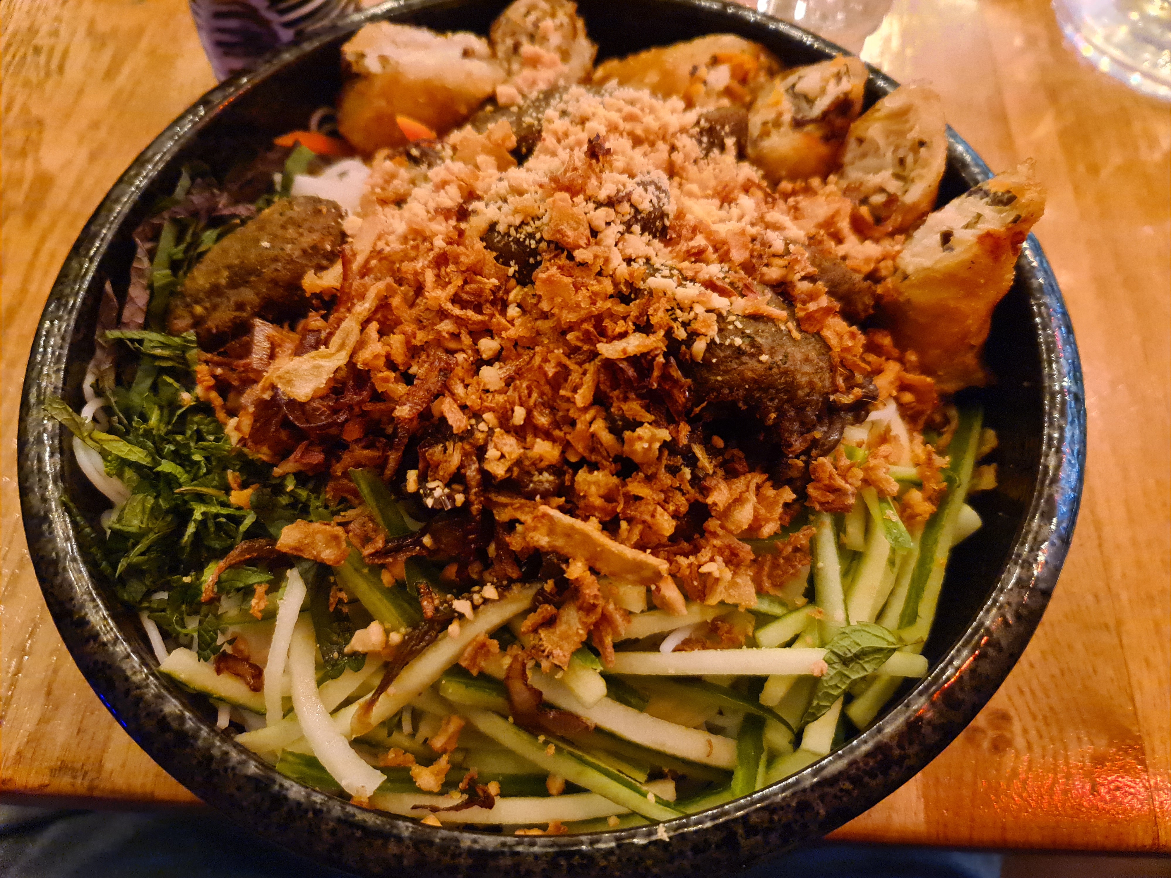 De promenade dimanche soir, je me suis arrêté manger sur leur terrasse, leur bo bun boeuf. Le plat était bon, bien présenté et le staff très sympathique. J’ai aussi pris un ice tea maison, un poil amer à la fin. Vous pouvez y aller sans crainte.