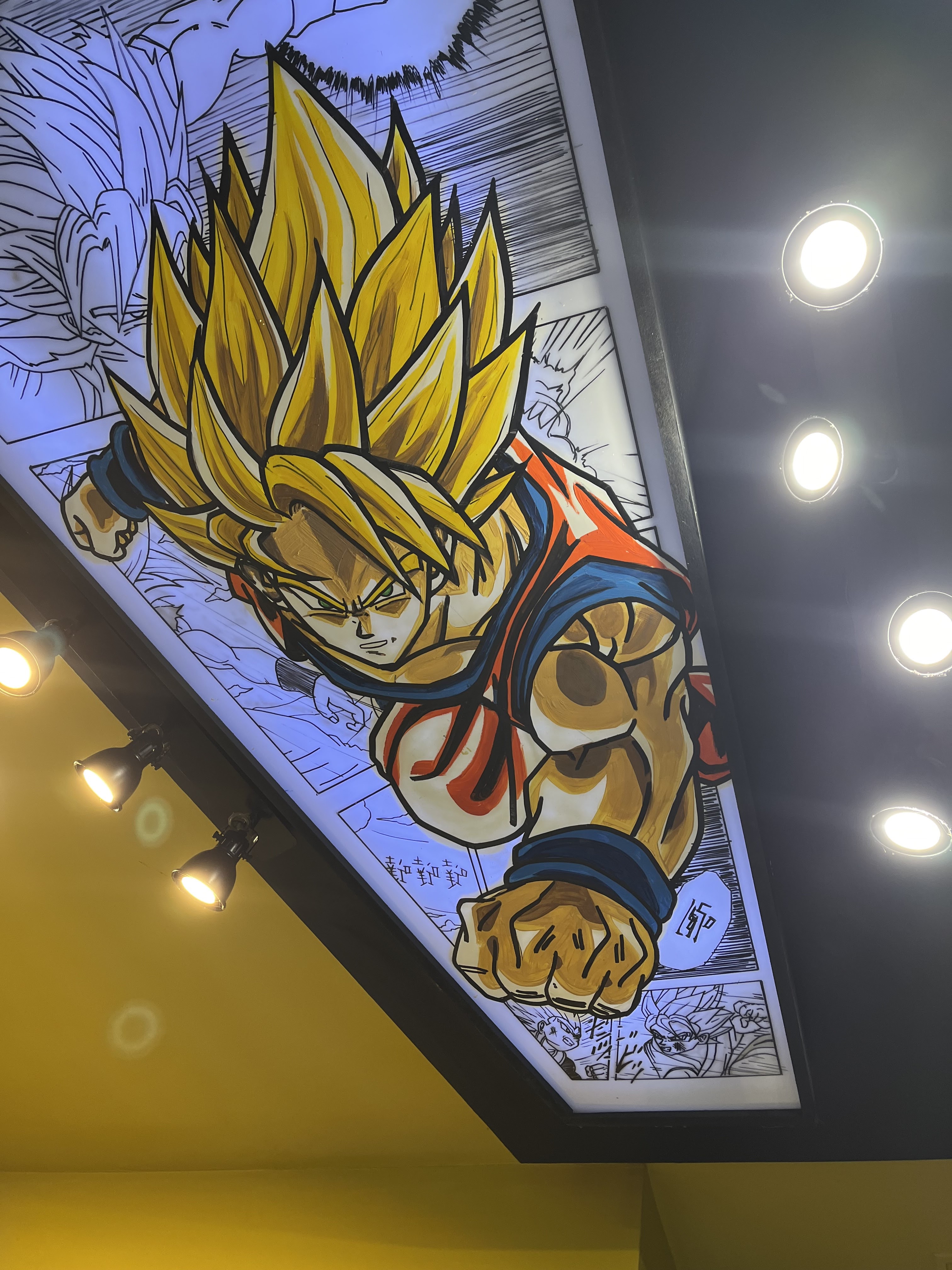 En tant que fan de Dragon Ball, c'est génial d'avoir des lieux comme celui-ci, la déco est magnifique, diffuser les épisodes de DBS est une superbe idée, et les menus sont super bons ! Gros plus, le personnel est super sympa, resto à faire absolument !