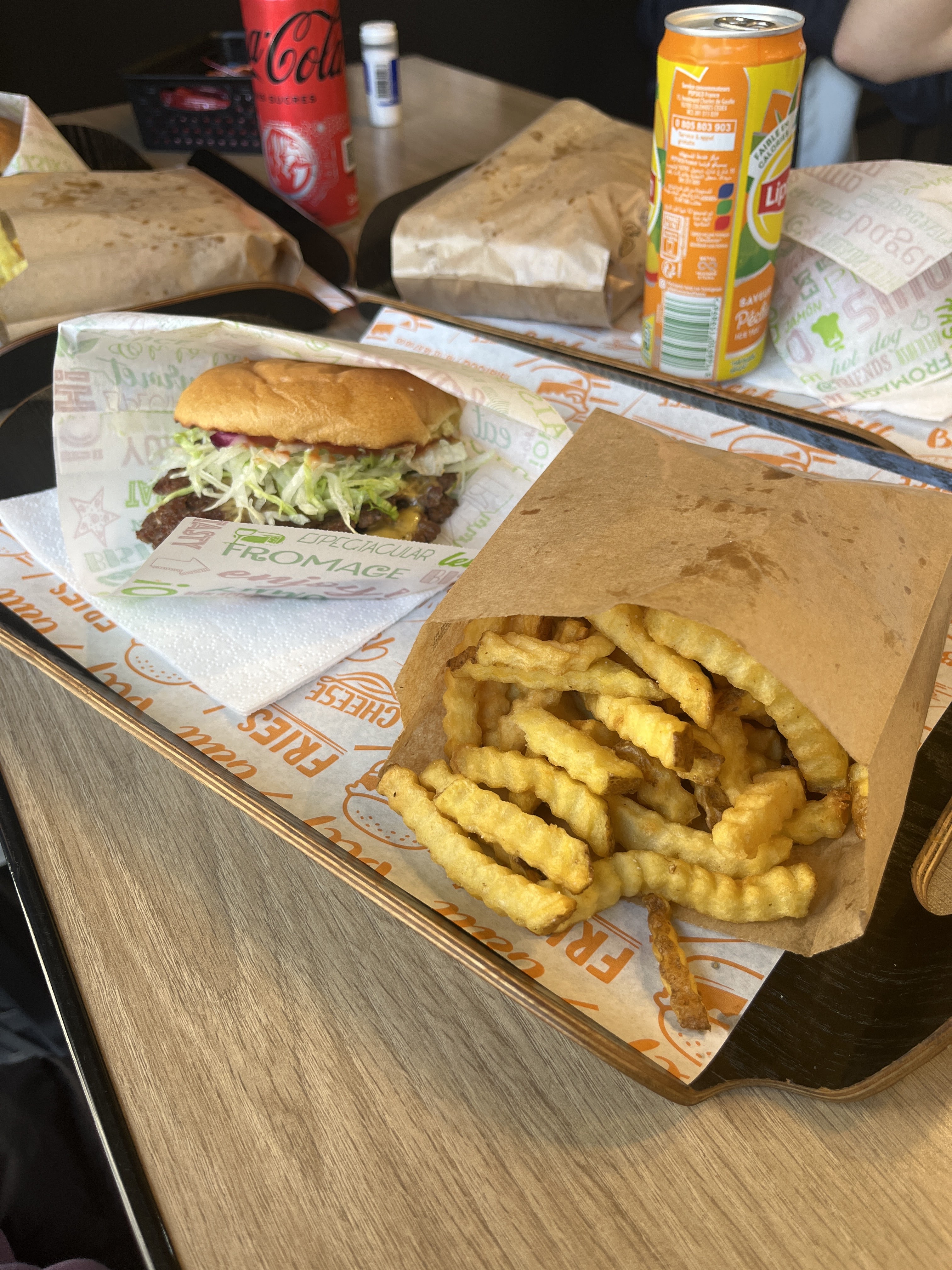 Bon smashed burger, comme un peu shake shack aux US. Mon ami a trouvé les burgers un peu petits et gras, je les trouve correct. Les frites sont bonnes. Les burgers étaient bien chauds après être rentrés chez nous. Menu autour de 11 euros avec frites et boisson : un peu cher pour moi, mais dans l’ensemble très correct. Dommage qu’il n’y ait pas de dessert maison proposé. Je reviendrai tester les autres recettes de burger !