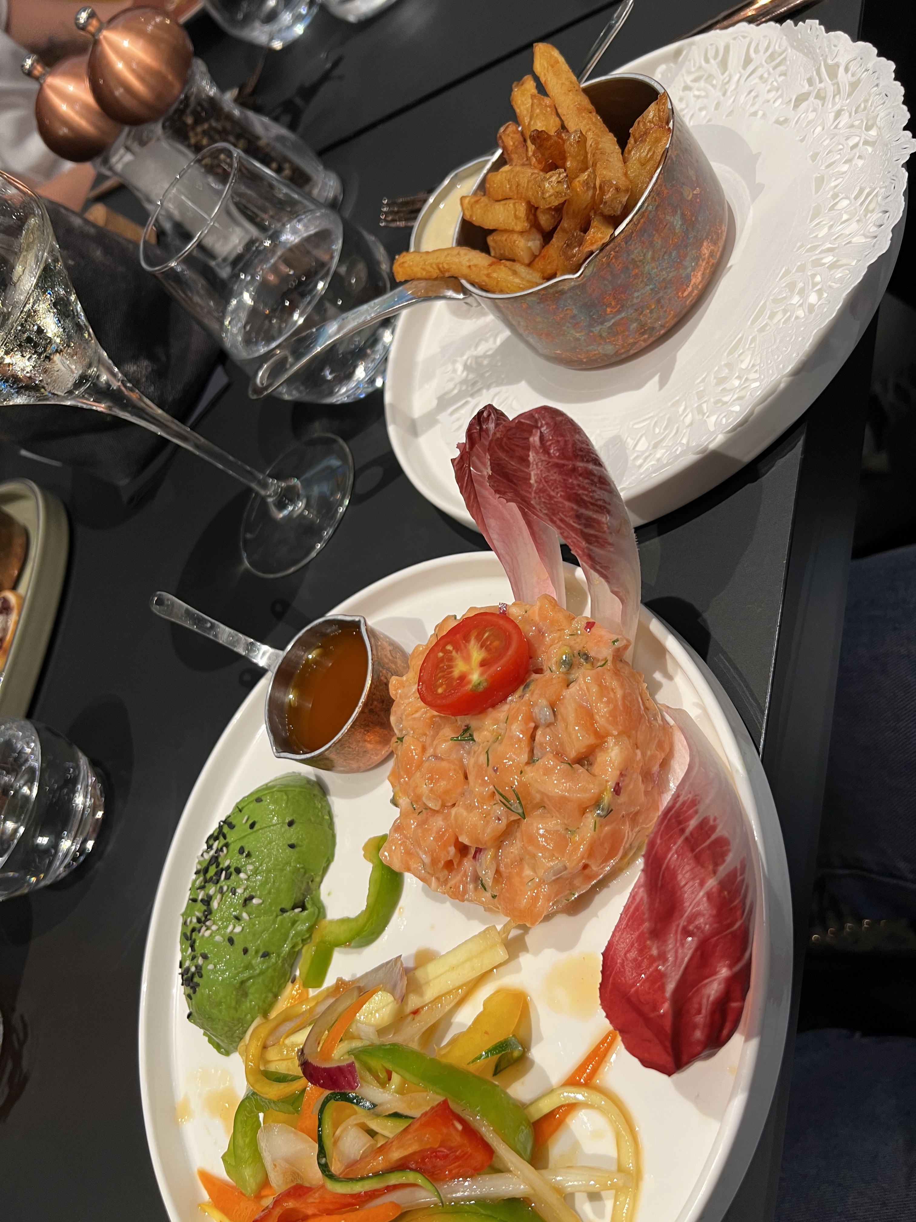 Un endroit incroyable, des cocktails beaucoup trop bons et beaux (j'ai culpabilisé en le buvant 😂), le repas,,,rien à dire un délice et le dessert pareil trop bon 😋