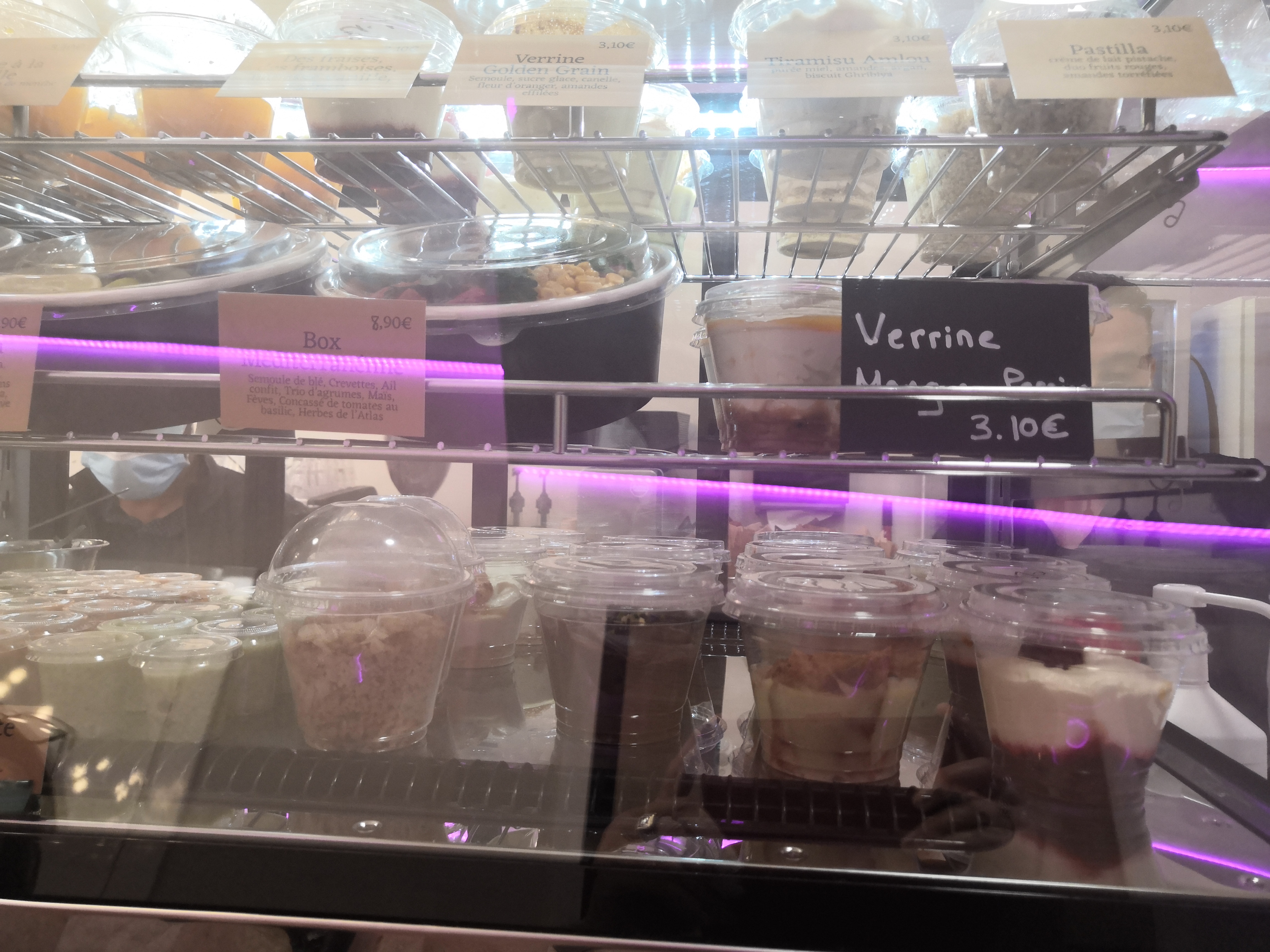 Original ! Comme des poke bowl mais avec du couscous. Environ 11,00 €. Parts très généreuses. Pâtisserie orientale très bonne.