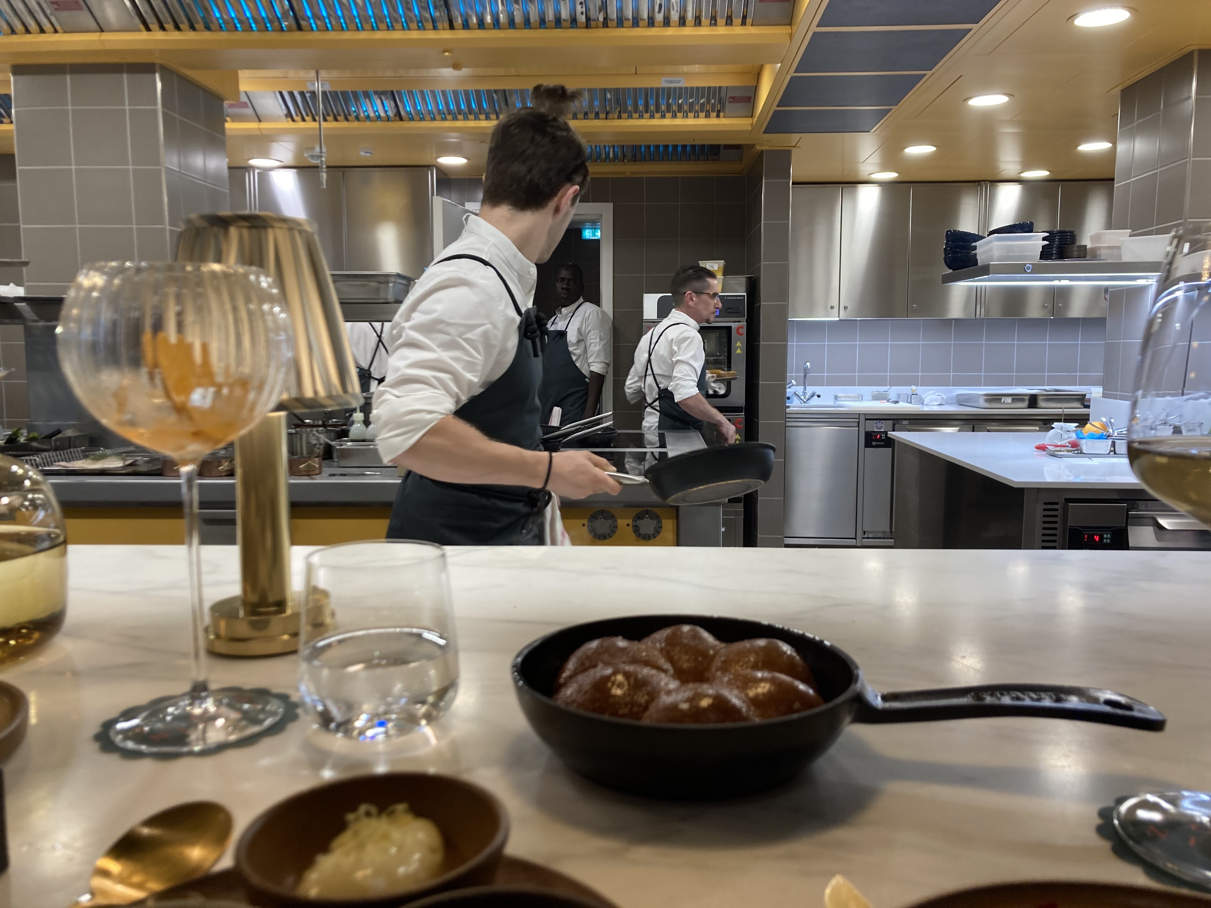 Nous avions beaucoup d’attente pour un restaurant d’une cheffe triplement étoilée, malheureusement hormis la nourriture (très bonne mais pas non plus exceptionnelle, et un poil cher pour ce que c’est), ce restaurant n’est pas à la hauteur. Musique trop forte pour tenir une conversation et impossibilité pour le staff de la baisser (???) malgré plusieurs demandes. Notre serveuse était dévouée et gentille, malheureusement elle a fait une erreur dans notre commande, nous avons donc dû manger en deux temps, les plats envoyés ne pouvant pas être maintenus au chaud. Une erreur qui peut arriver mais dont la gestion aurait dû être meilleure dans ce genre d’établissement. Responsable inutile et pas du tout attentif à la gestion de sa salle. Beaucoup de staff clairement débutant et enchaînements pas encore très fluides.