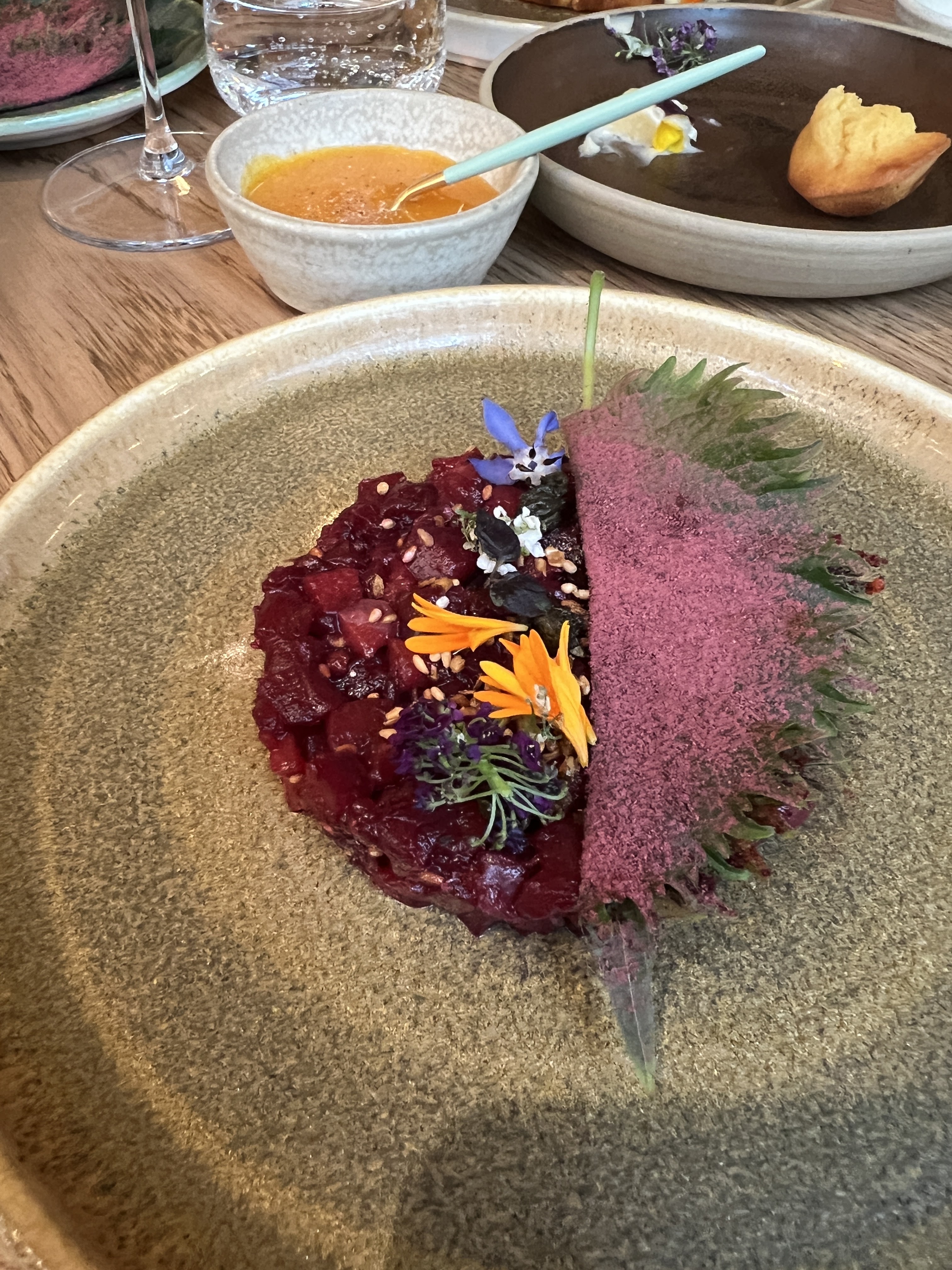 Quelle deception ! Le restaurant est magnifique et le service agreable, mais en cuisine ca ne suit pas du tout. Le comble quand on sait que ce restaurant appartient à une cheffe de renoméeondiale. Les plats sont tres esthetiques mais les saveurs sont decevantes. Fade, incipide, avec parfois de associations de saveurs sans interet. Je n’y reviendrais pas !