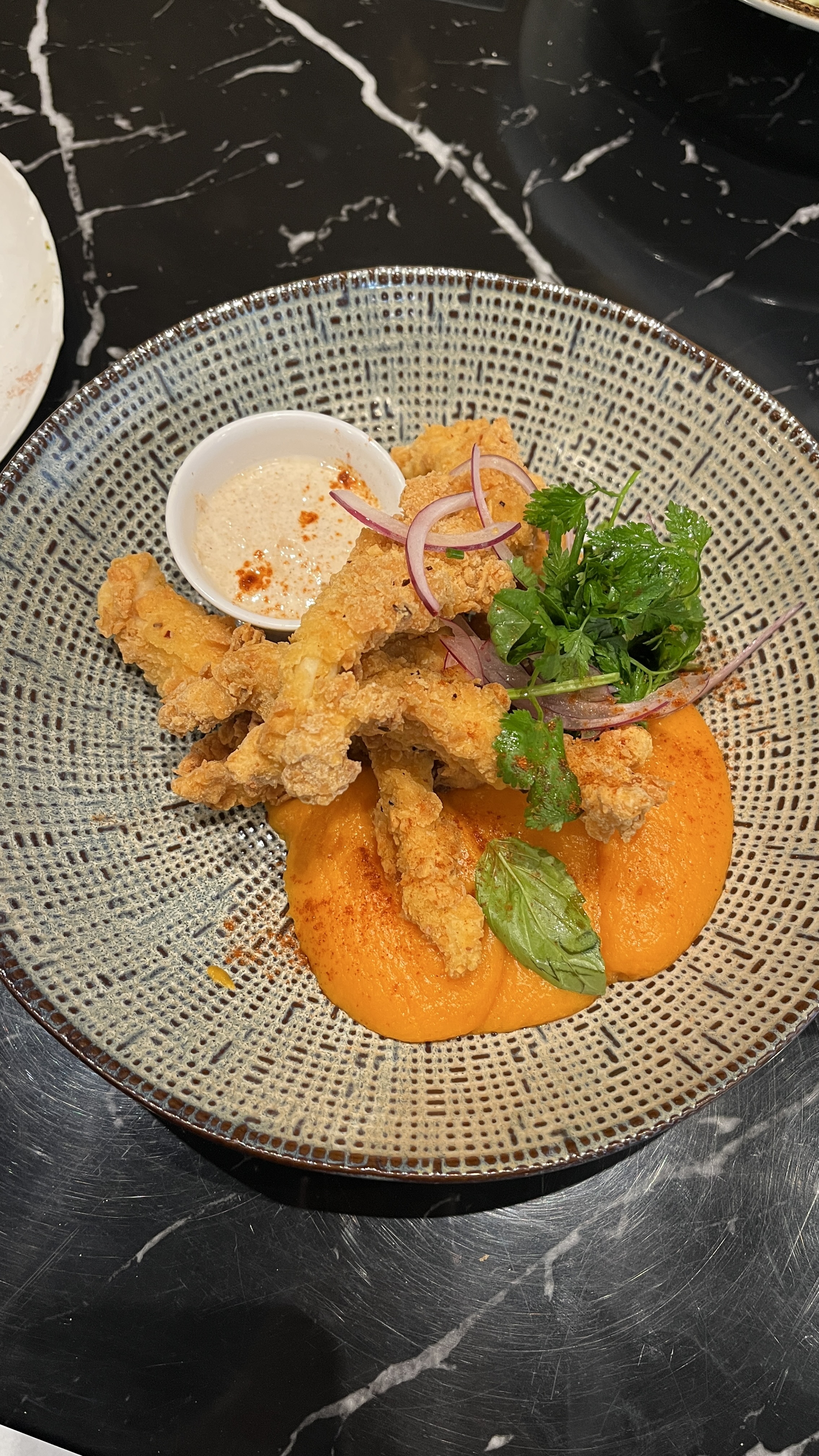 Nourriture délicieuse et hospitalité encore meilleure! Tout, de l'accueil au dessert, était impeccable, j'y retournerais certainement encore (et encore) et je le recommanderais à tous ceux qui recherchent une délicieuse cuisine fusion dans un environnement chaleureux, accueillant et chic.