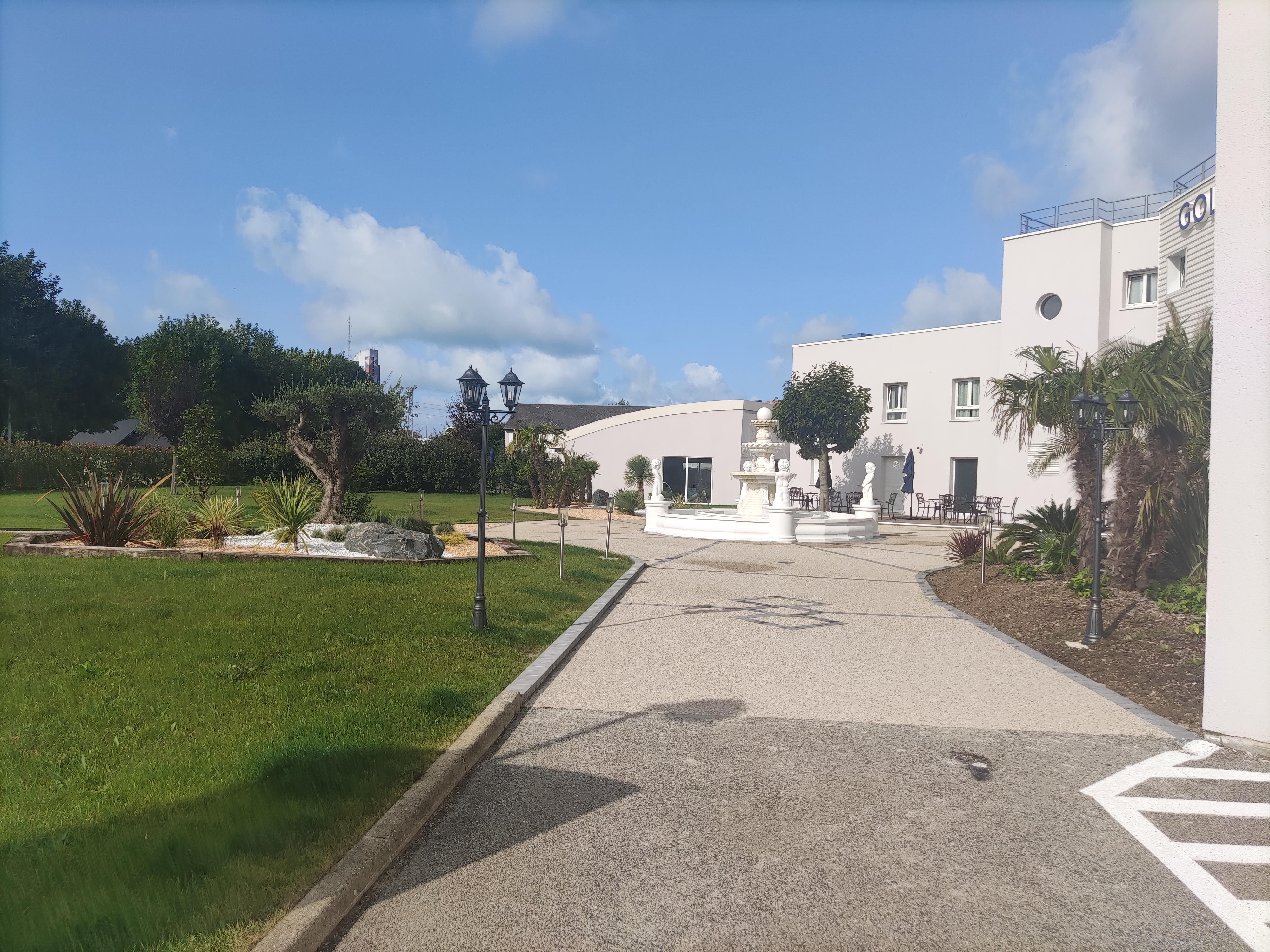 Dès l'arrivée on est agréablement surpris par la fontaine, une terrasse face à cette fontaine permet de prendre un café ou autres consommations. De l'accueil jusqu'au départ, tout a été parfait, le personnel est très efficace et sympathique, l'hôtel est neuf et bien entretenu, le petit déjeuner très varié. On y retournera rapidement.
