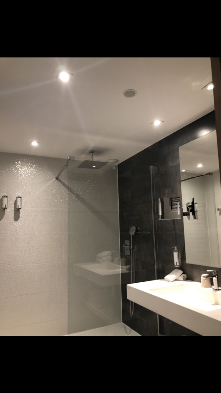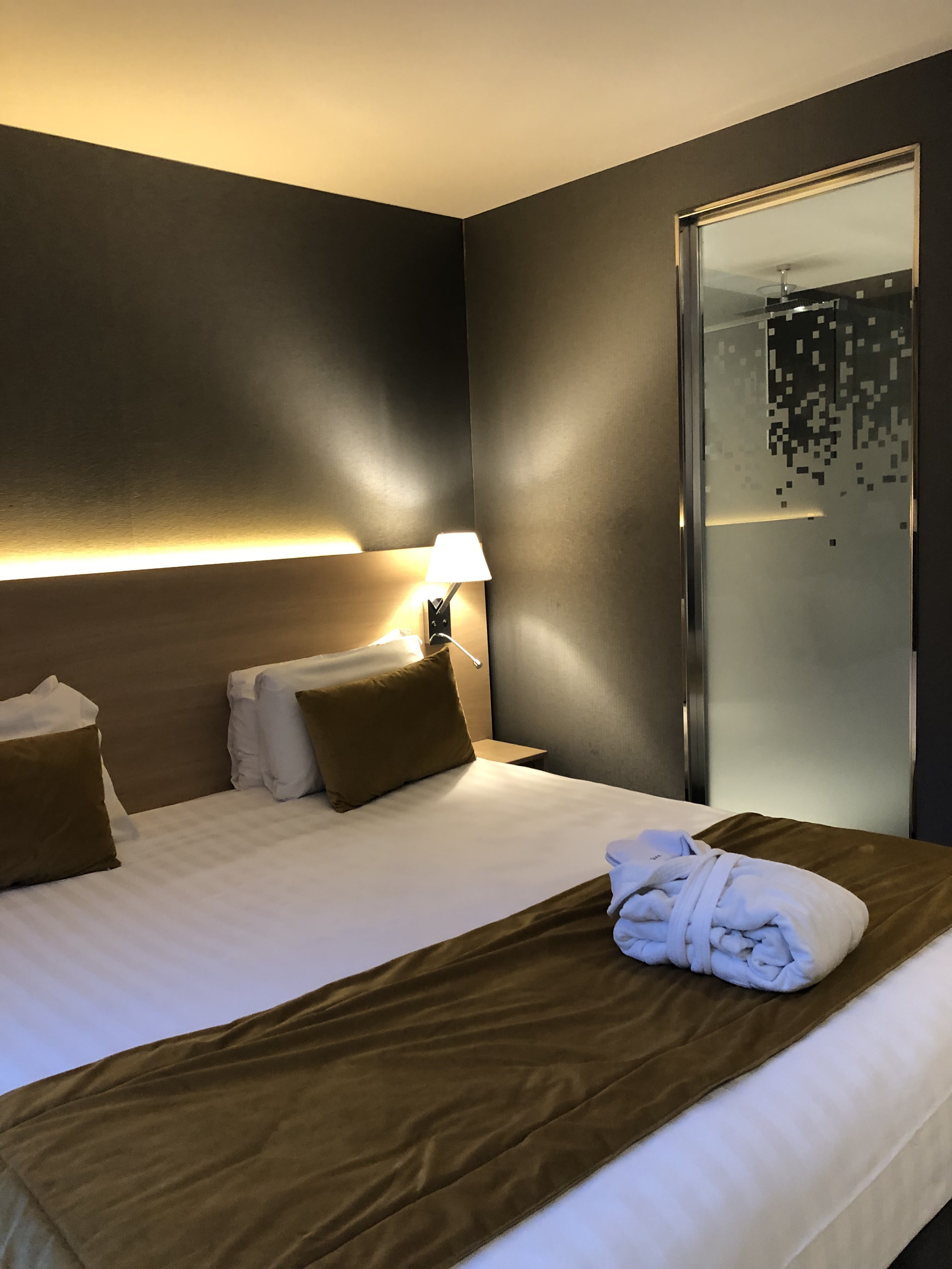 J'y ai séjourné 2 fois en 1 mois. Très bon accueil, chambre propre et très confortable. Douche à l'italienne, sono dans la salle de bain. Mini bar avec 2 bouteilles d'eau. Petit déjeuner un peu cher car je mange peu le matin. Pour les gourmand il est très copieux. Peut être proposer en plus 1 petit déjeuner moins cher avec juste 1 boisson chaude et des tartines L'espace spa est très agréable.