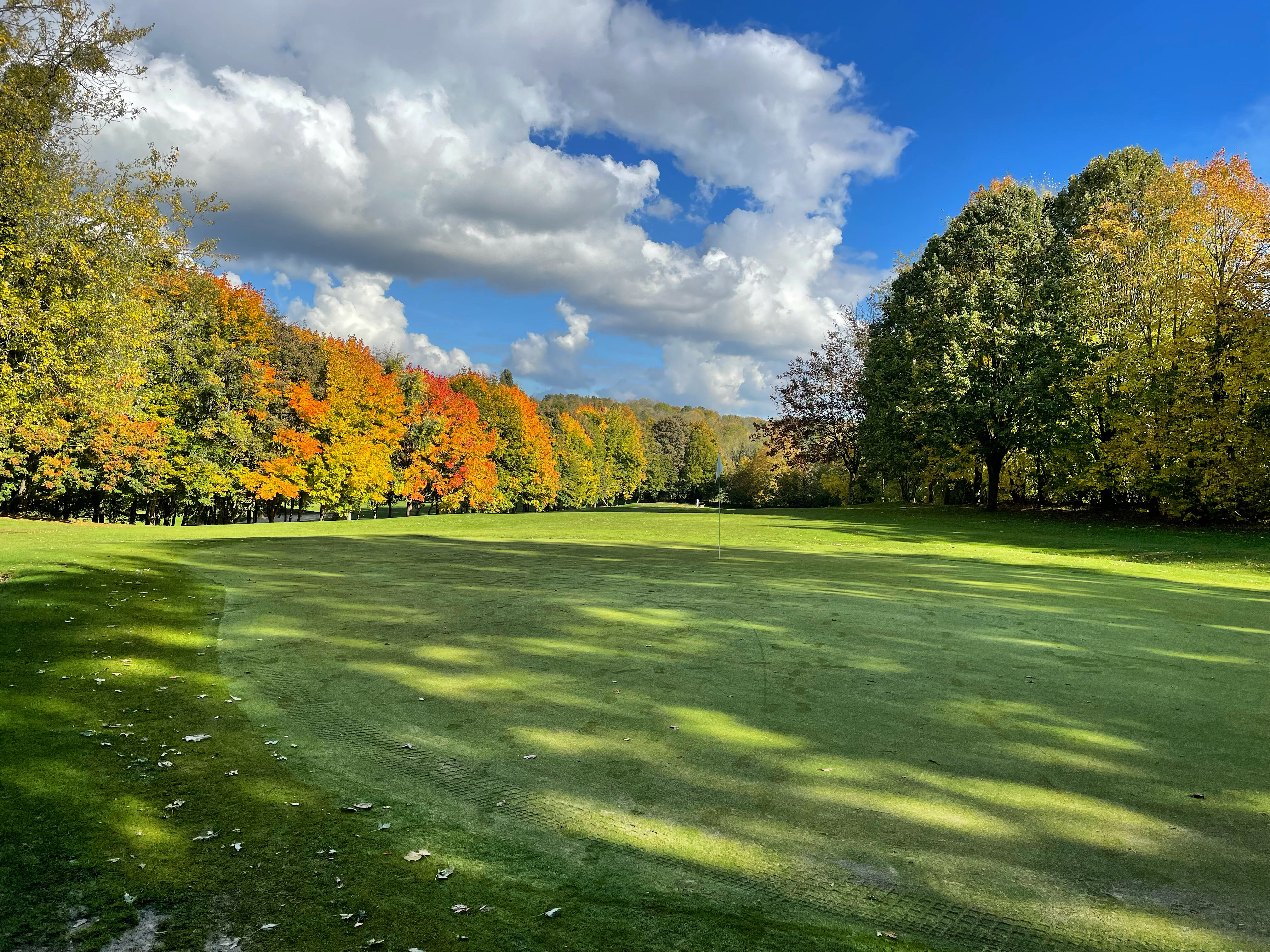 Premiers 9 trous très gras recouverts de feuilles,départs en mauvais états ,greens en réfection mais ça rien à dire,indications entre le 8 et 9 inexistante,Du 9 au 10 indication jusqu’au petit pont et après !!! Droite ou gauche???sous le pont ou à droite ????bref .10 au 18 terrain correct et bien entretenu.