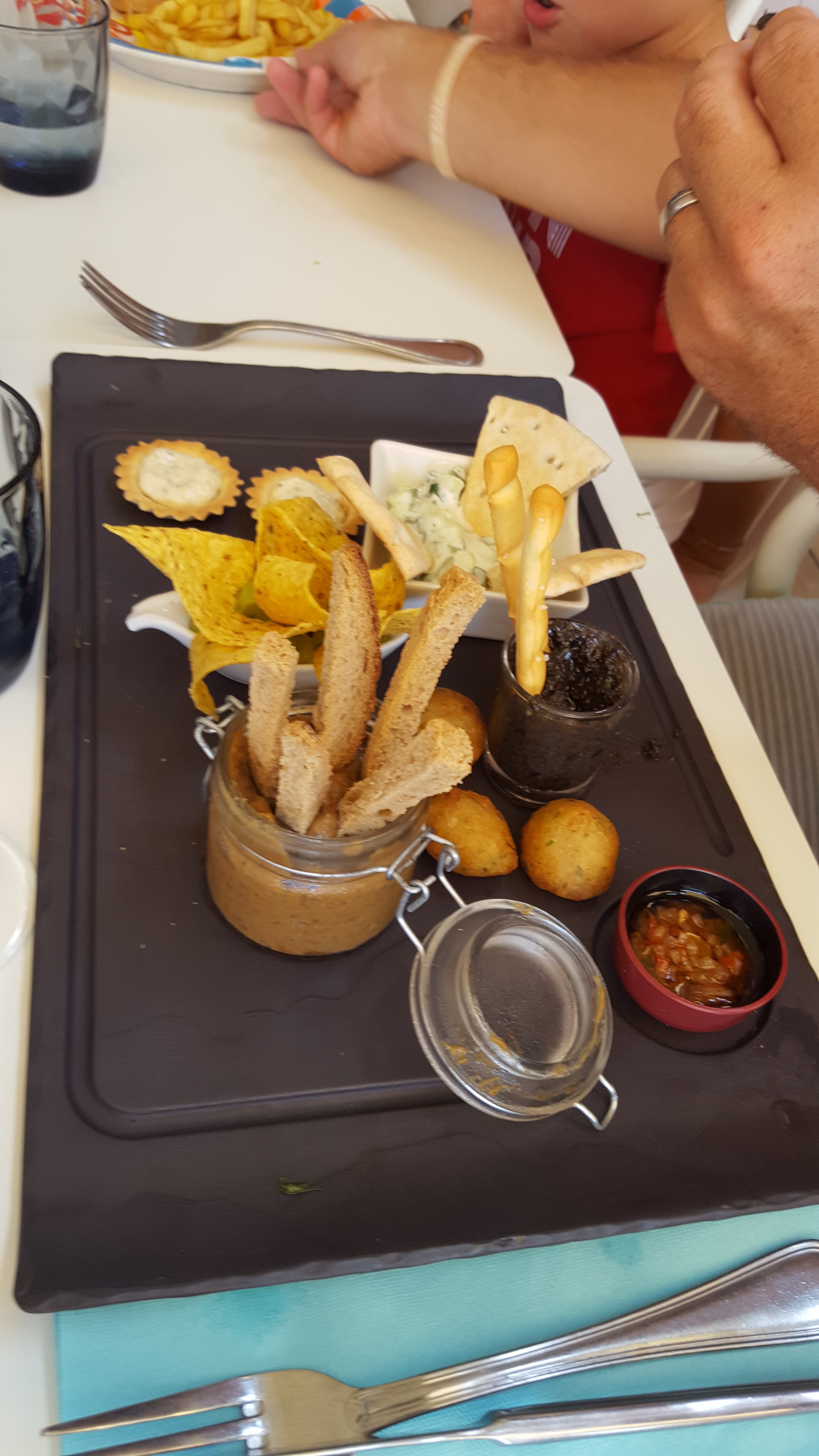 Je ne note que le restaurant : Plats excellents, la salade italienne et l'espadon sont une merveille, les desserts aussi. Le tout dans un cadre très agréable : quel plaisir de manger au bord de la plage, les pieds limite dans le sable. Les enfants peuvent aller jouer sur la plage en attendant les grands, le bord de l'eau à moins de 10m de la terrasse. Le service est par contre un peu long. Nous reviendrons !